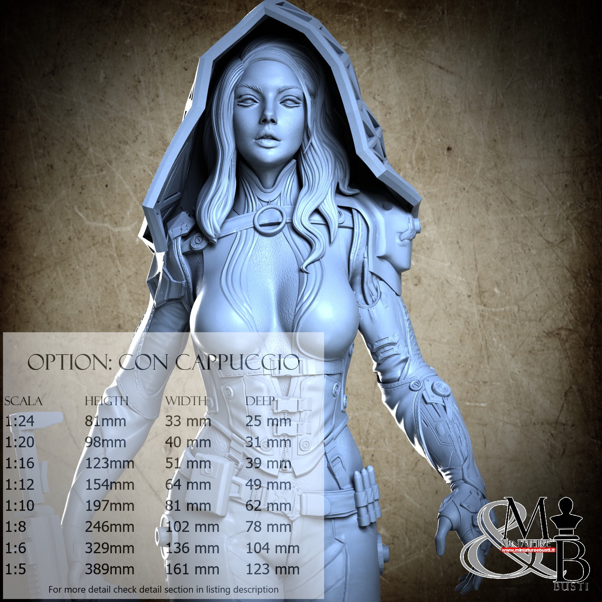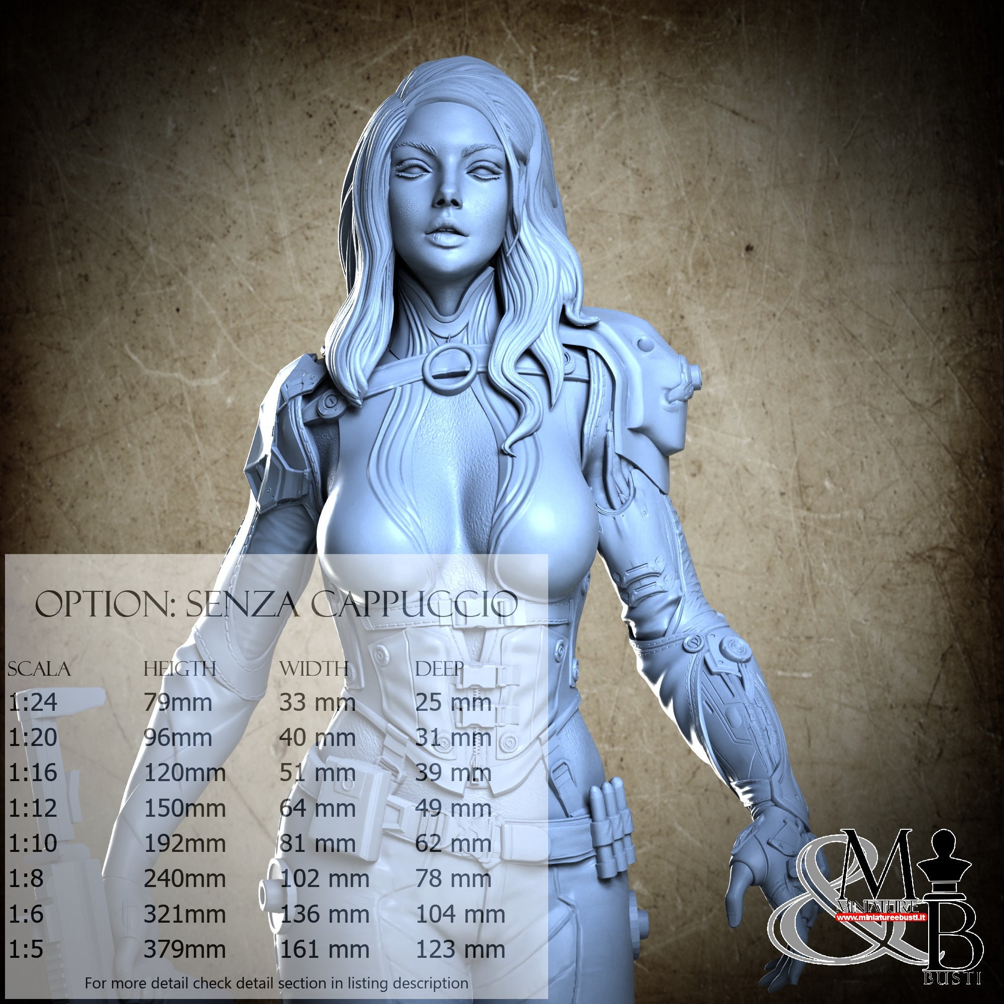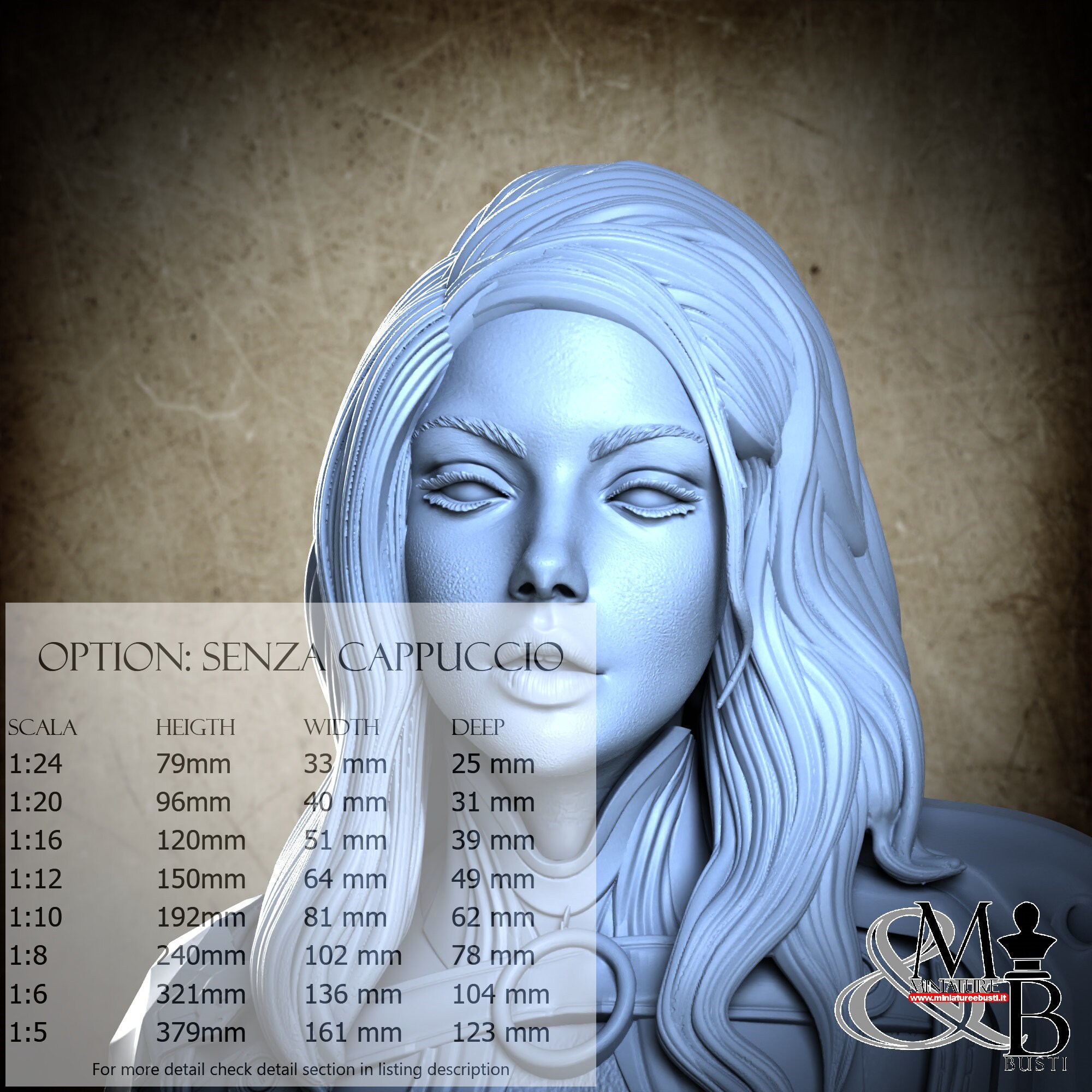 Colla, colori, stucco, e supporti per busti non sono inclusi nel prezzo.