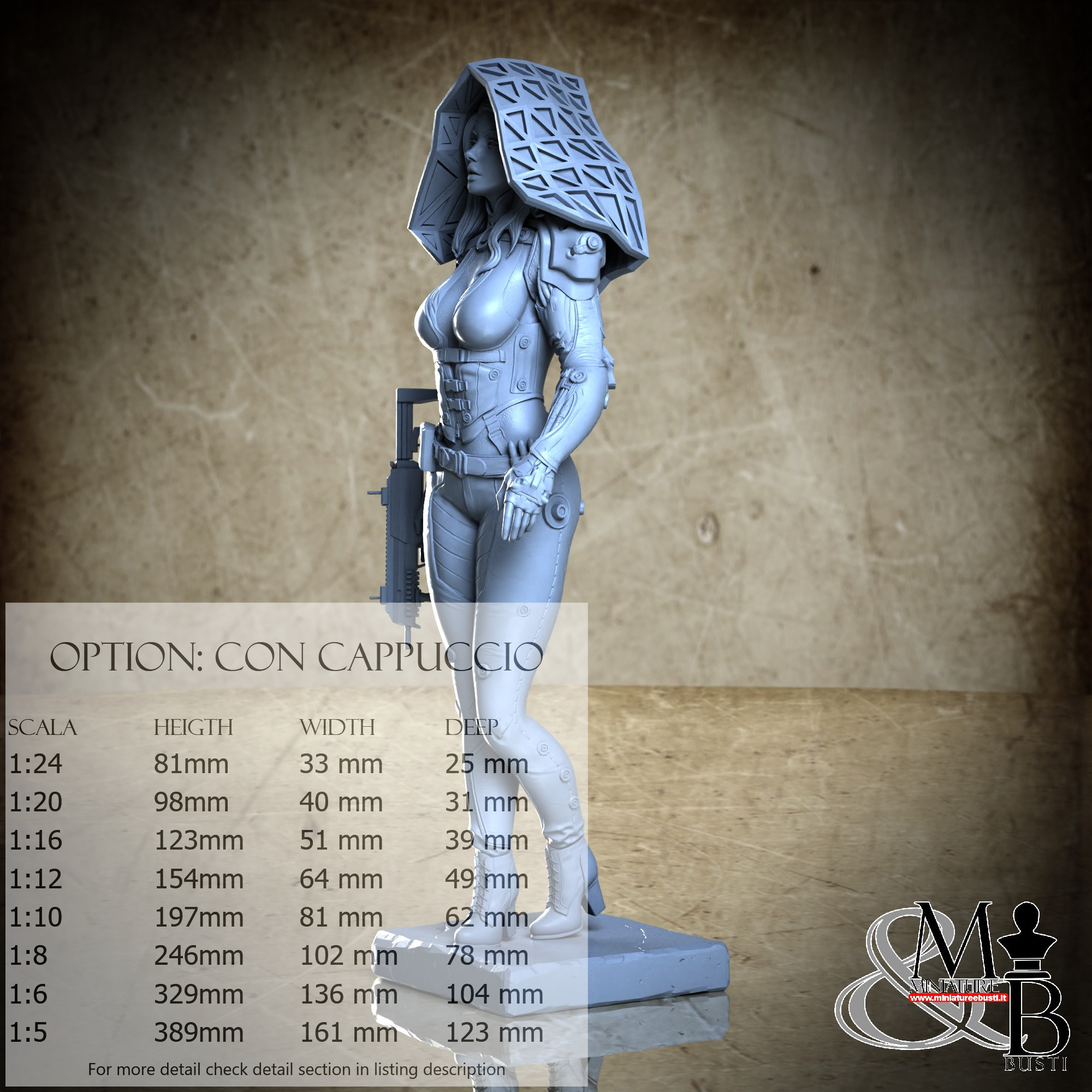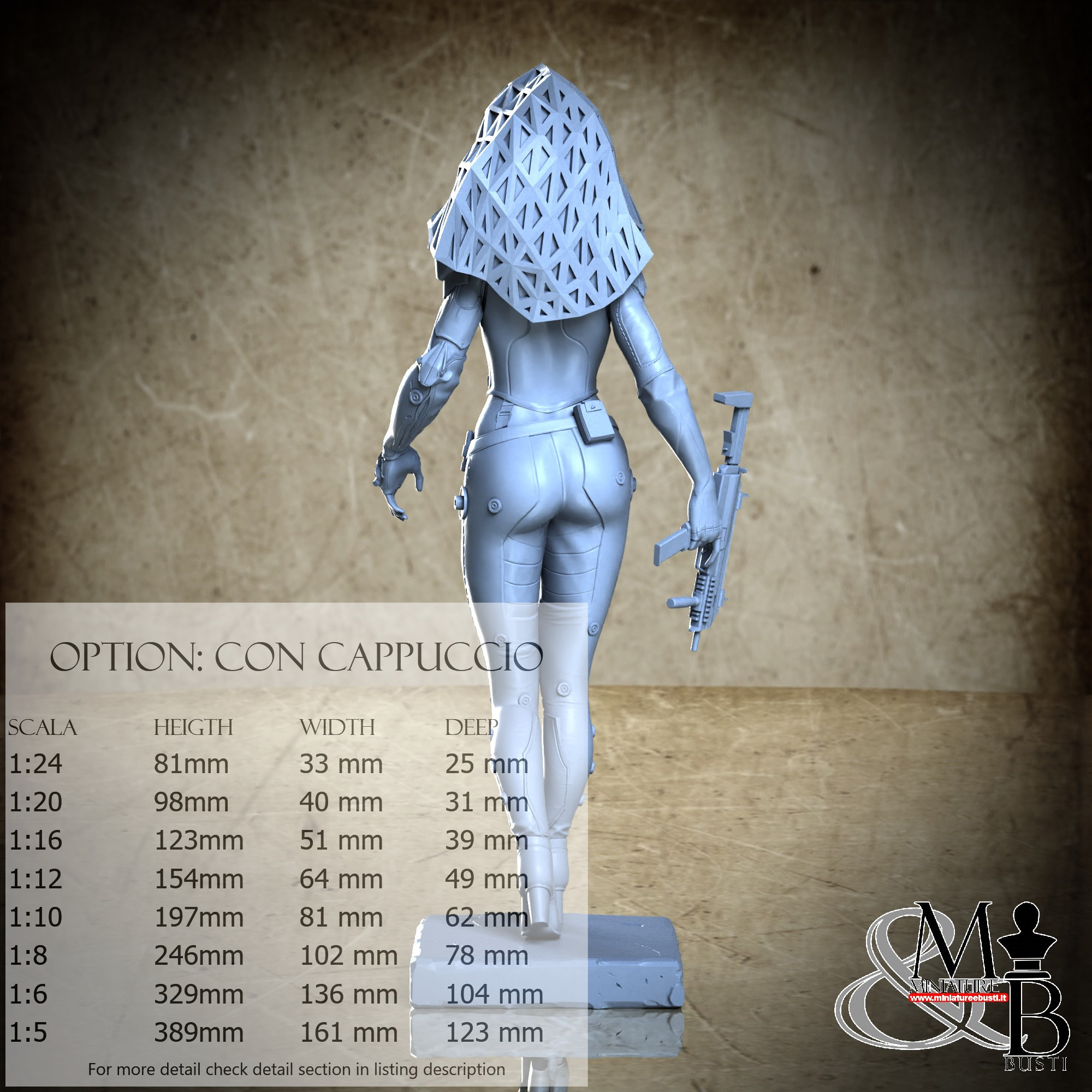 Variante Con Cappuccio, disponibile nelle seguenti scale e costi: