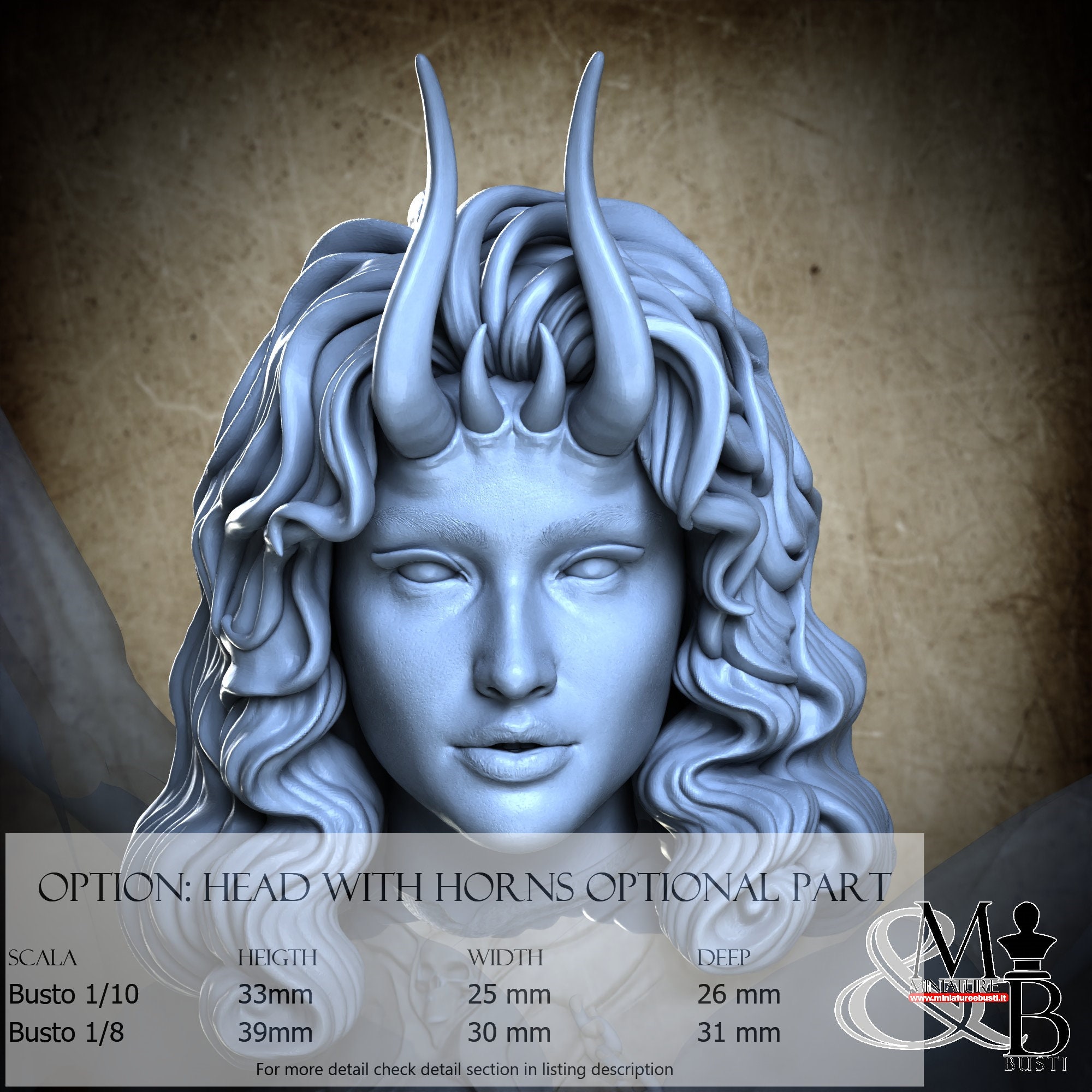 Scala Busto 1/8, costo €. 45.00 ( Altezza: 39 mm, Larghezza: 30 mm, Profondità: 31 mm), composta dai seguenti componenti: