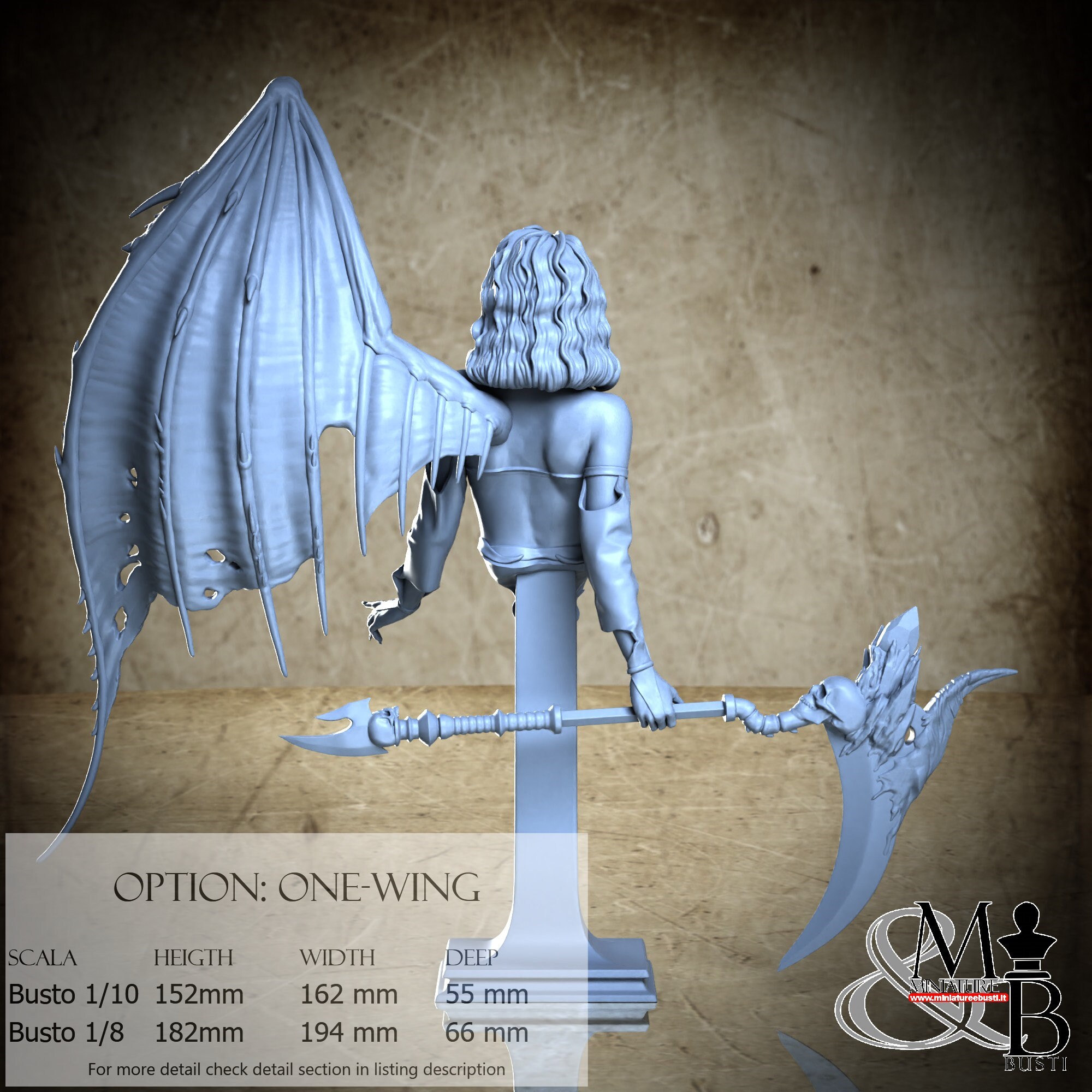 Scala Busto 1/8, costo €. 45.00 ( Altezza: 26 mm, Larghezza: 16 mm, Profondità: 20 mm), composta dai seguenti componenti: