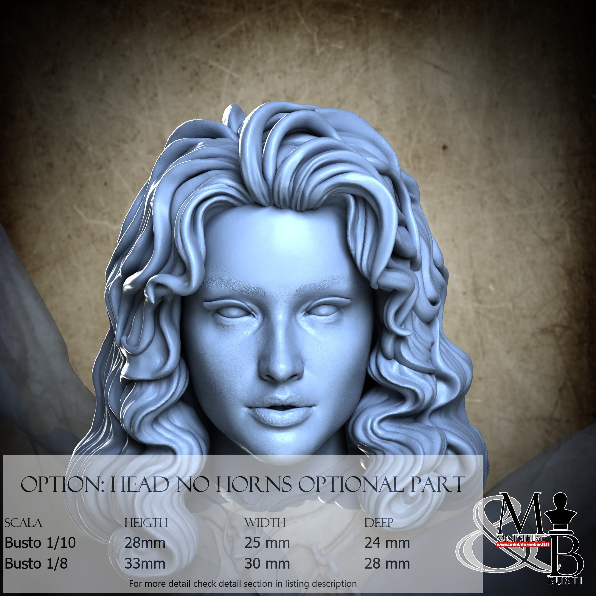 - Scala Busto 1/8, misure totali Altezza: 33 mm, Larghezza: 30 mm, Profondità: 28 mm, €. 45.00