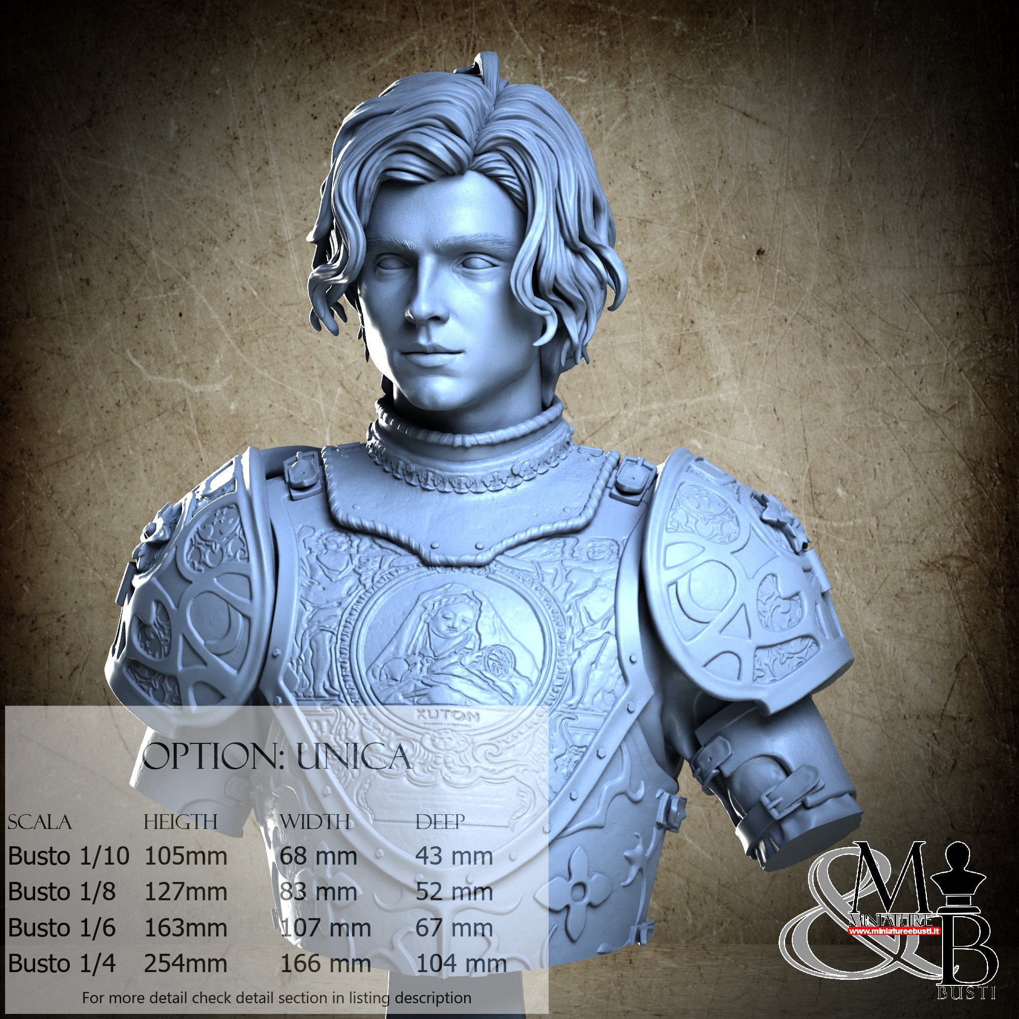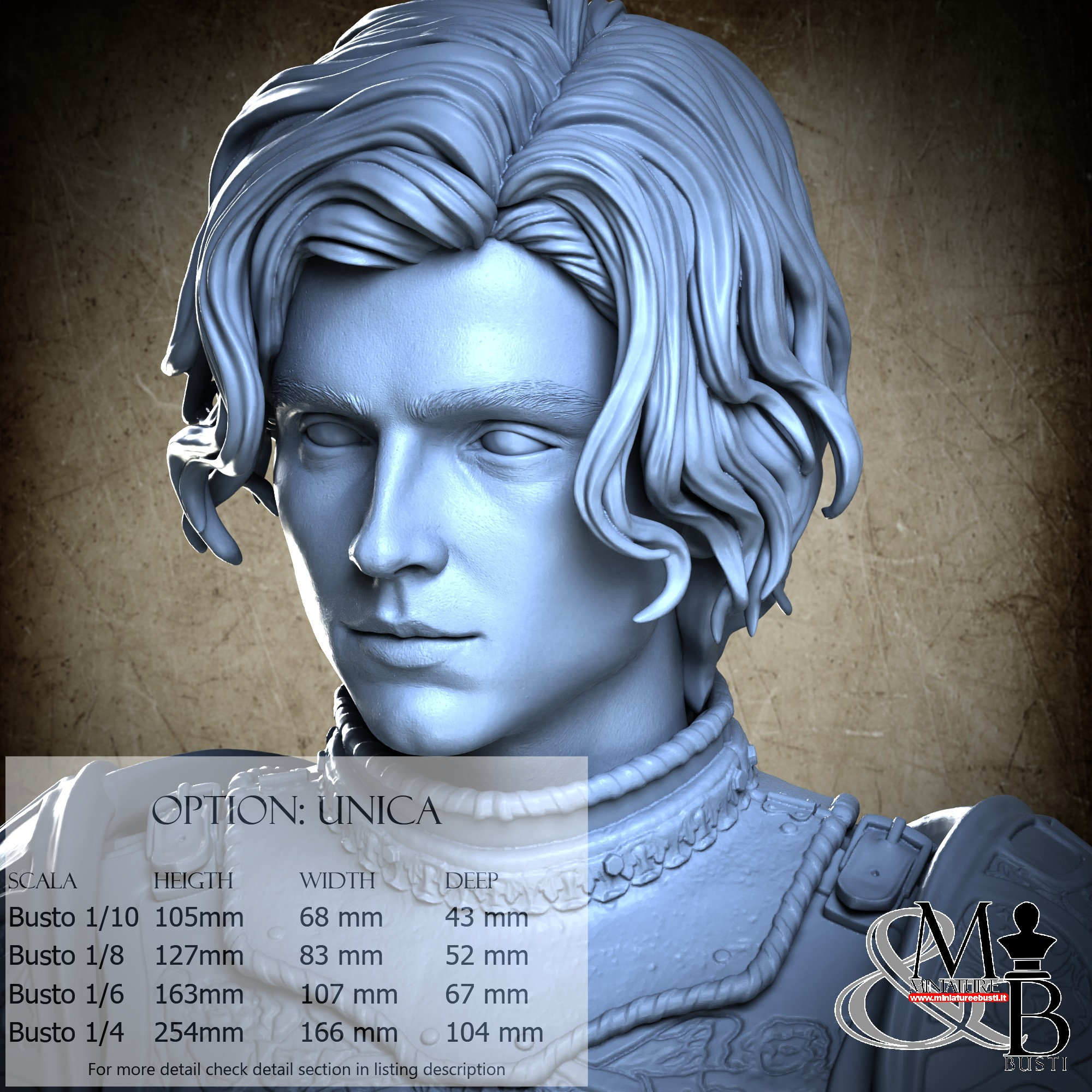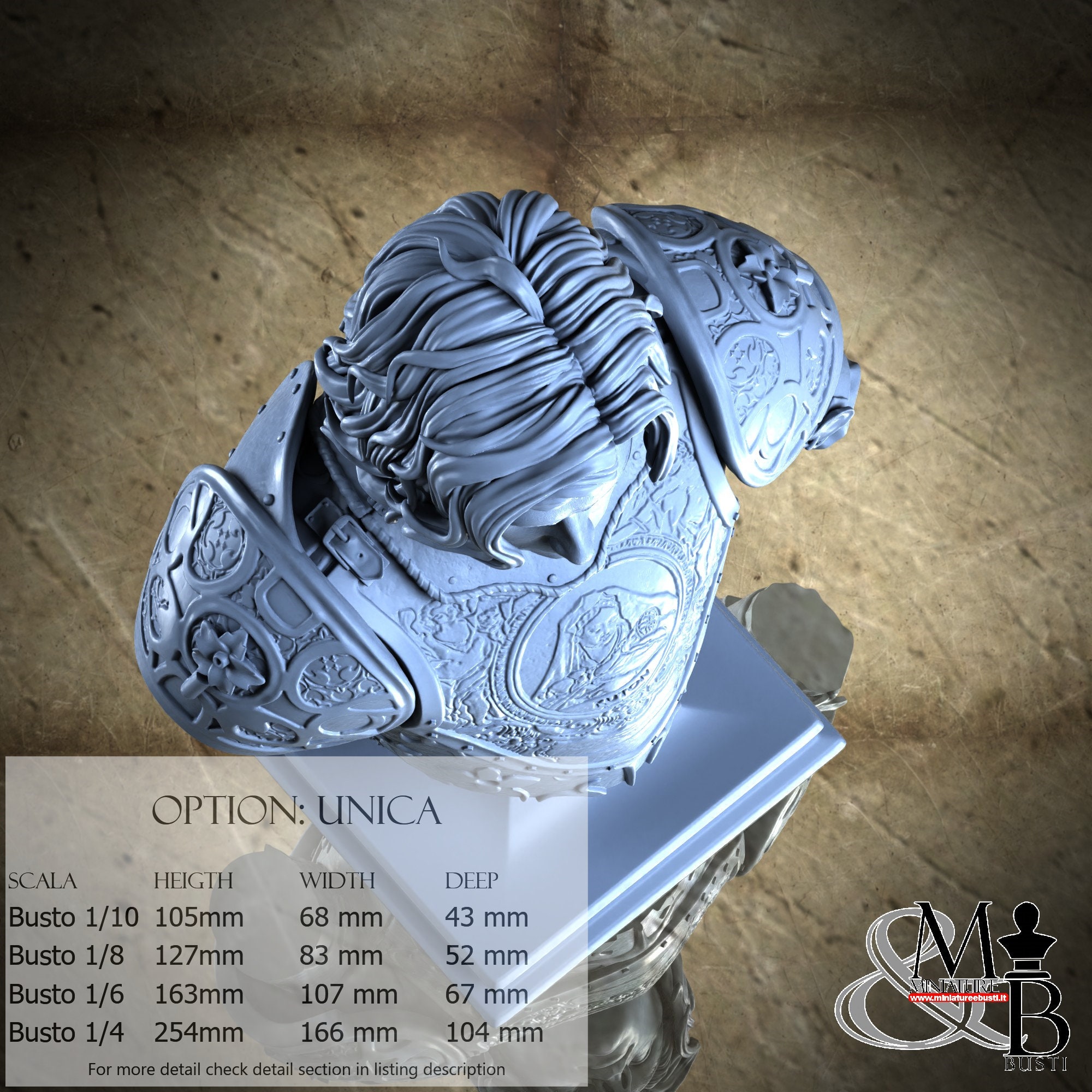 Bust Scale 1/10, cost €35.00 (Height: 105 mm, Width: 68 mm, Depth: 43 mm), composed of the following components: