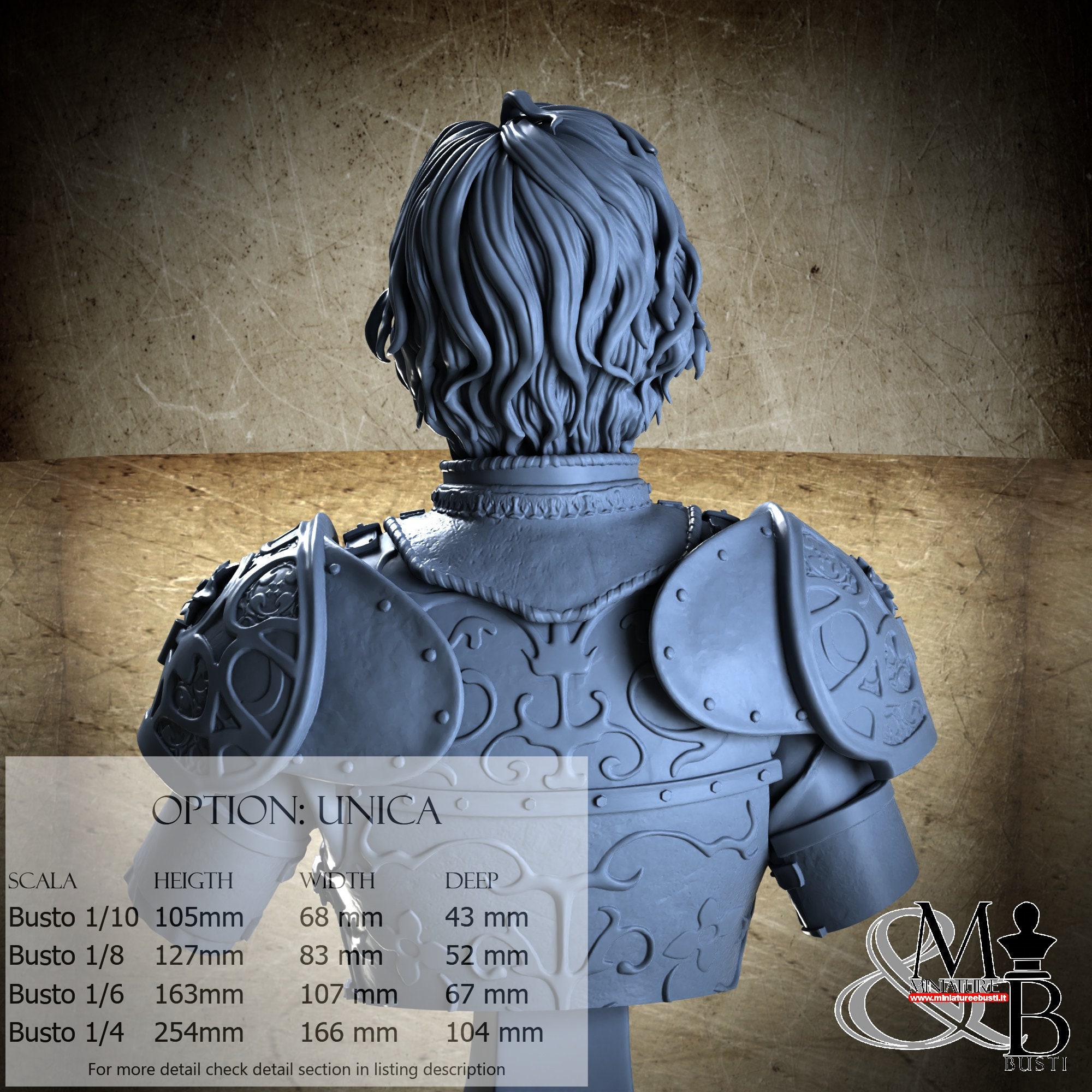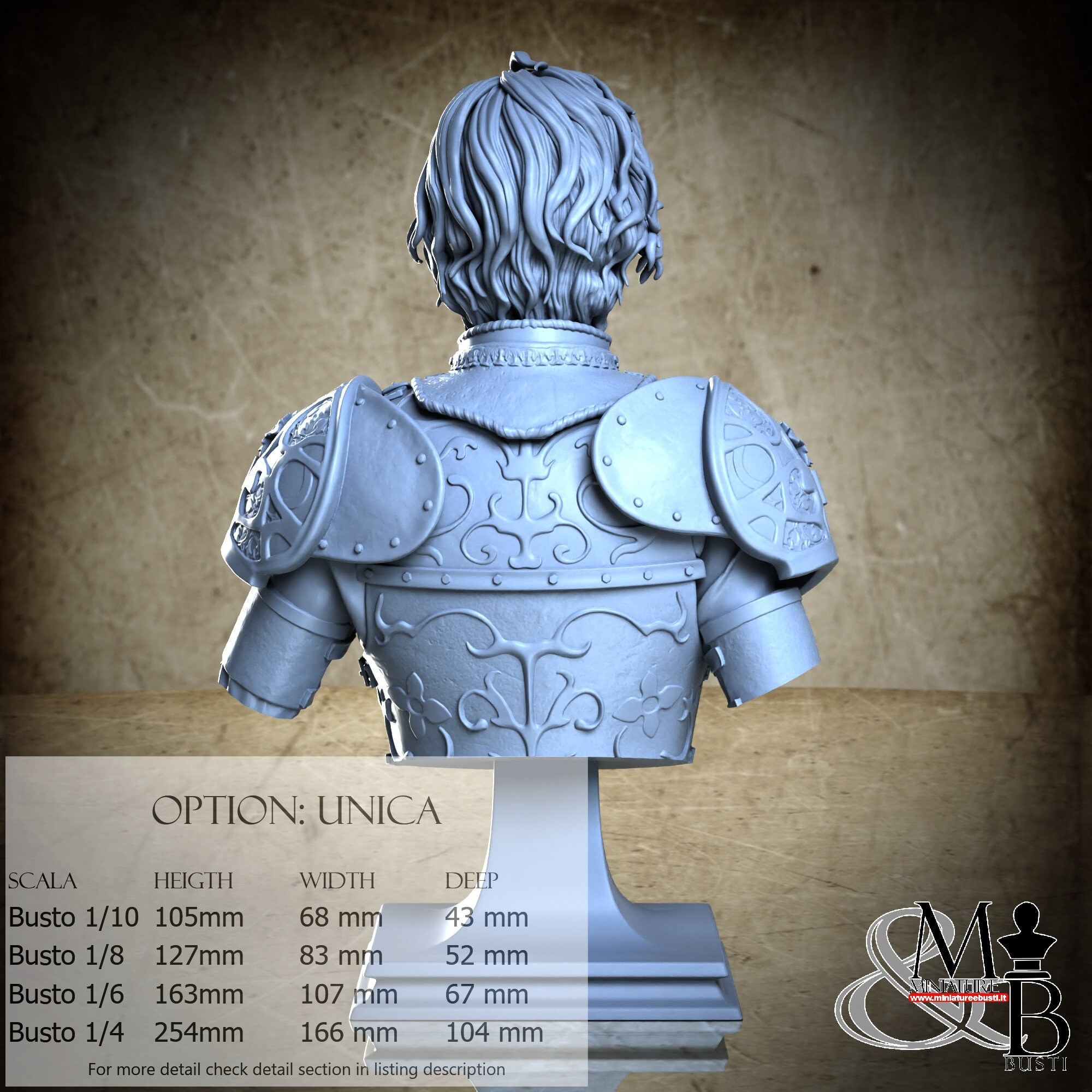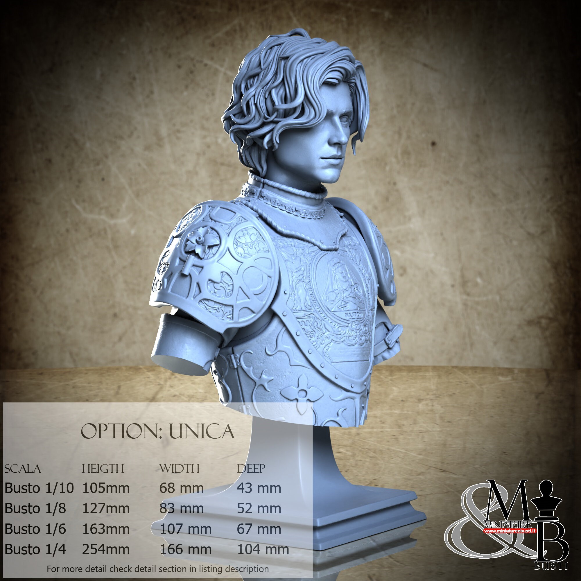 Bust Scale 1/10, cost €35.00 (Height: 105 mm, Width: 68 mm, Depth: 43 mm), composed of the following components: