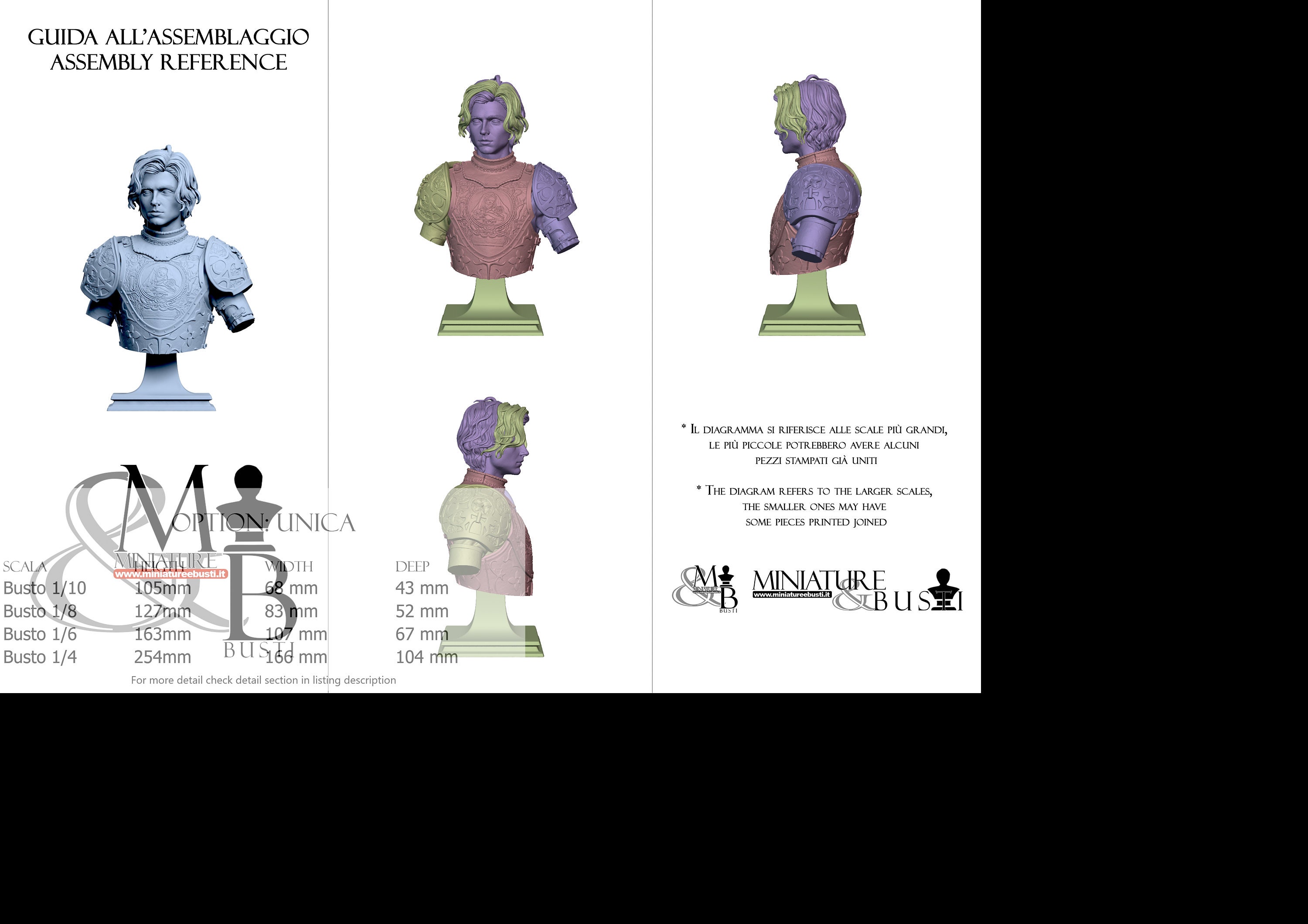 1/4 Bust Scale, cost €180.00 (Height: 254 mm, Width: 166 mm, Depth: 104 mm), composed of the following components: