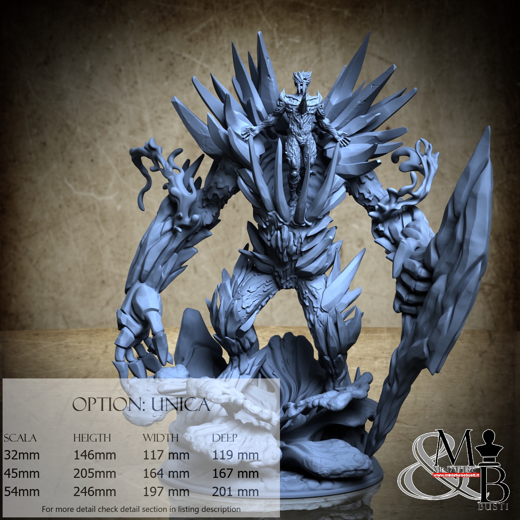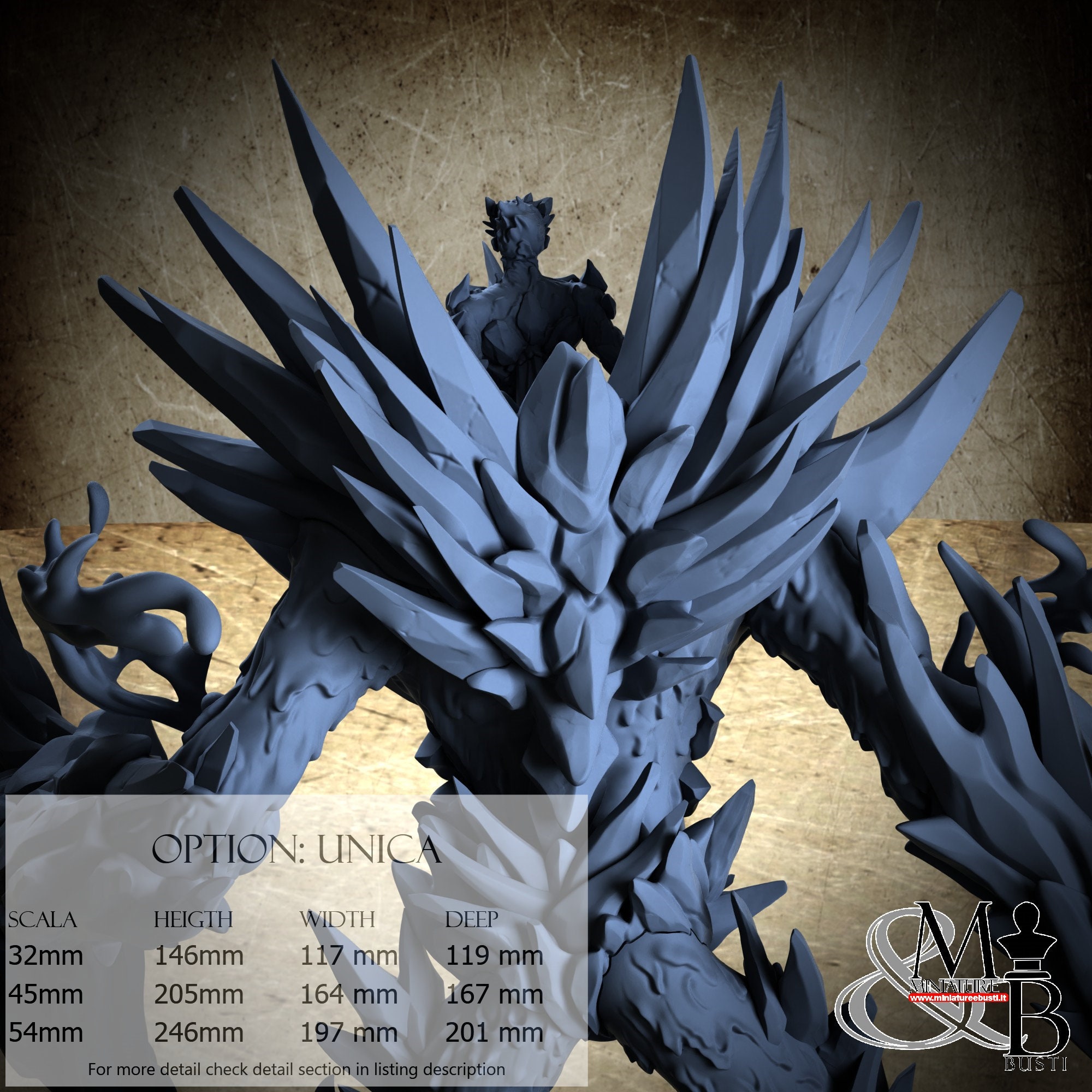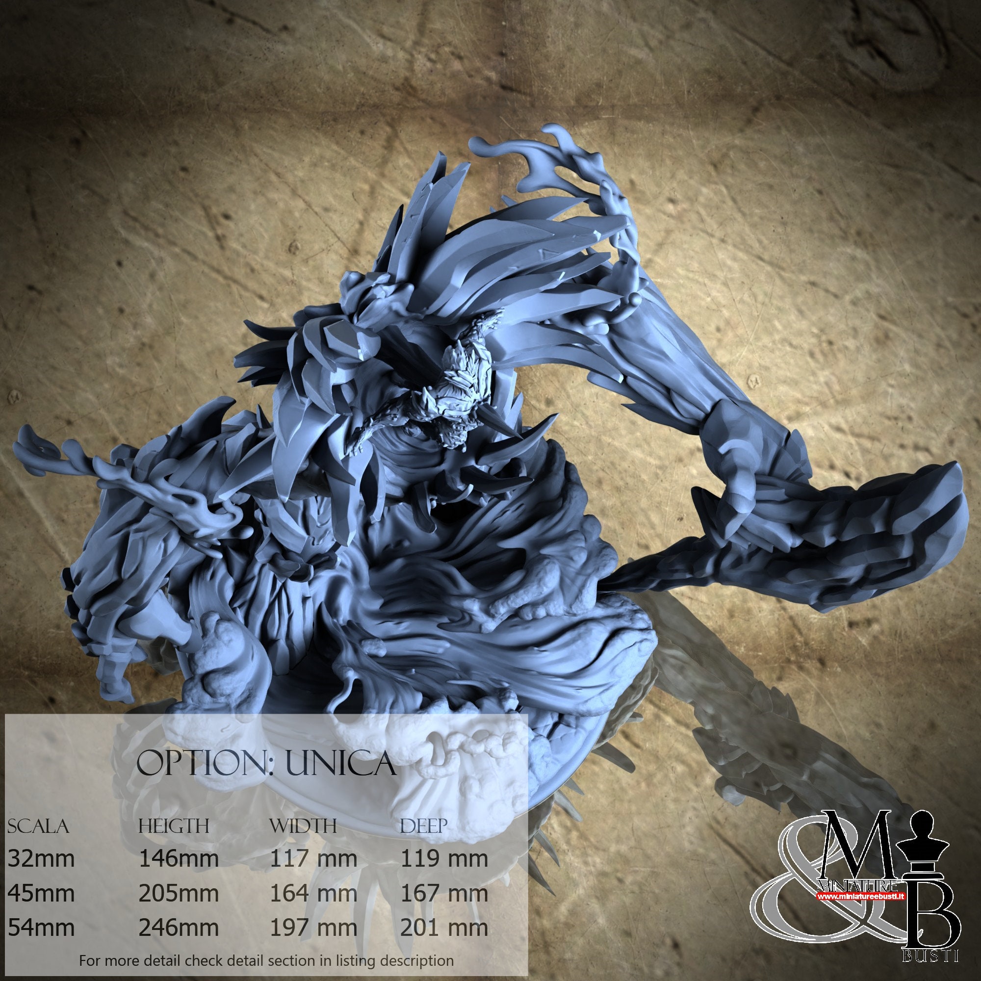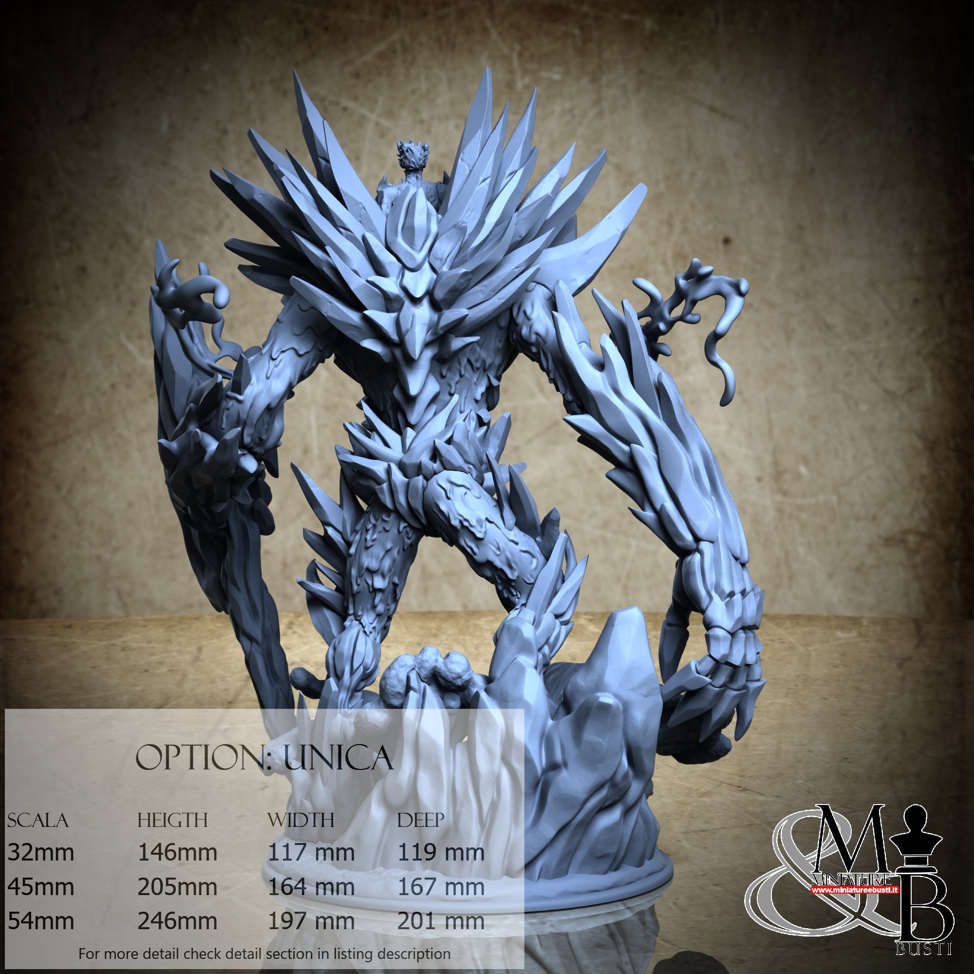 - Golem (6 pieces) in Resin: Height: 198 mm, Width: 164 mm, Depth: 155 mm
