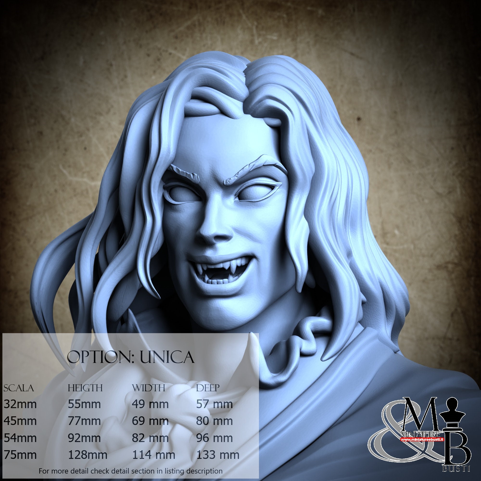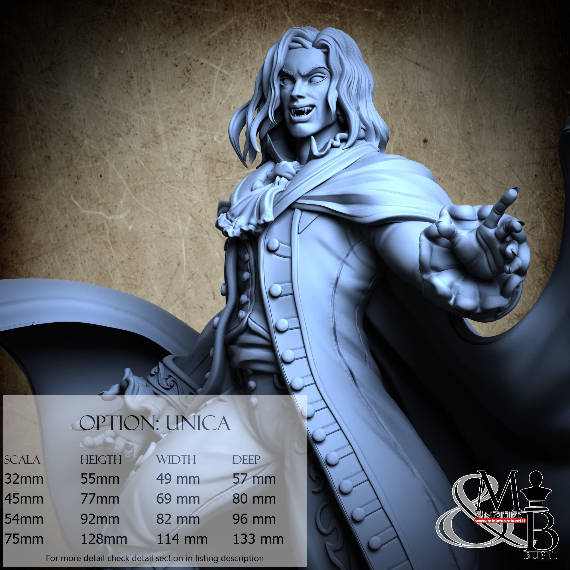 - Base (2 pieces) in Resin: Height: 8 mm, Width: 35 mm, Depth: 70 mm