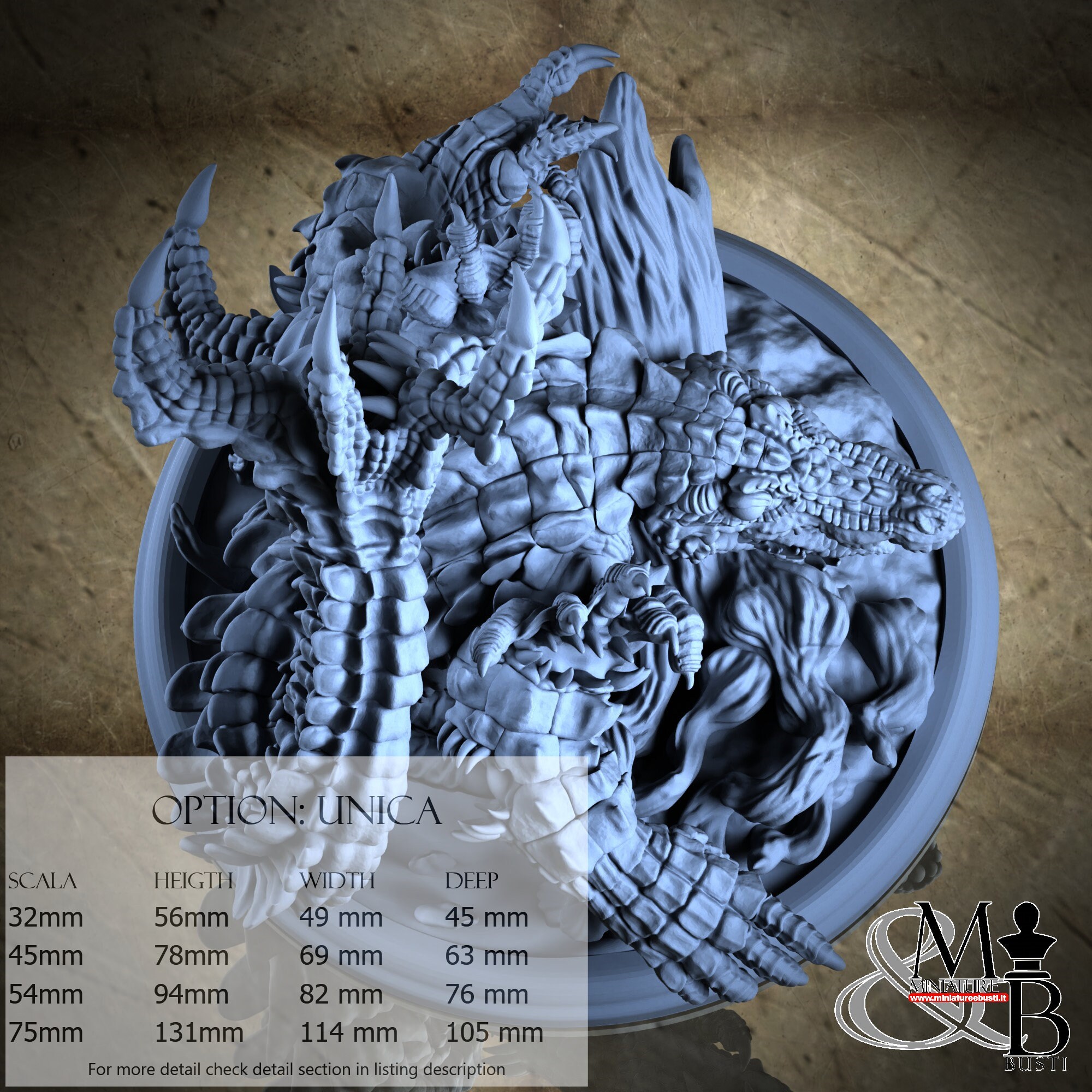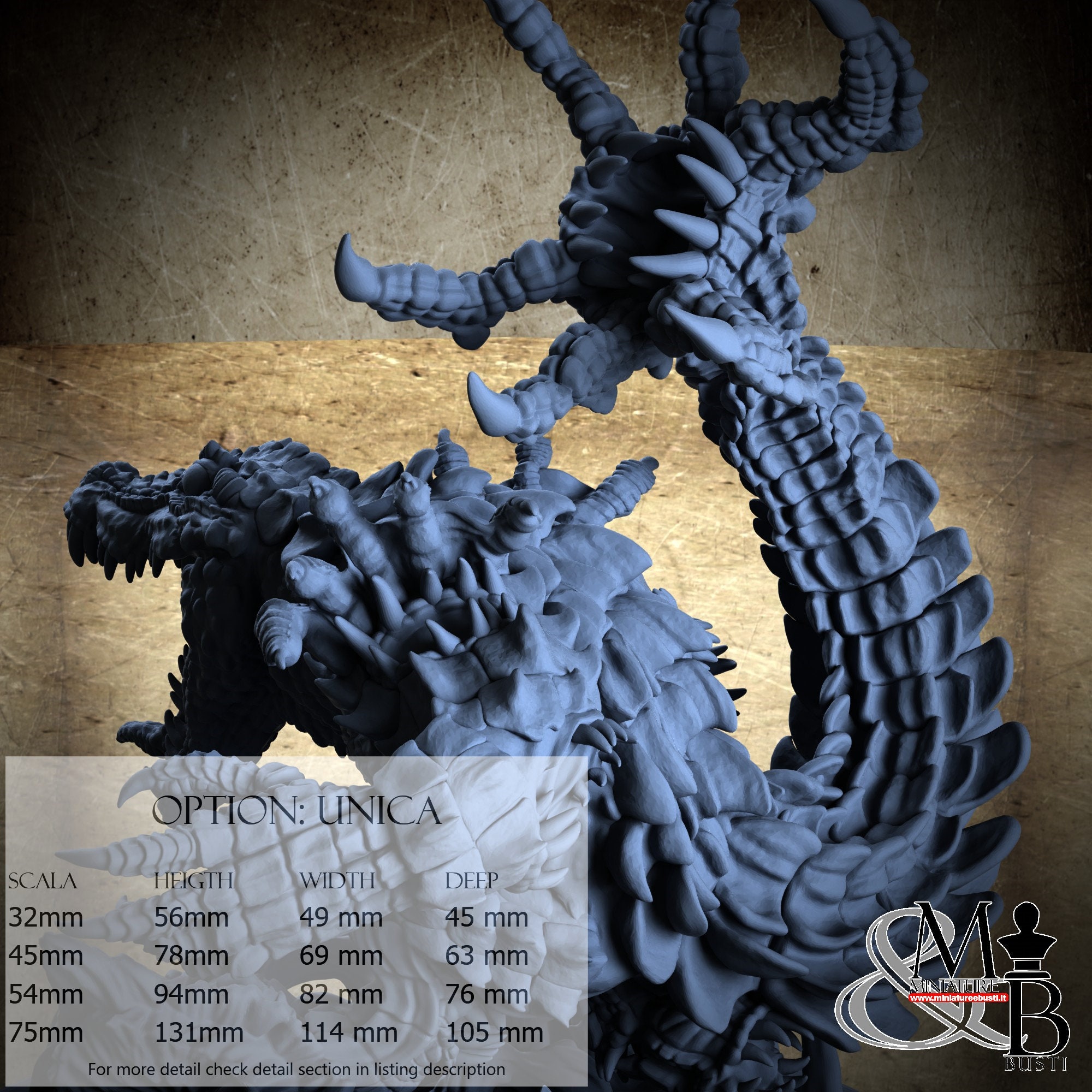 - Base (1 piece) in Resin: Height: 30 mm, Width: 76 mm, Depth: 74 mm