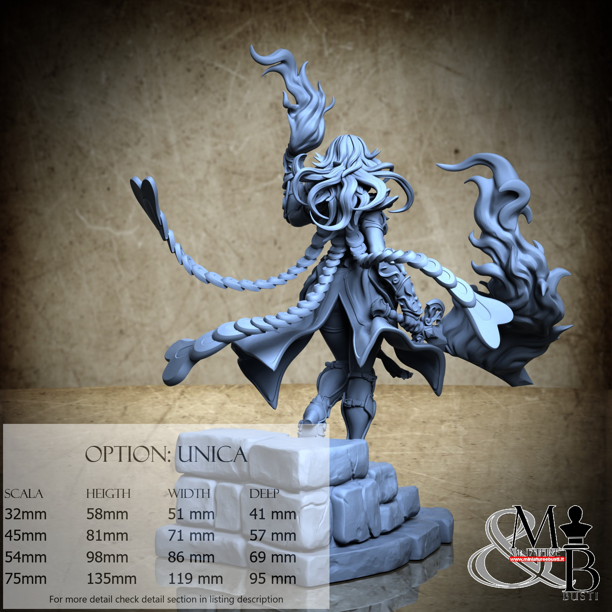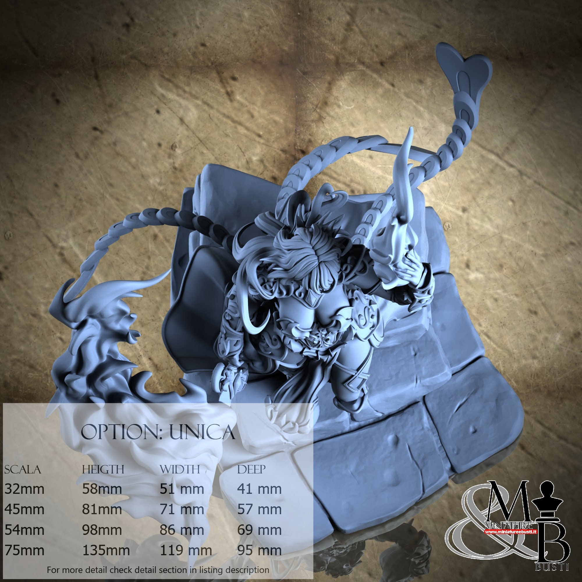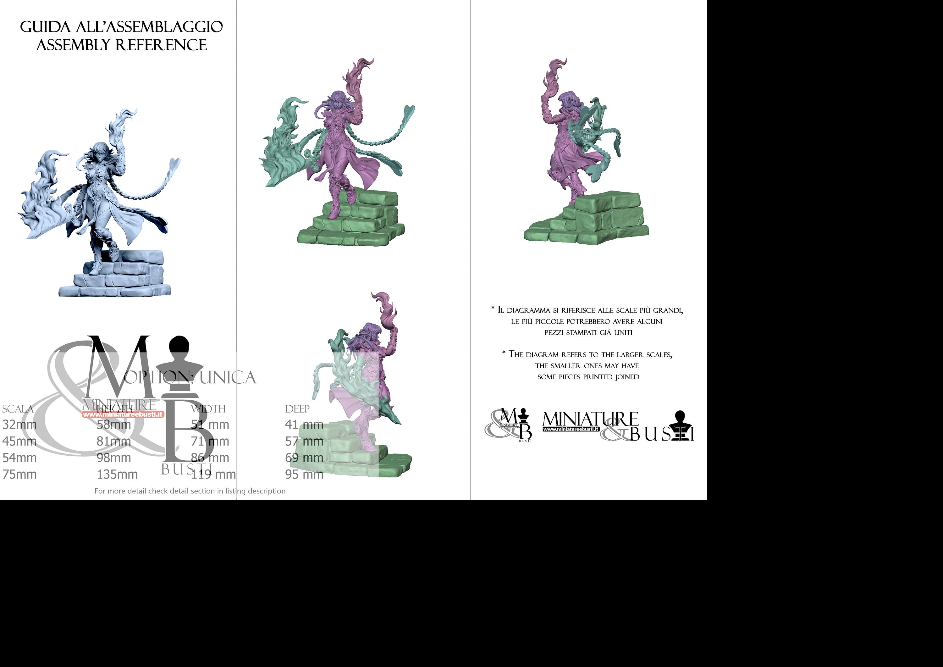 - Base (1 piece) in Resin: Height: 32 mm, Width: 81 mm, Depth: 95 mm