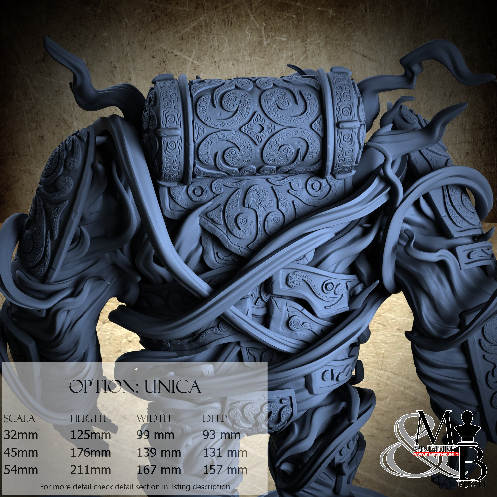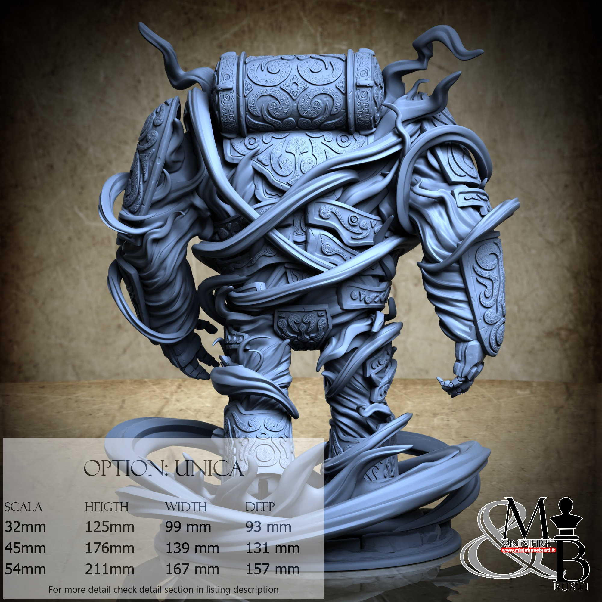 - Golem (6 pieces) in Resin: Height: 119 mm, Width: 99 mm, Depth: 59 mm