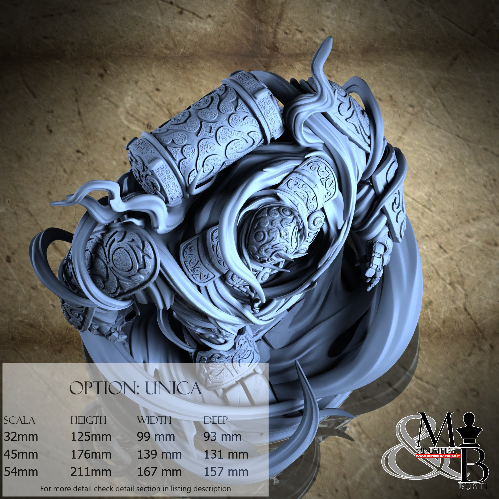 - Golem (6 pieces) in Resin: Height: 167 mm, Width: 139 mm, Depth: 83 mm