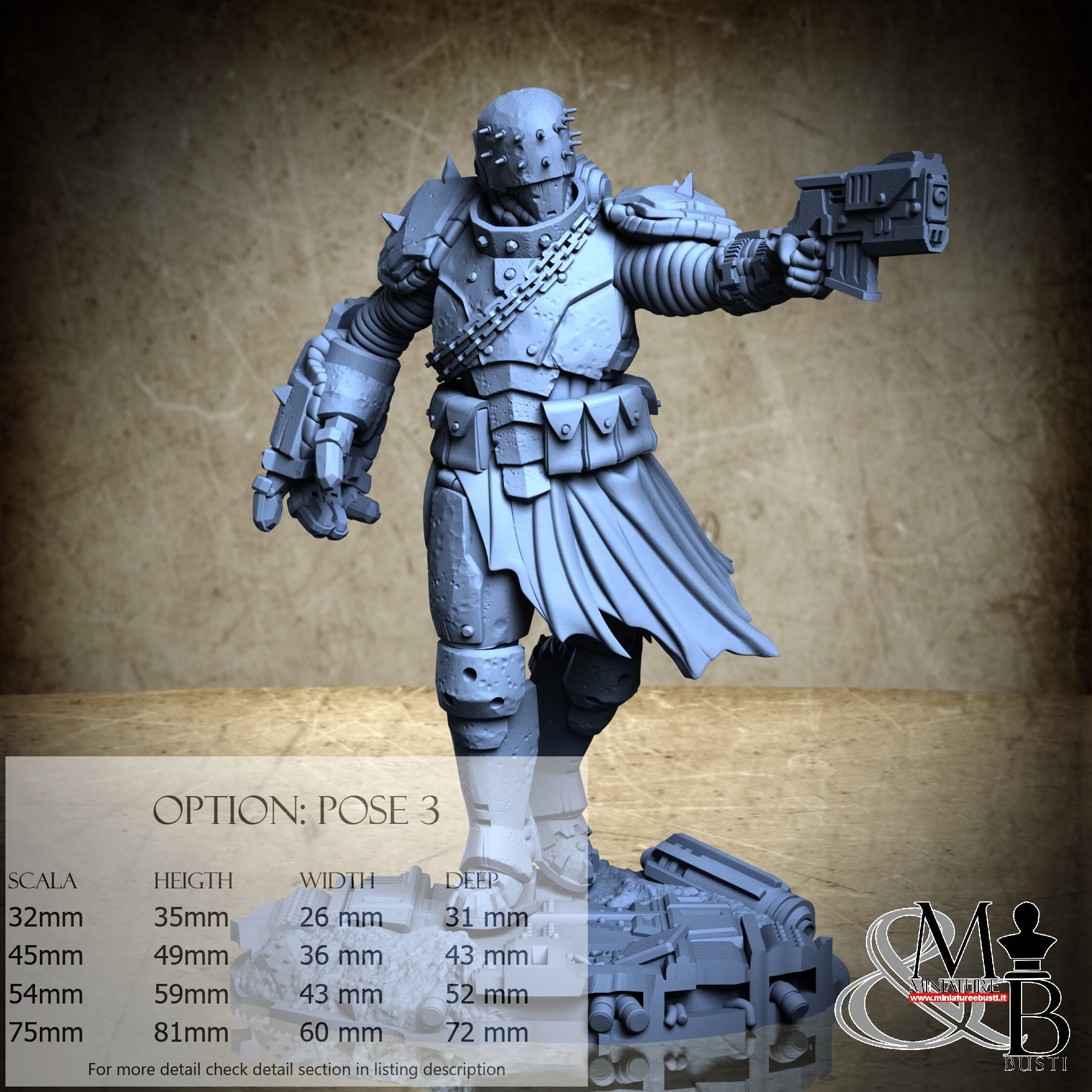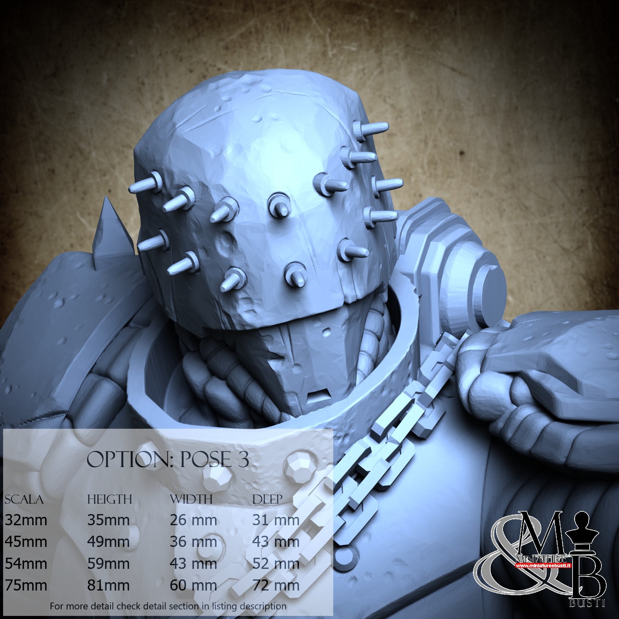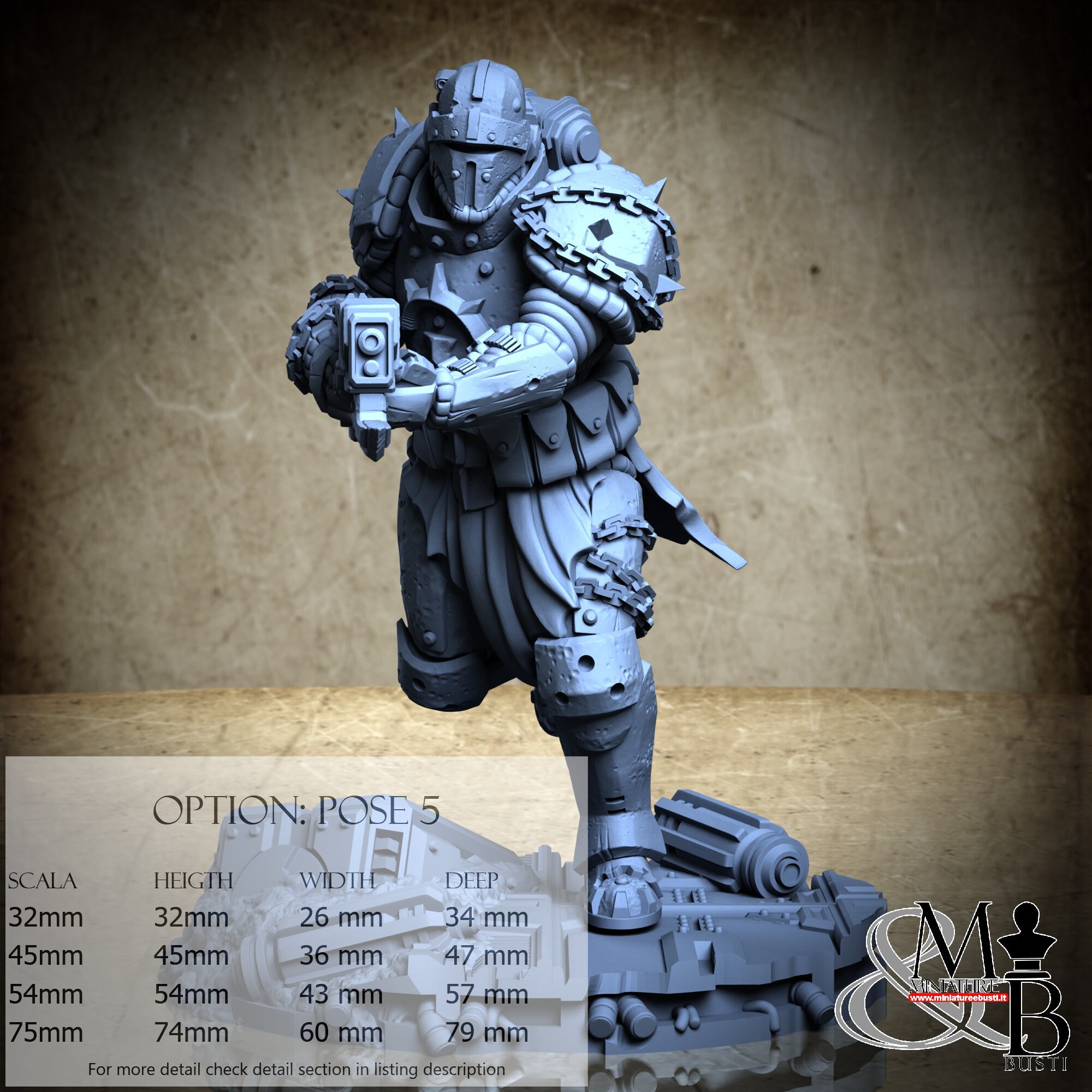 - Scala 54mm, misure totali Altezza: 54 mm, Larghezza: 43 mm, Profondità: 57 mm, €. 14.00