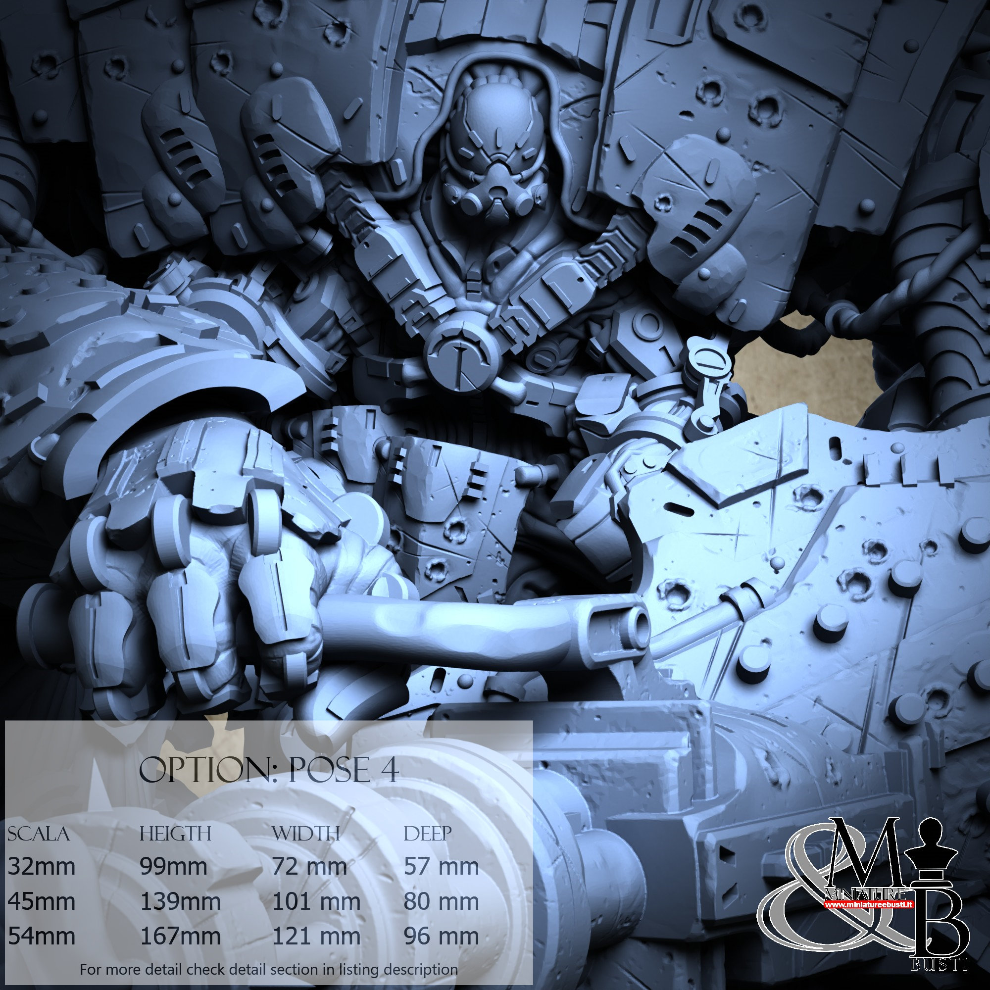 Scala 54mm, costo €. 40.00 ( Altezza: 212 mm, Larghezza: 189 mm, Profondità: 169 mm), composta dai seguenti componenti: