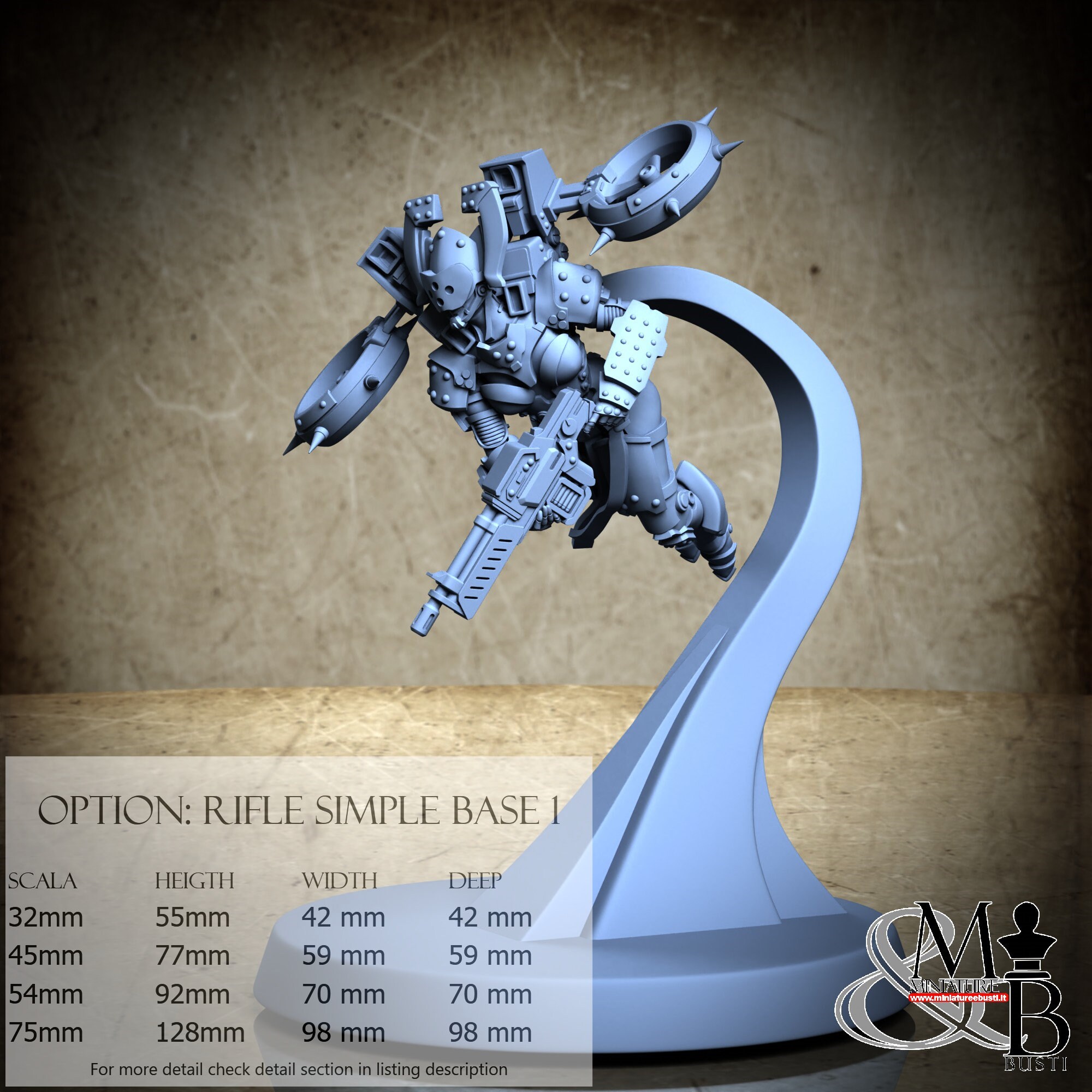 Variante Rifle Diorama Base, disponibile nelle seguenti scale e costi: