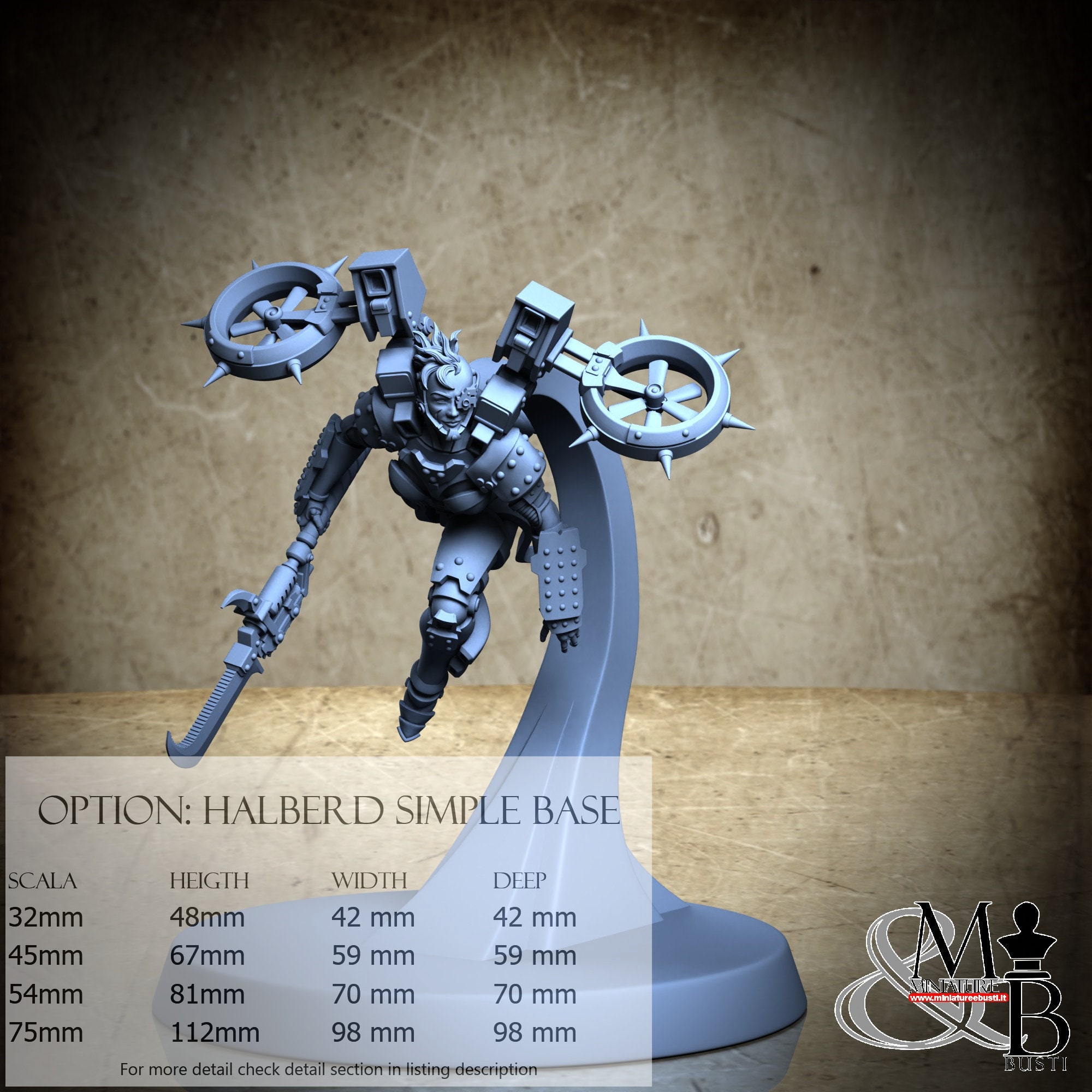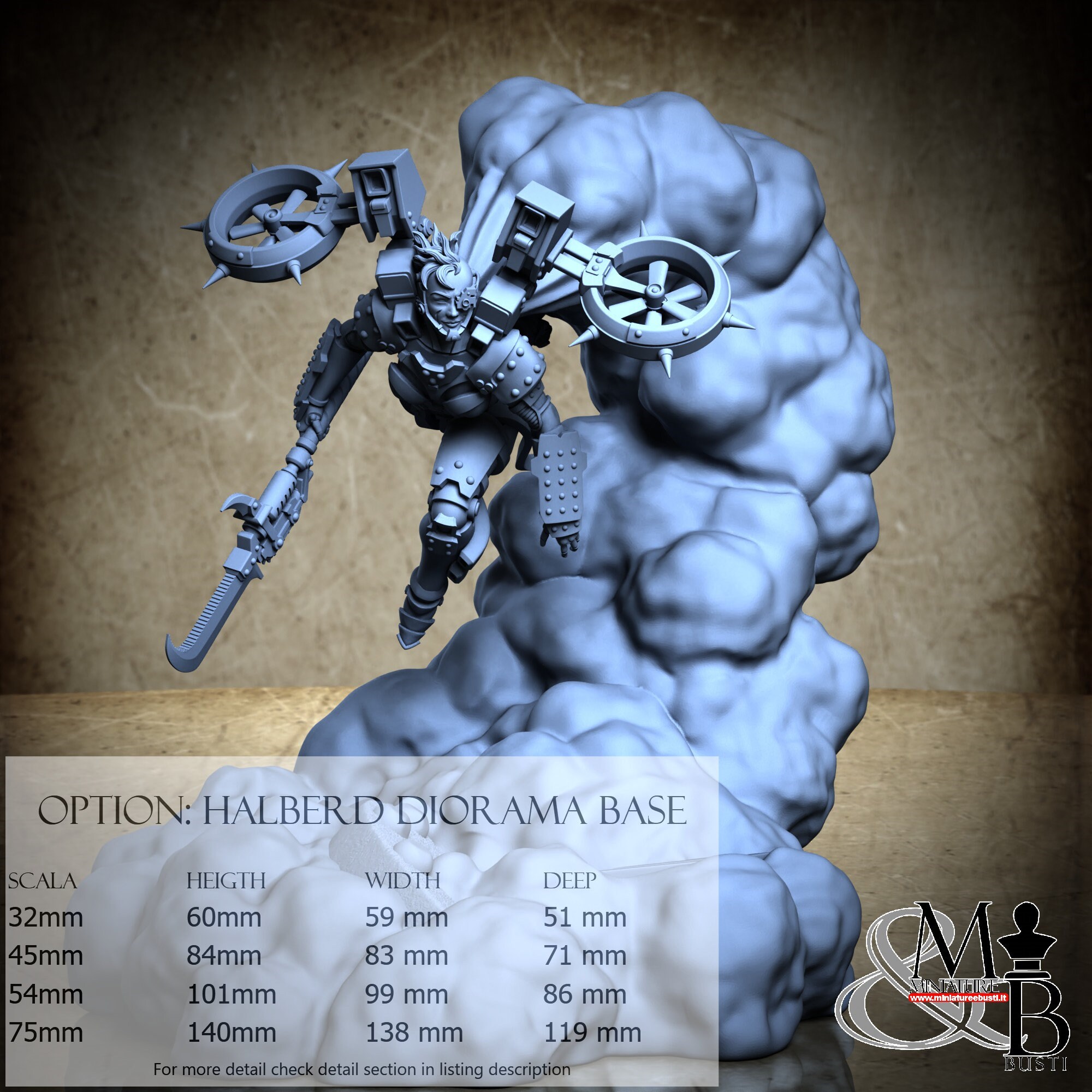 Variante Halberd Diorama Base, disponibile nelle seguenti scale e costi: