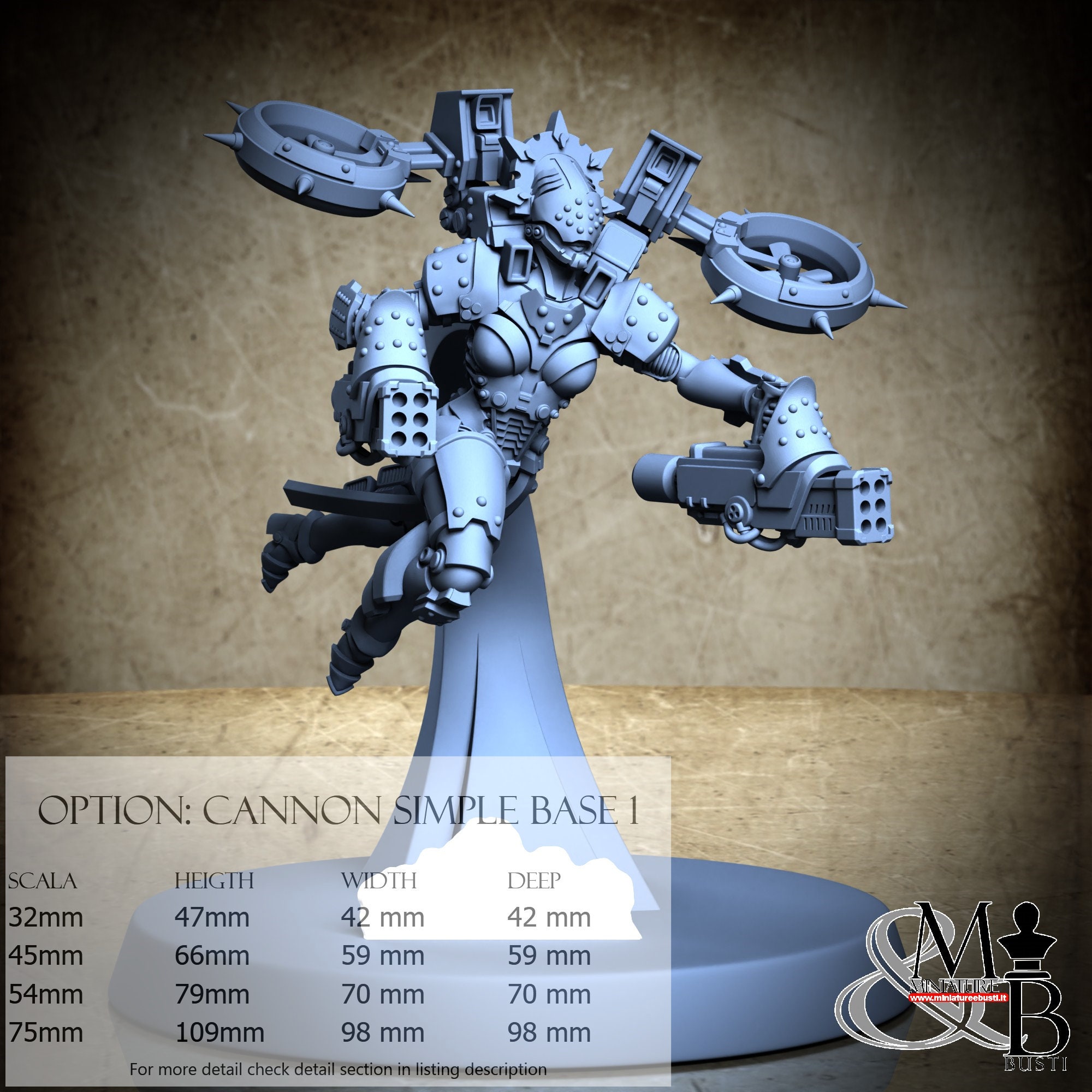 Variante Cannon Diorama Base, disponibile nelle seguenti scale e costi: