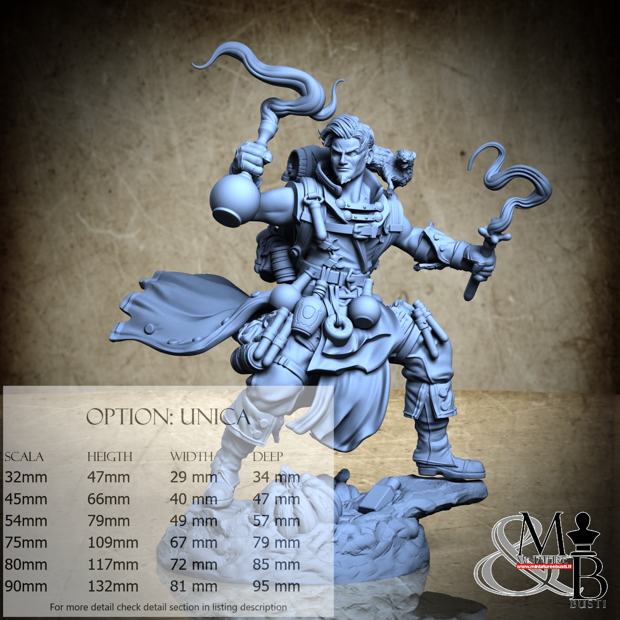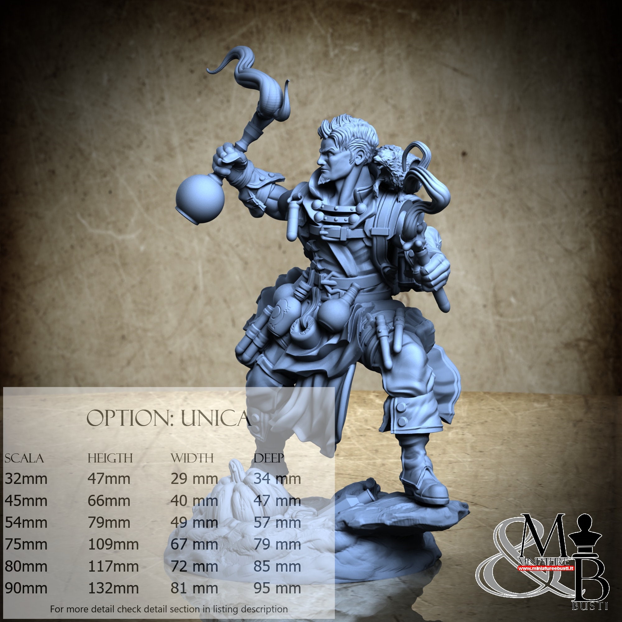 - Base Scenica (1 pezzi) in Resina : Altezza: 22 mm, Larghezza: 72 mm, Profondità: 62 mm