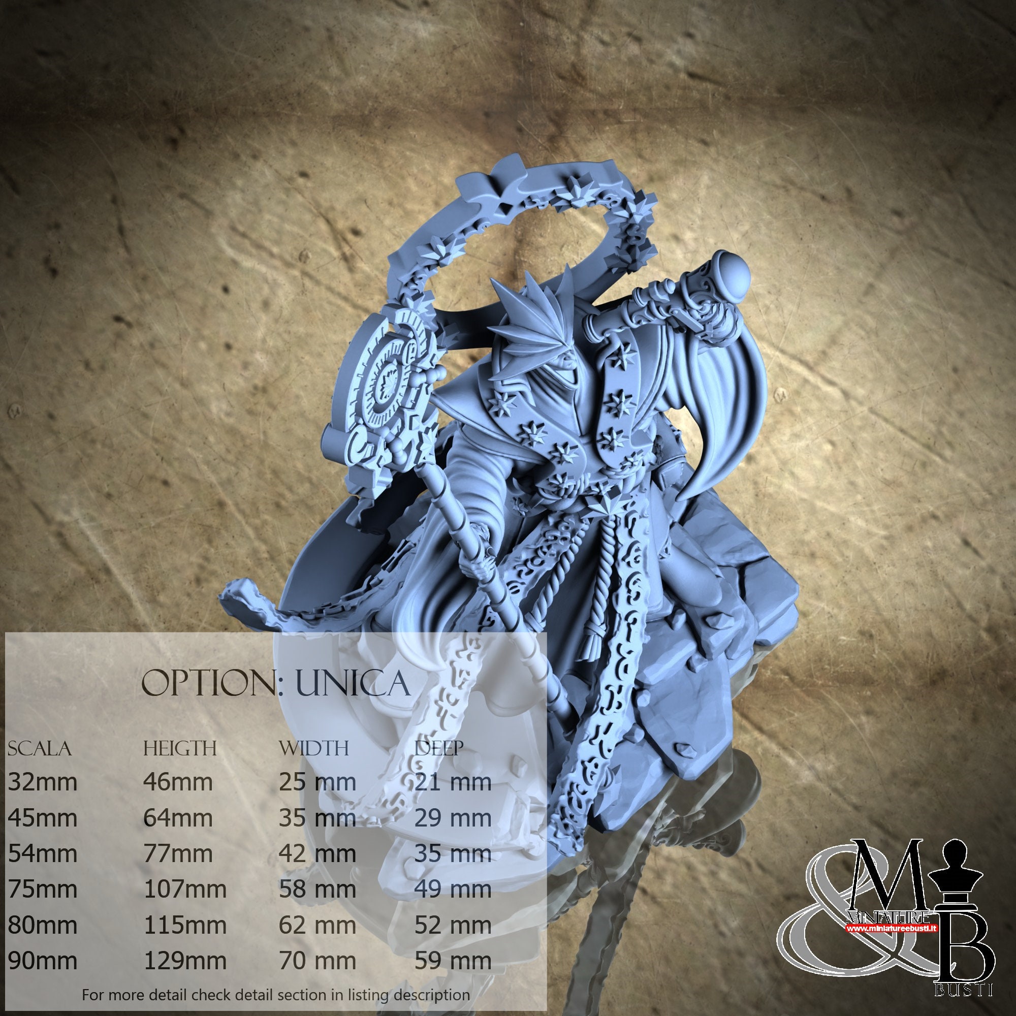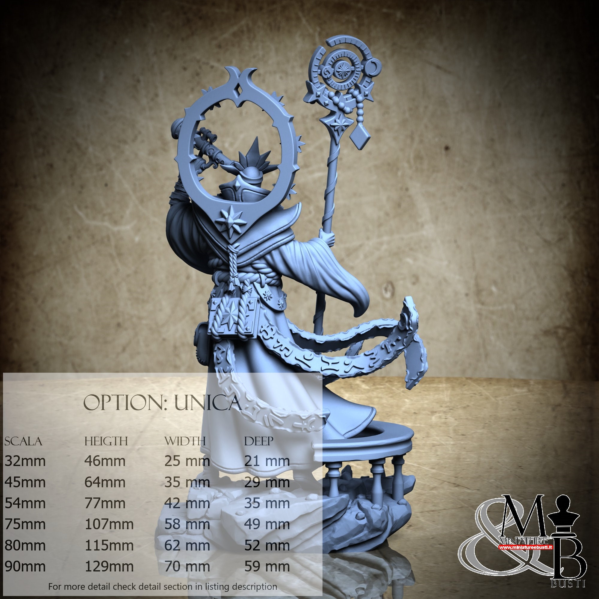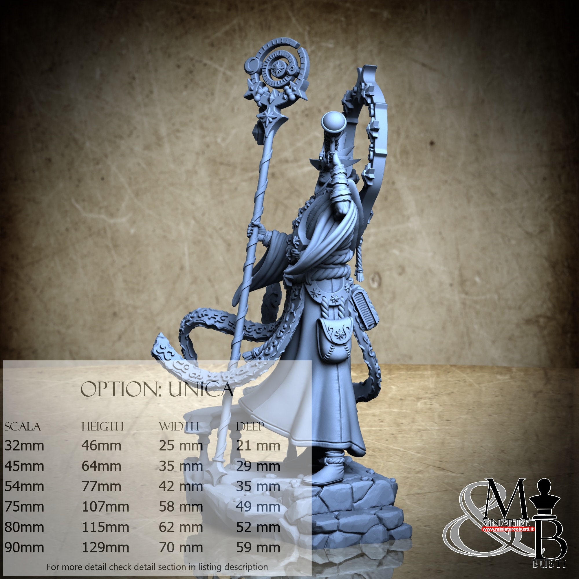 - Figure (1 piece) in Resin: Height: 105 mm, Width: 60 mm, Depth: 50 mm