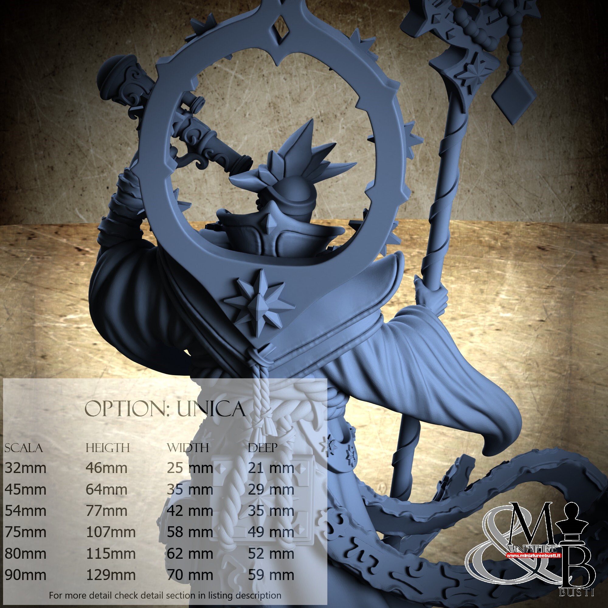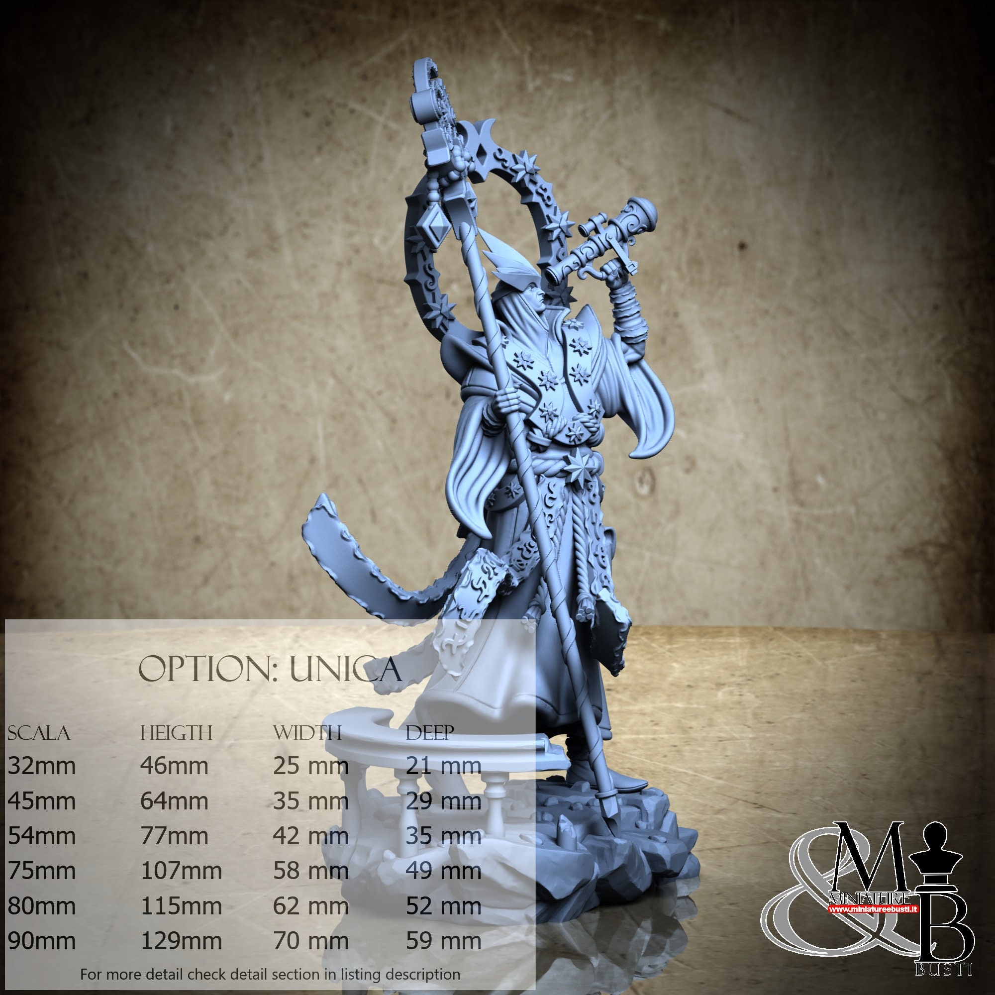 - Figure (1 piece) in Resin: Height: 42 mm, Width: 24 mm, Depth: 20 mm