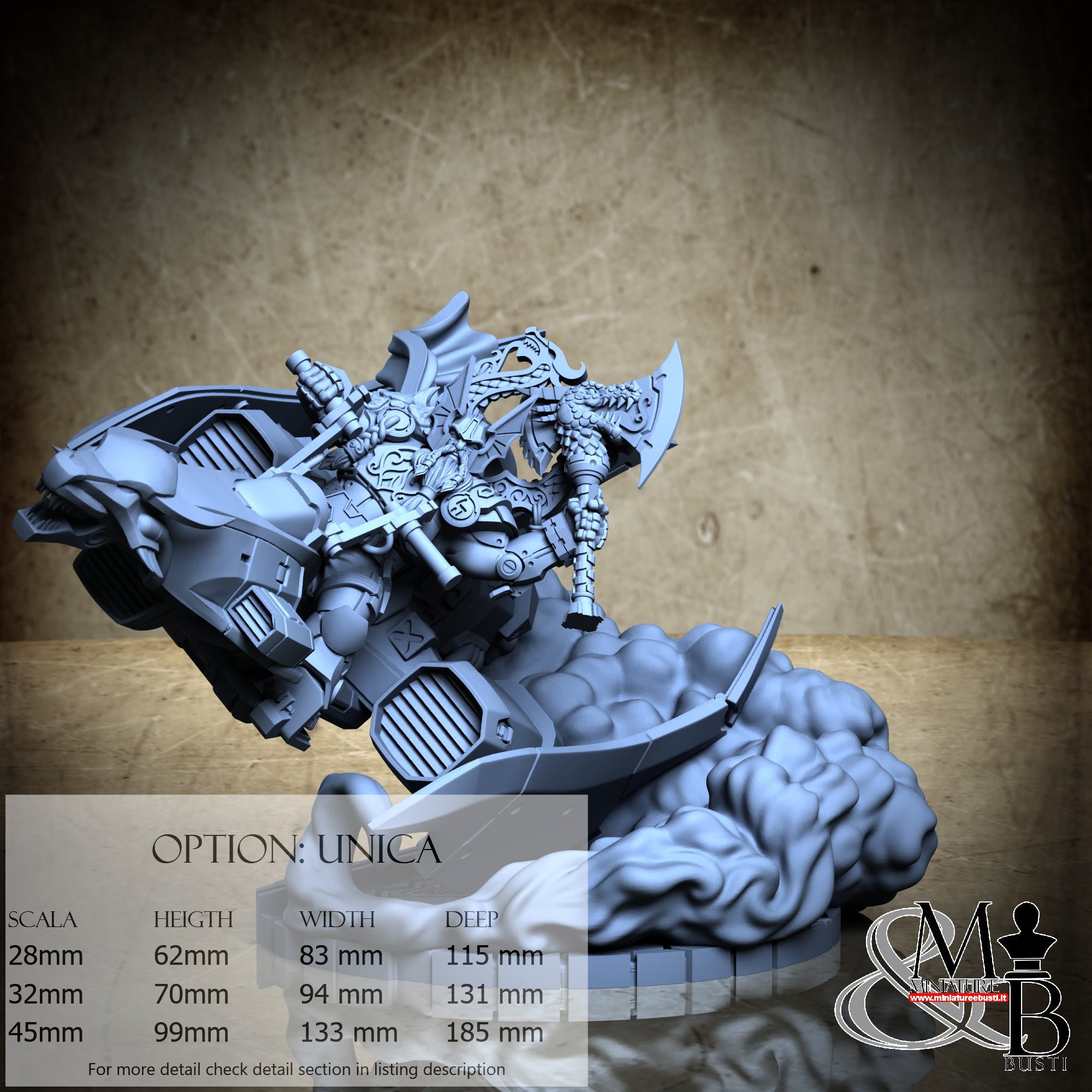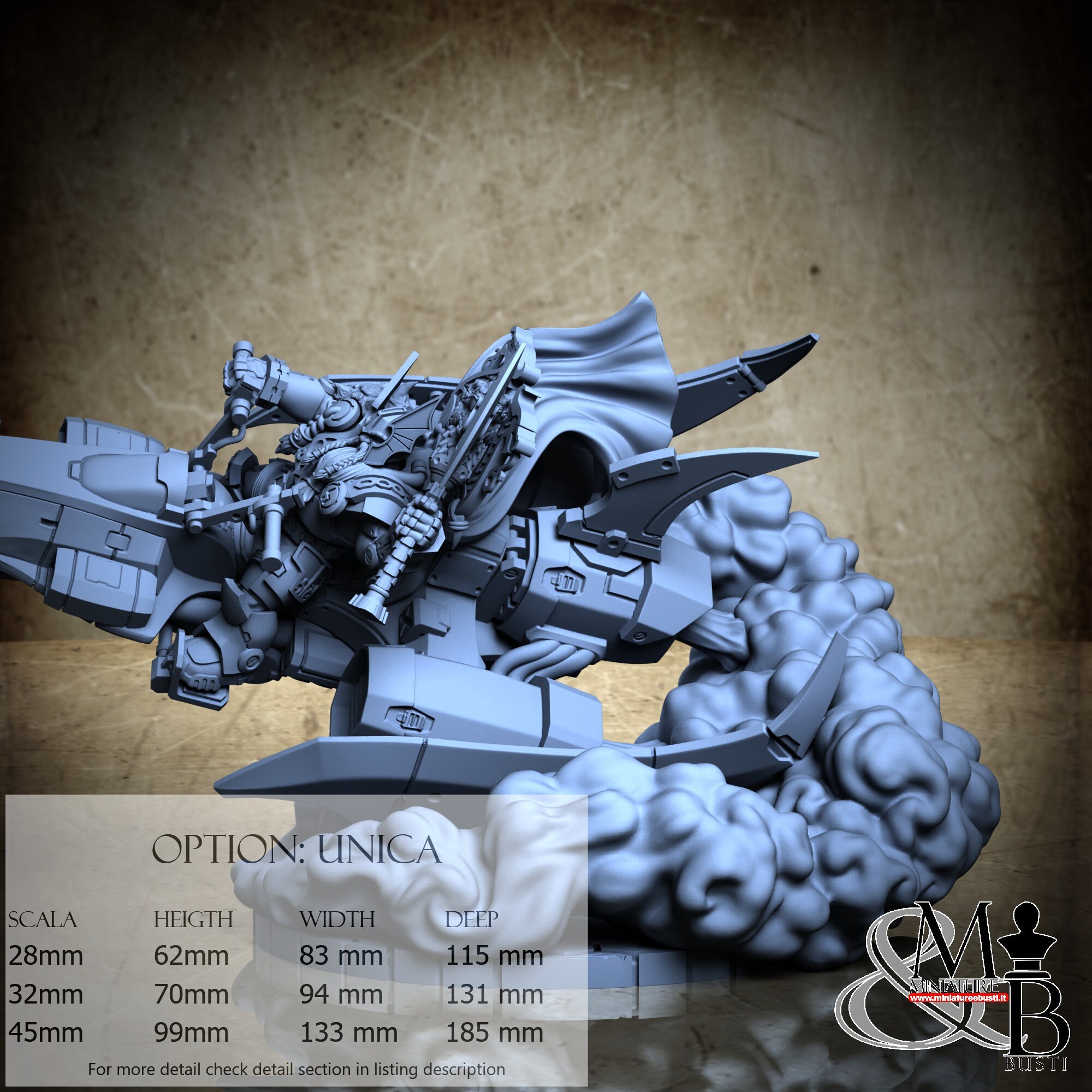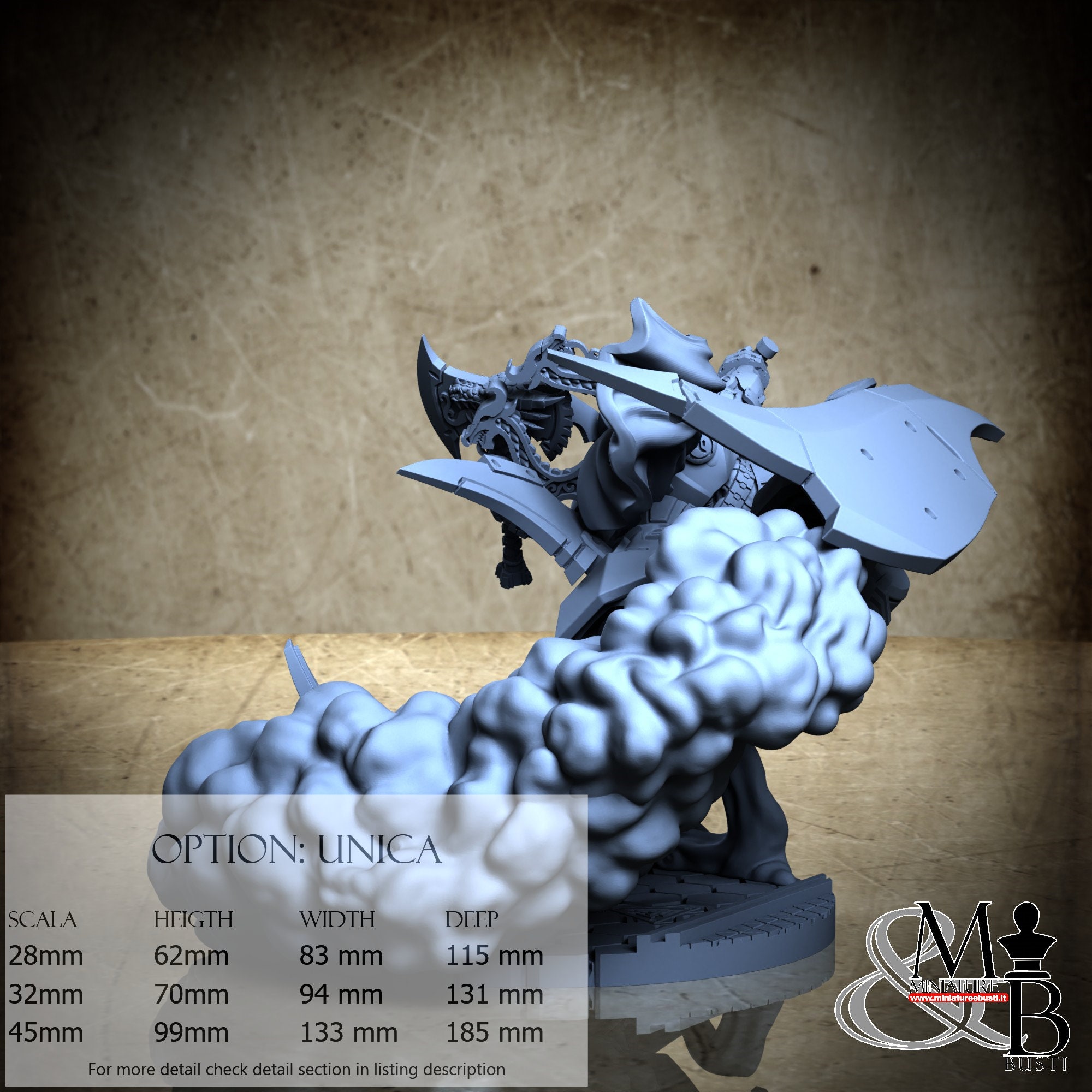- Scale 32 mm, total measures Height: 70 mm, Width: 94 mm, Depth: 131 mm, €. 16.00