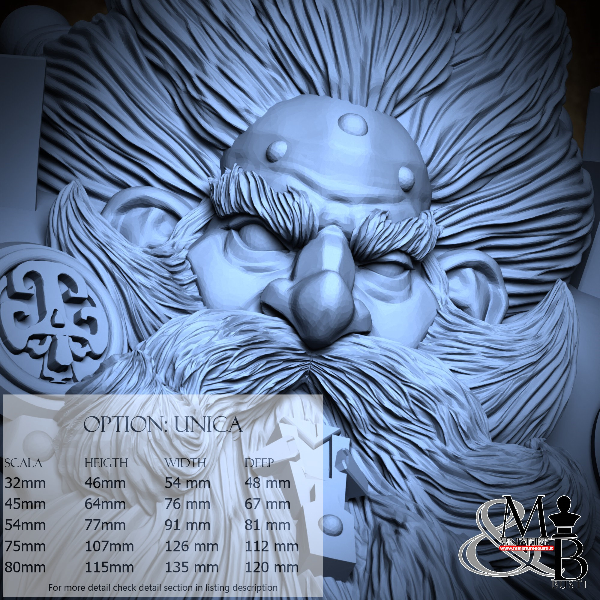 - Base (1 piece) in Resin: Height: 8 mm, Width: 39 mm, Depth: 35 mm