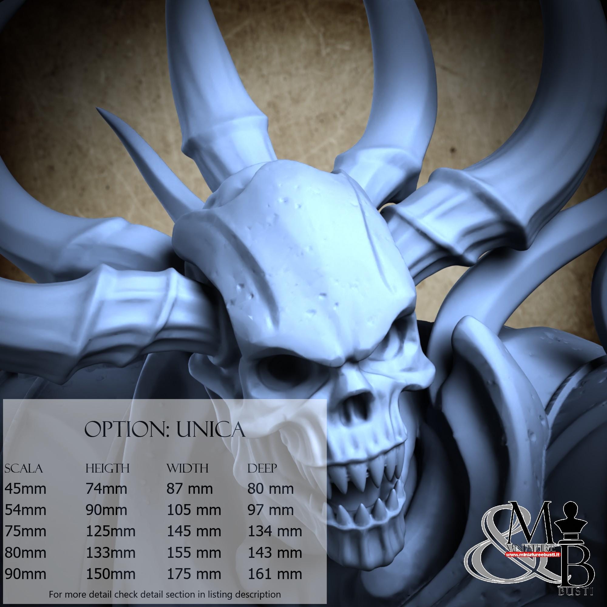 - Base (1 piece) in Resin: Height: 24 mm, Width: 54 mm, Depth: 50 mm