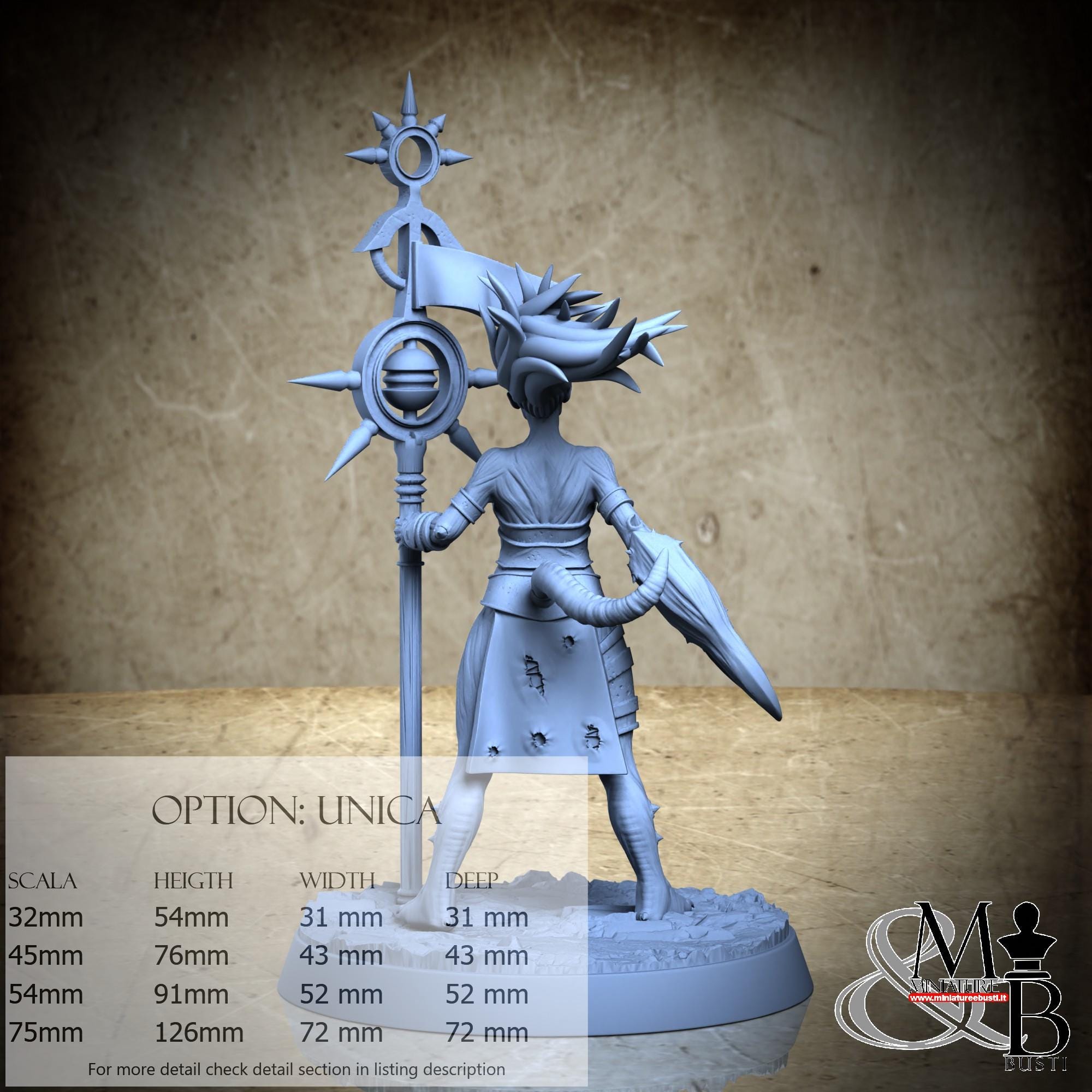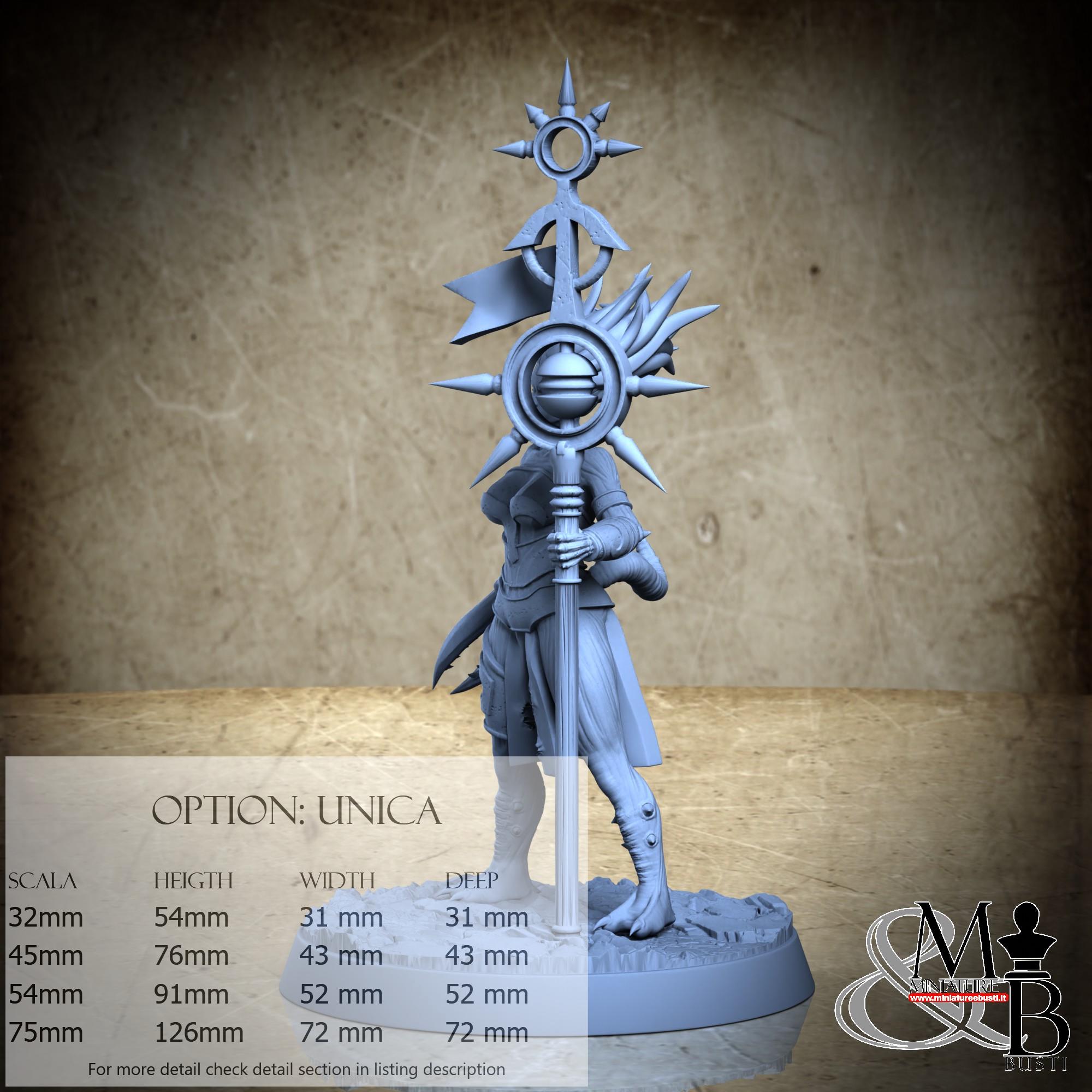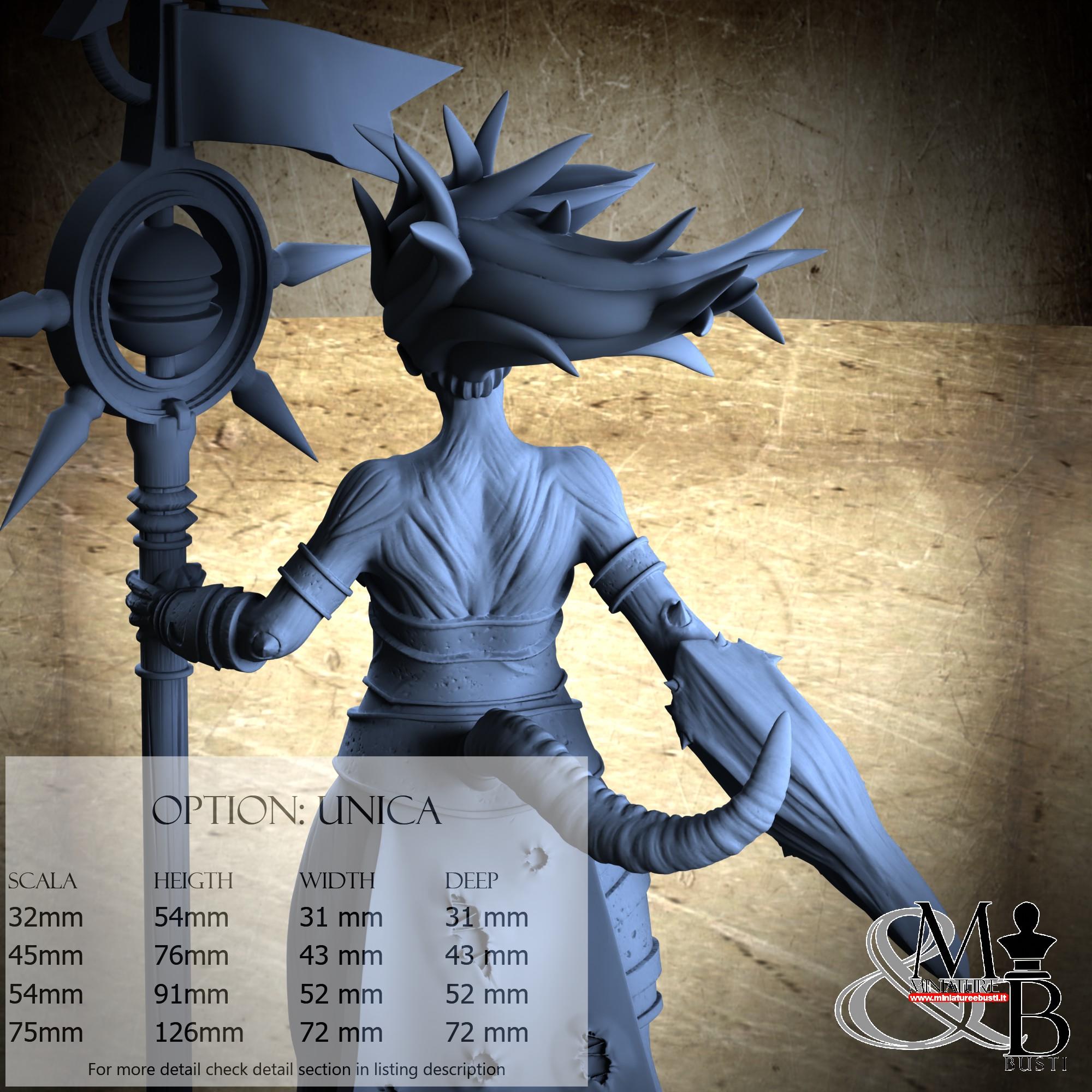 - Figure (1 piece) in Resin: Height: 70 mm, Width: 40 mm, Depth: 32 mm