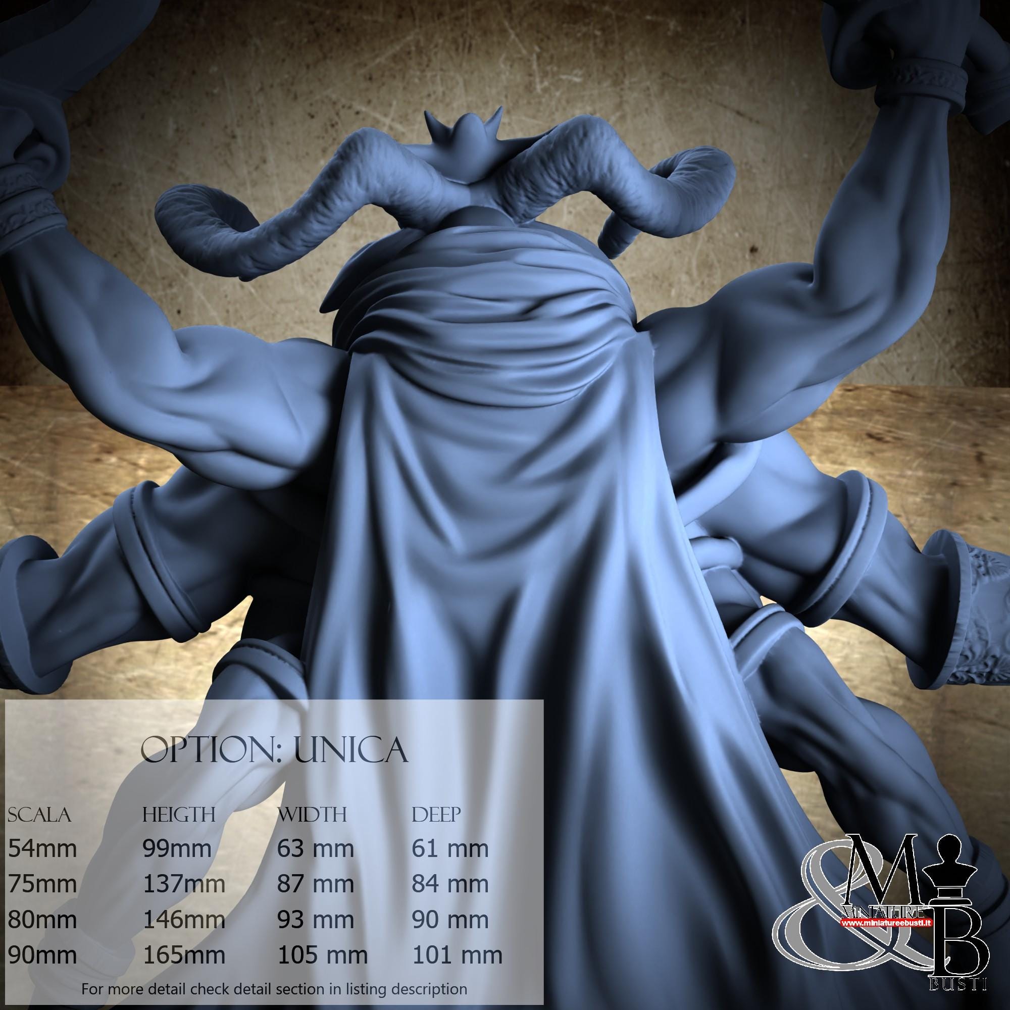 - Figure (1 piece) in Resin: Height: 92 mm, Width: 63 mm, Depth: 37 mm