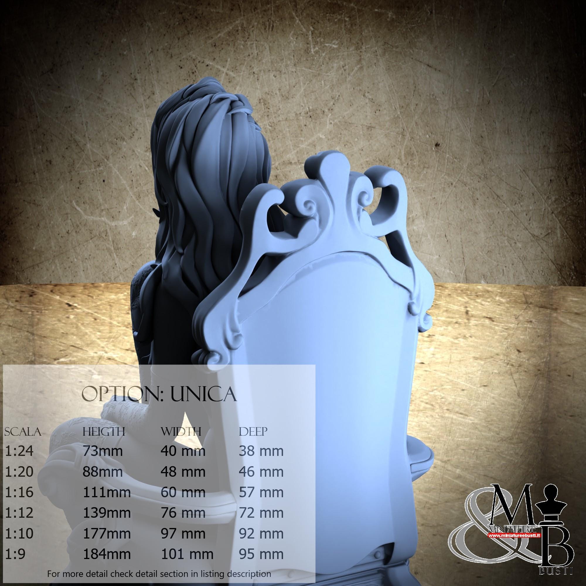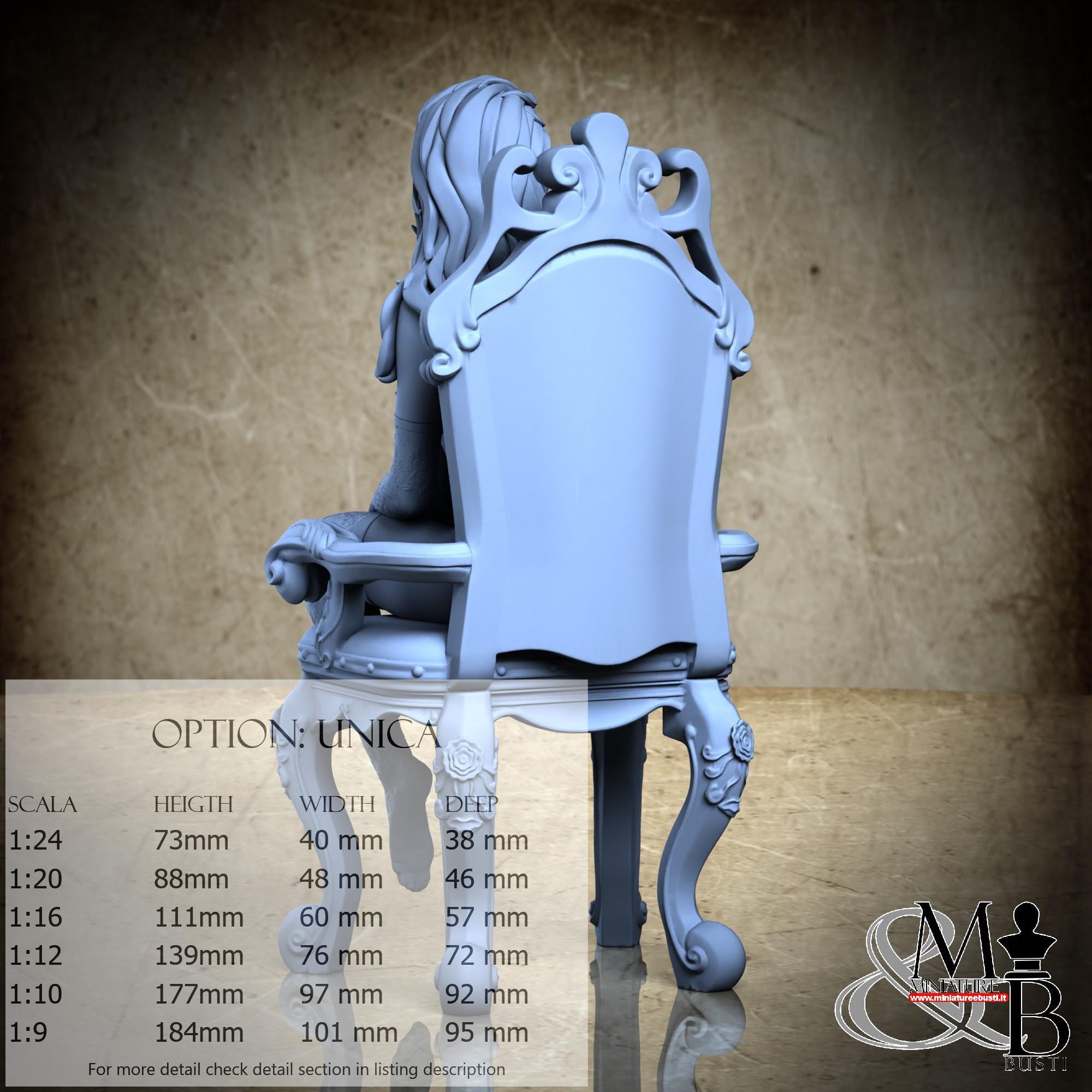 - Chair (1 piece) in Resin: Height: 84 mm, Width: 48 mm, Depth: 46 mm