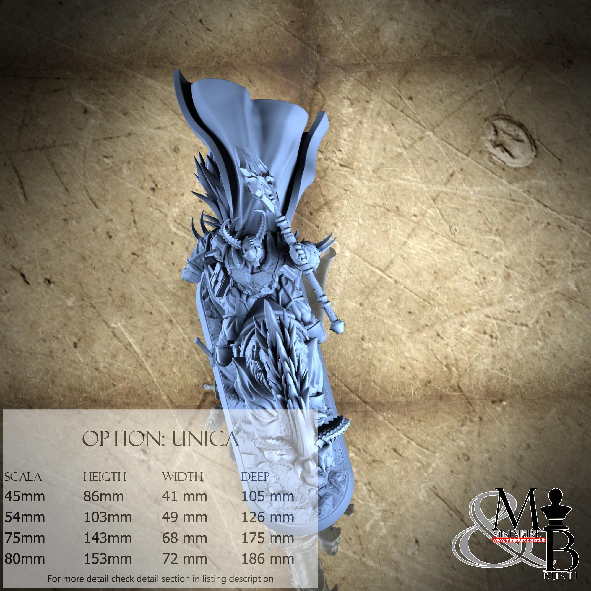 - Base (1 piece) in Resin: Height: 35 mm, Width: 51 mm, Depth: 129 mm
