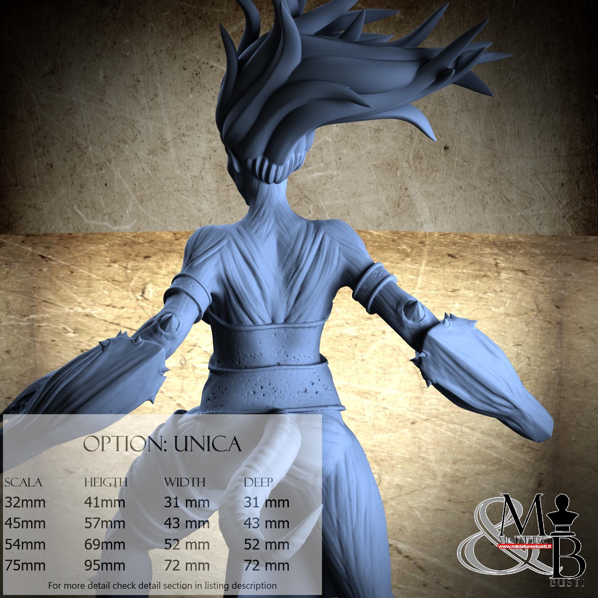 - Figure (1 piece) in Resin: Height: 37 mm, Width: 28 mm, Depth: 23 mm