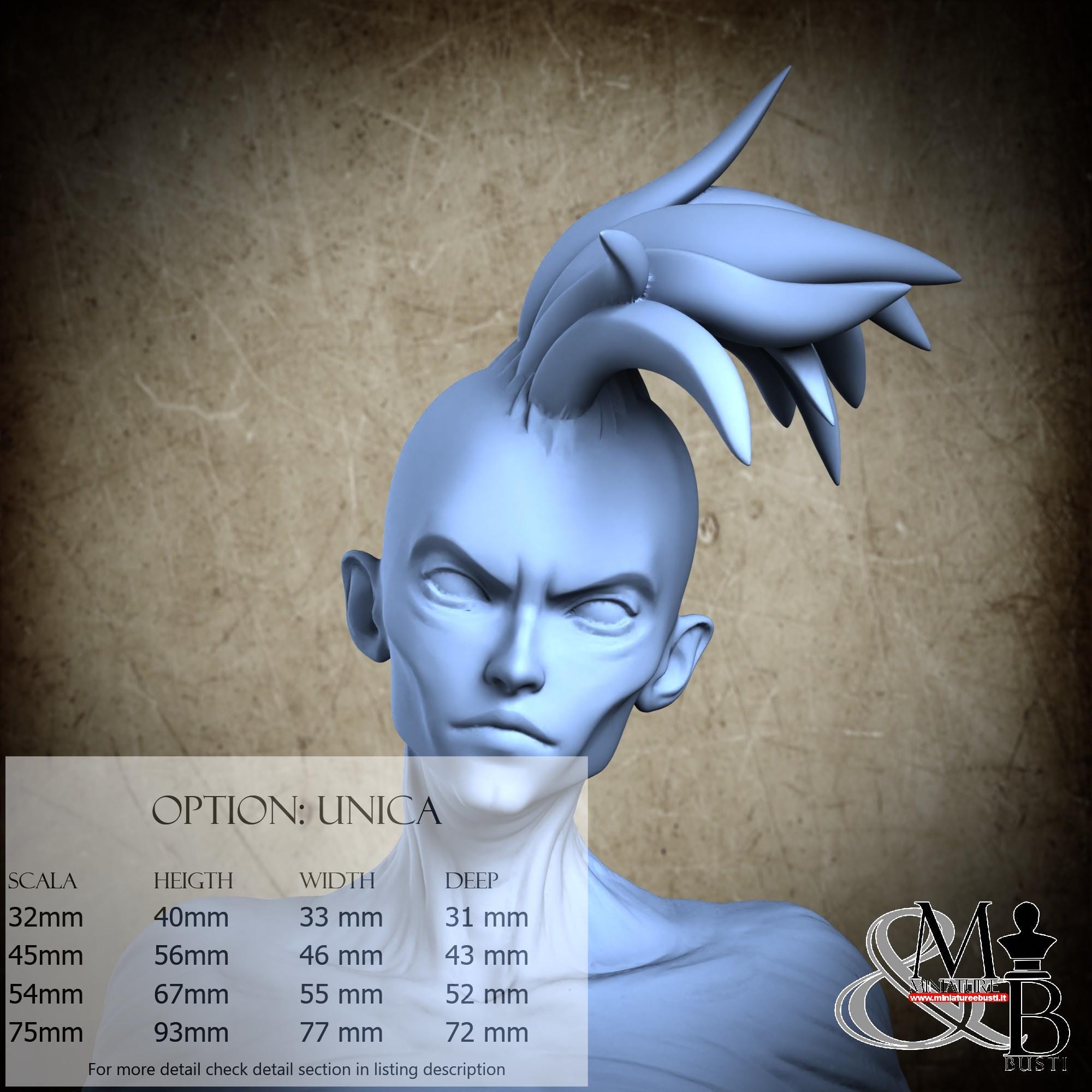 - Figure (1 piece) in Resin: Height: 60 mm, Width: 55 mm, Depth: 32 mm