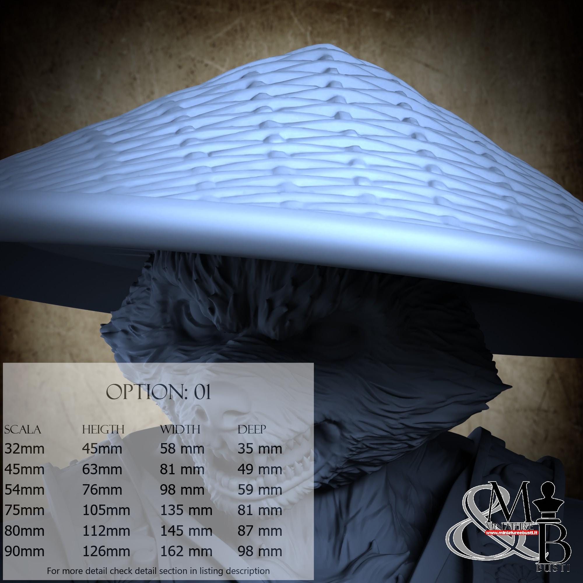 54mm Scale - Millimeters 91x76x69 - Inches 3.58x2.99x2.72 - 169% Scale