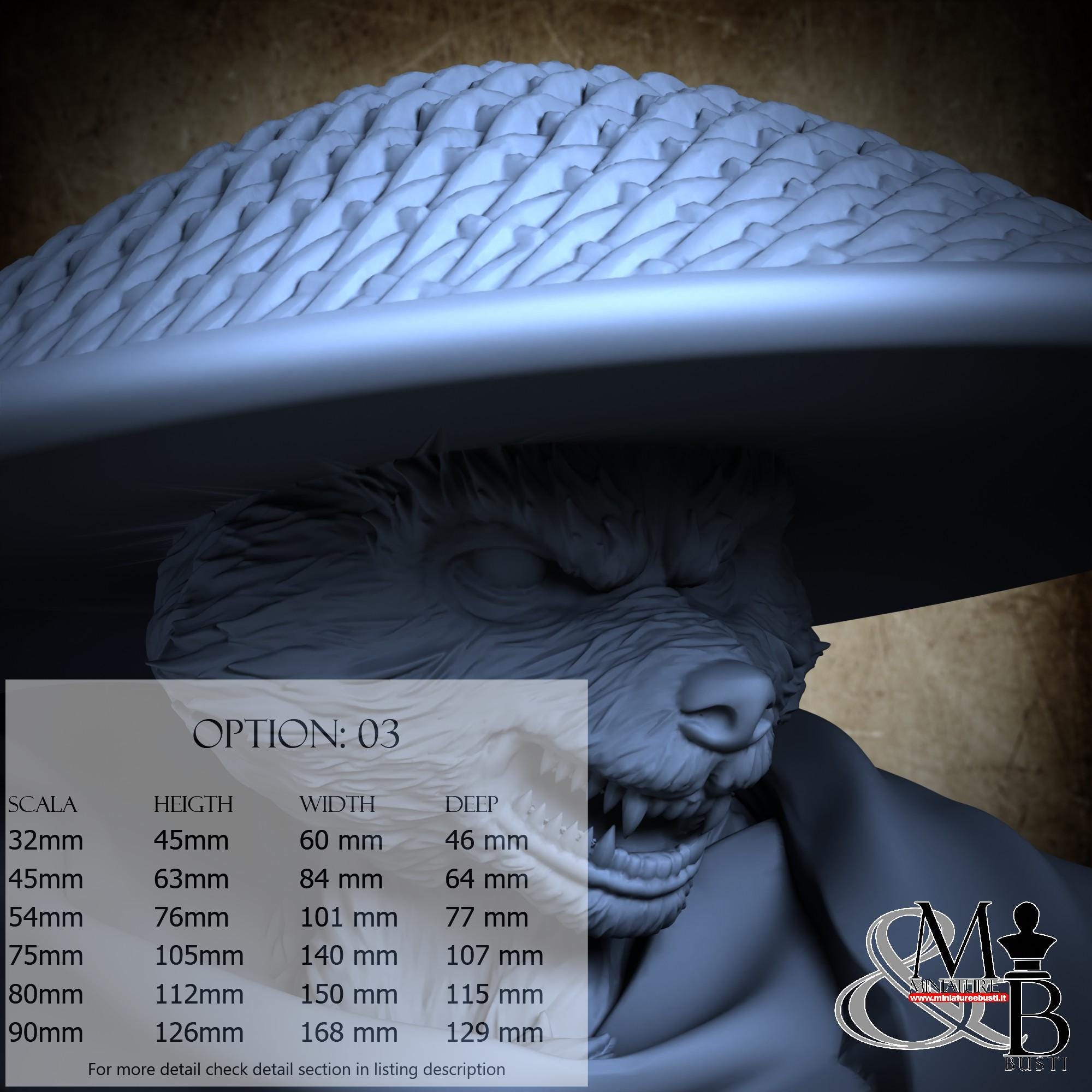 Scale 54mm - Millimeters 76x101x77 - Inches 2.99x3.98x3.03 - 169% Scale