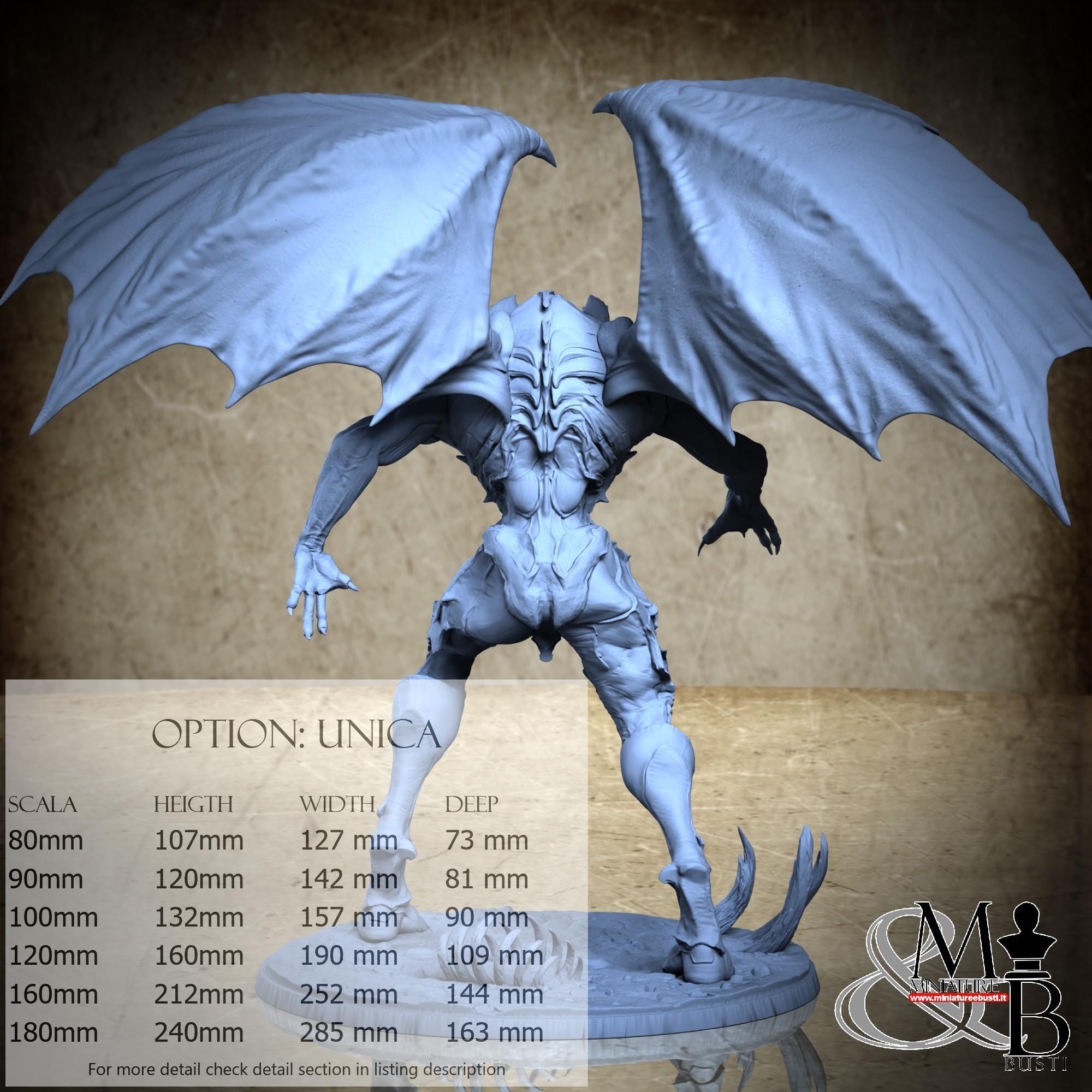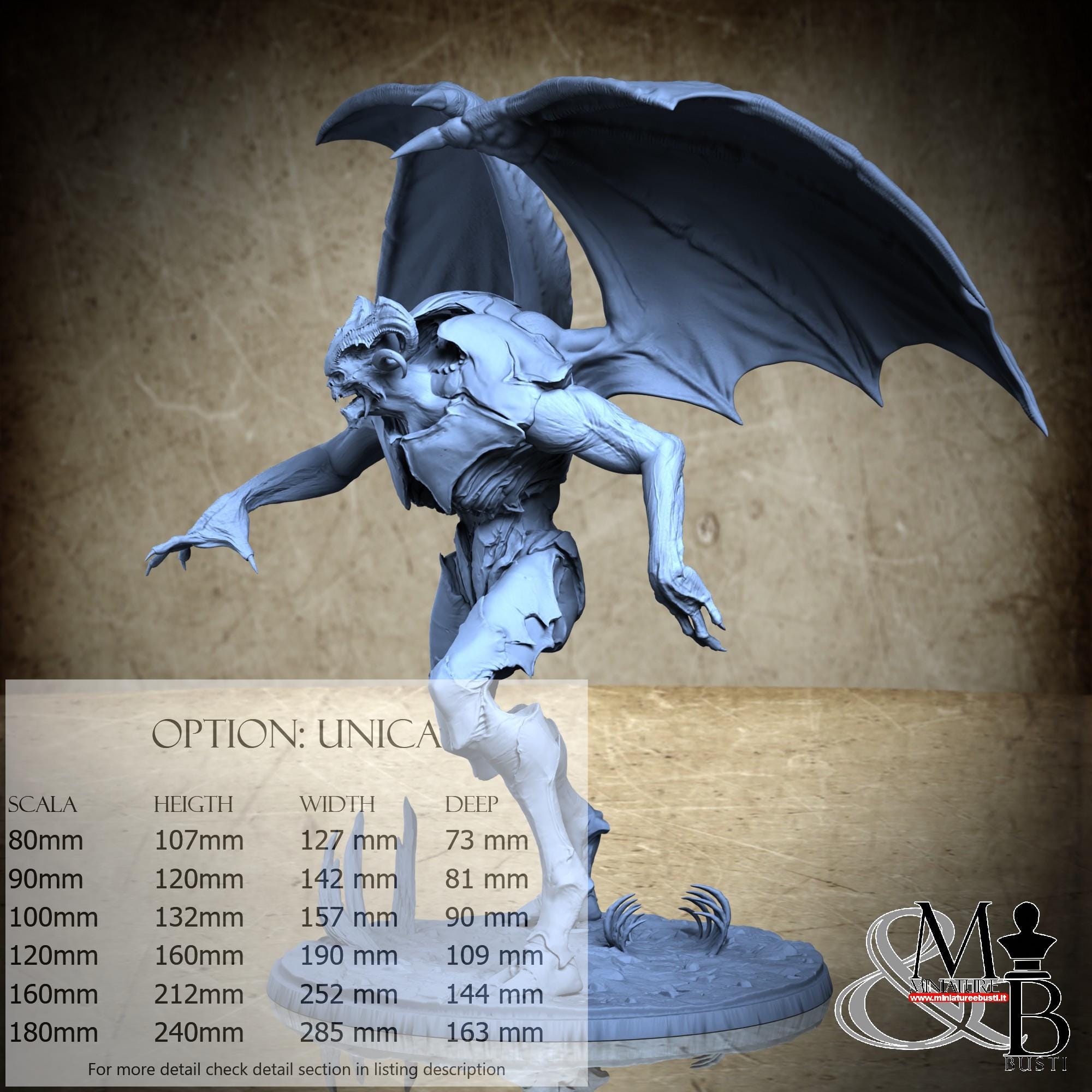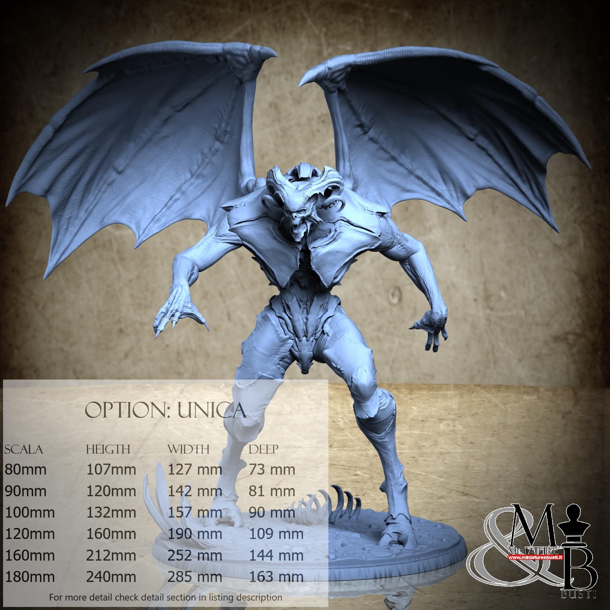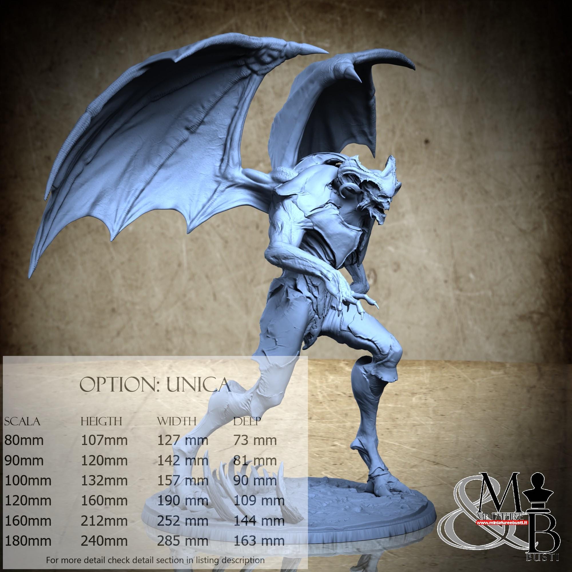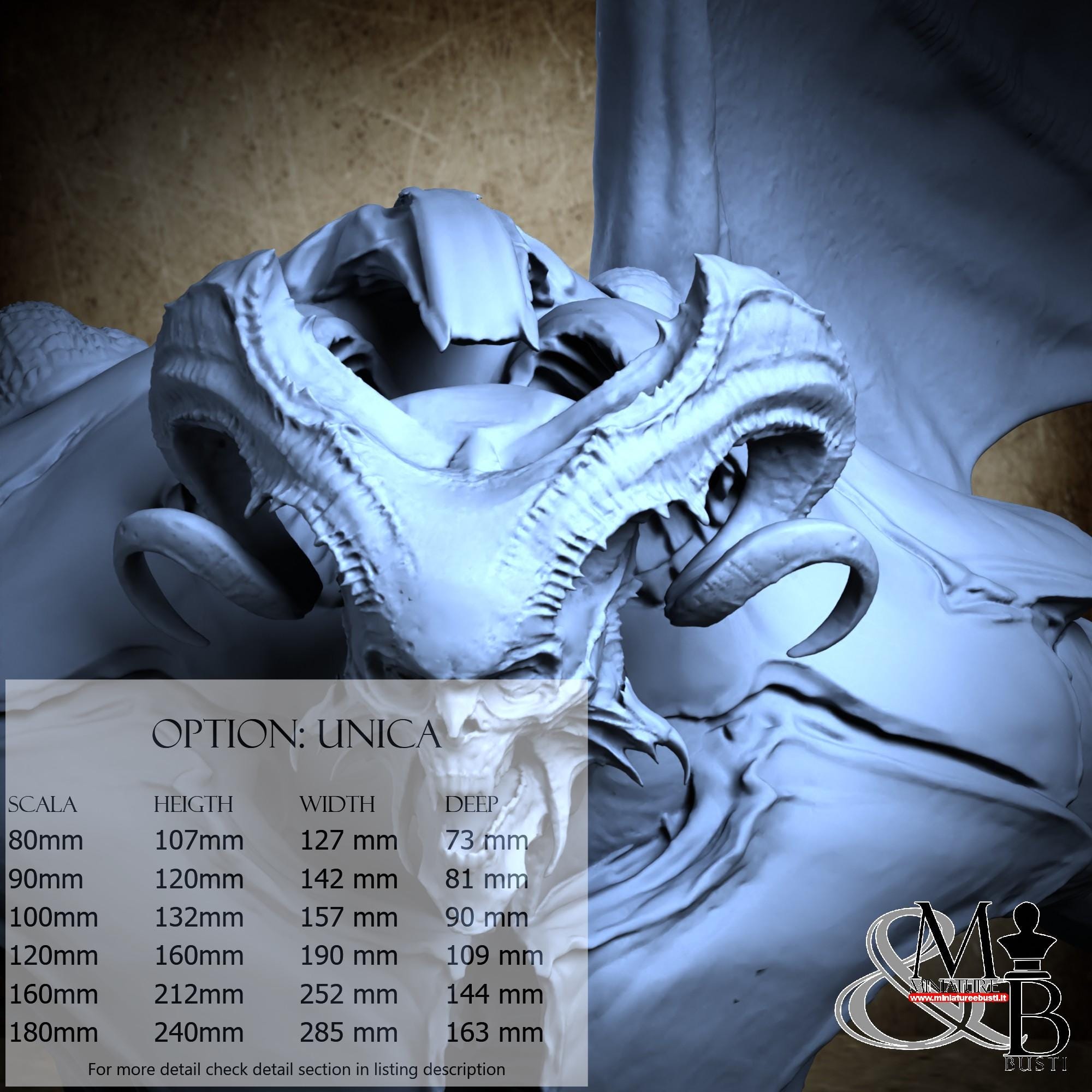 - Base (1 piece) in Resin: Height: 37 mm, Width: 135 mm, Depth: 131 mm