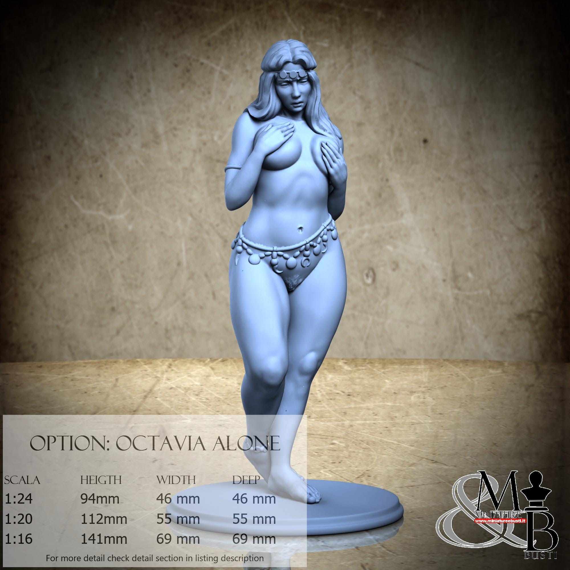 - Octavia (3 pieces) in Resin: Height: 139 mm, Width: 54 mm, Depth: 60 mm