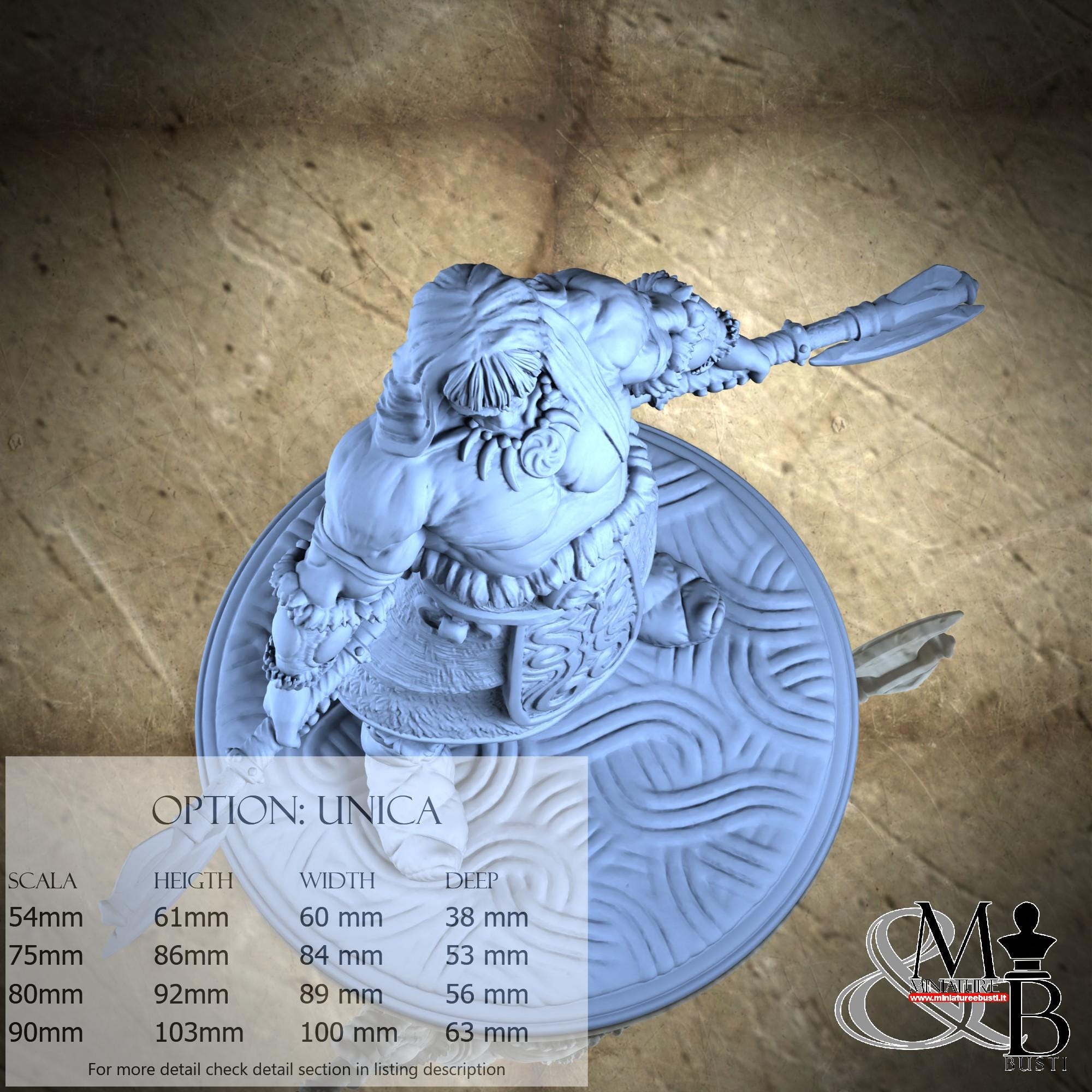- Figure (1 piece) in Resin: Height: 61 mm, Width: 60 mm, Depth: 17 mm