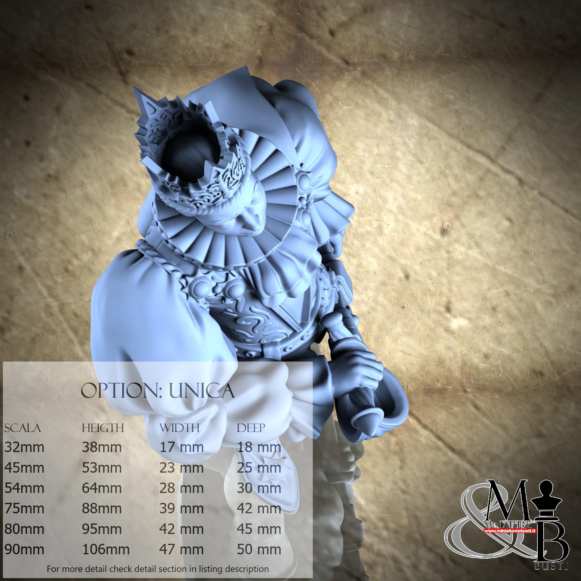 - Figure (1 piece) in Resin: Height: 53 mm, Width: 23 mm, Depth: 25 mm