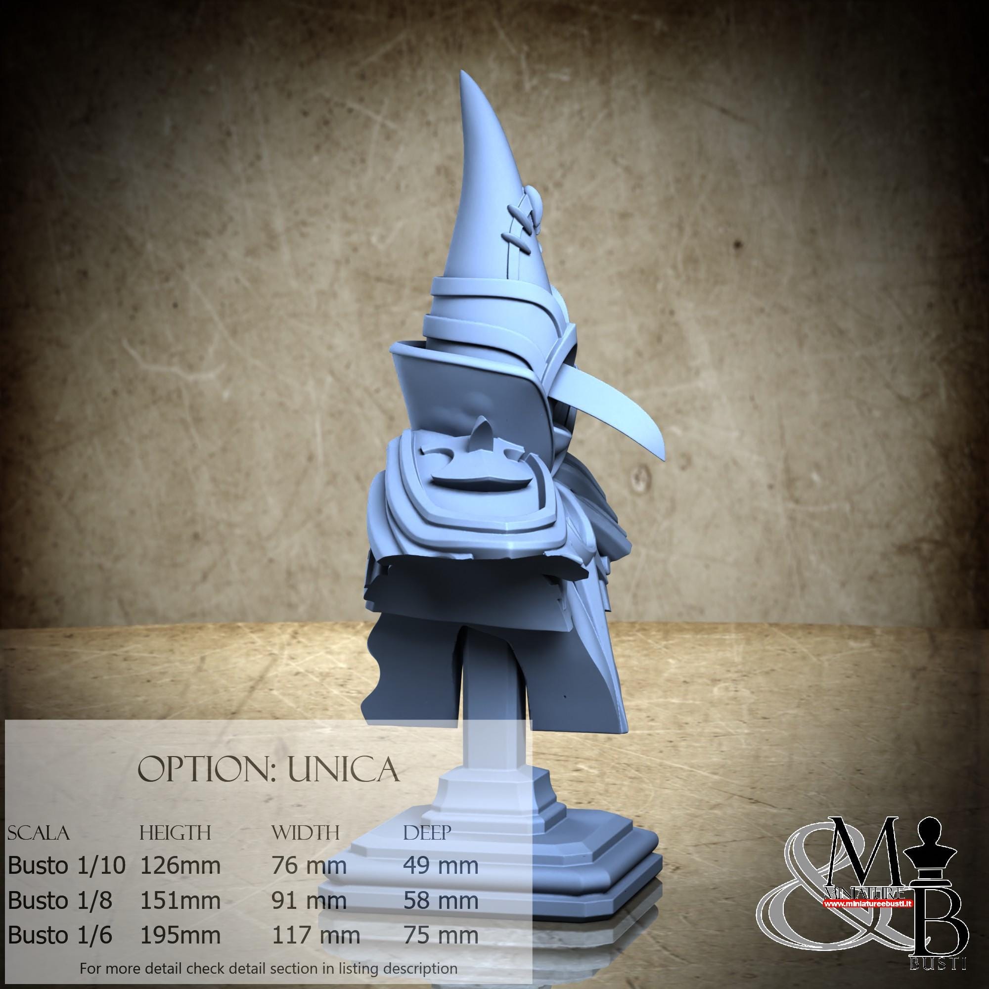 Bust Scale 1/10, cost €. 35.00 (Height: 126 mm, Width: 76 mm, Depth: 49 mm), composed of the following components: