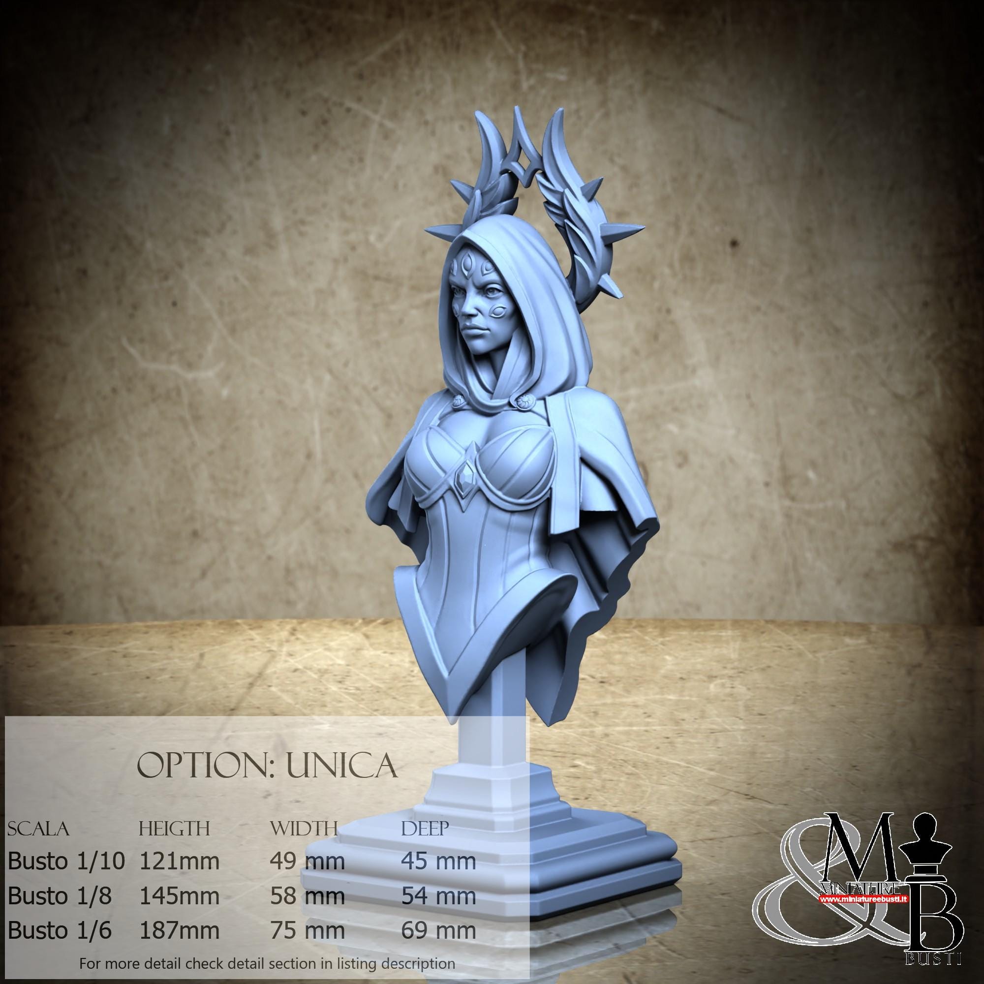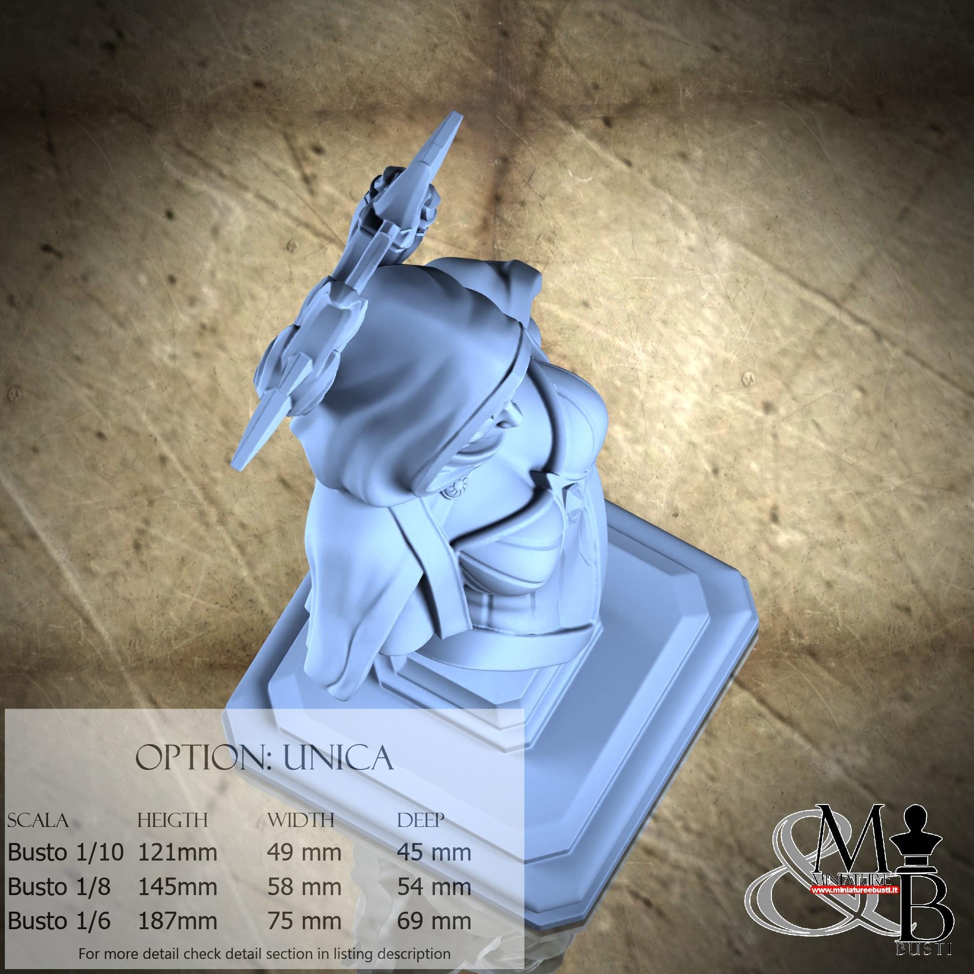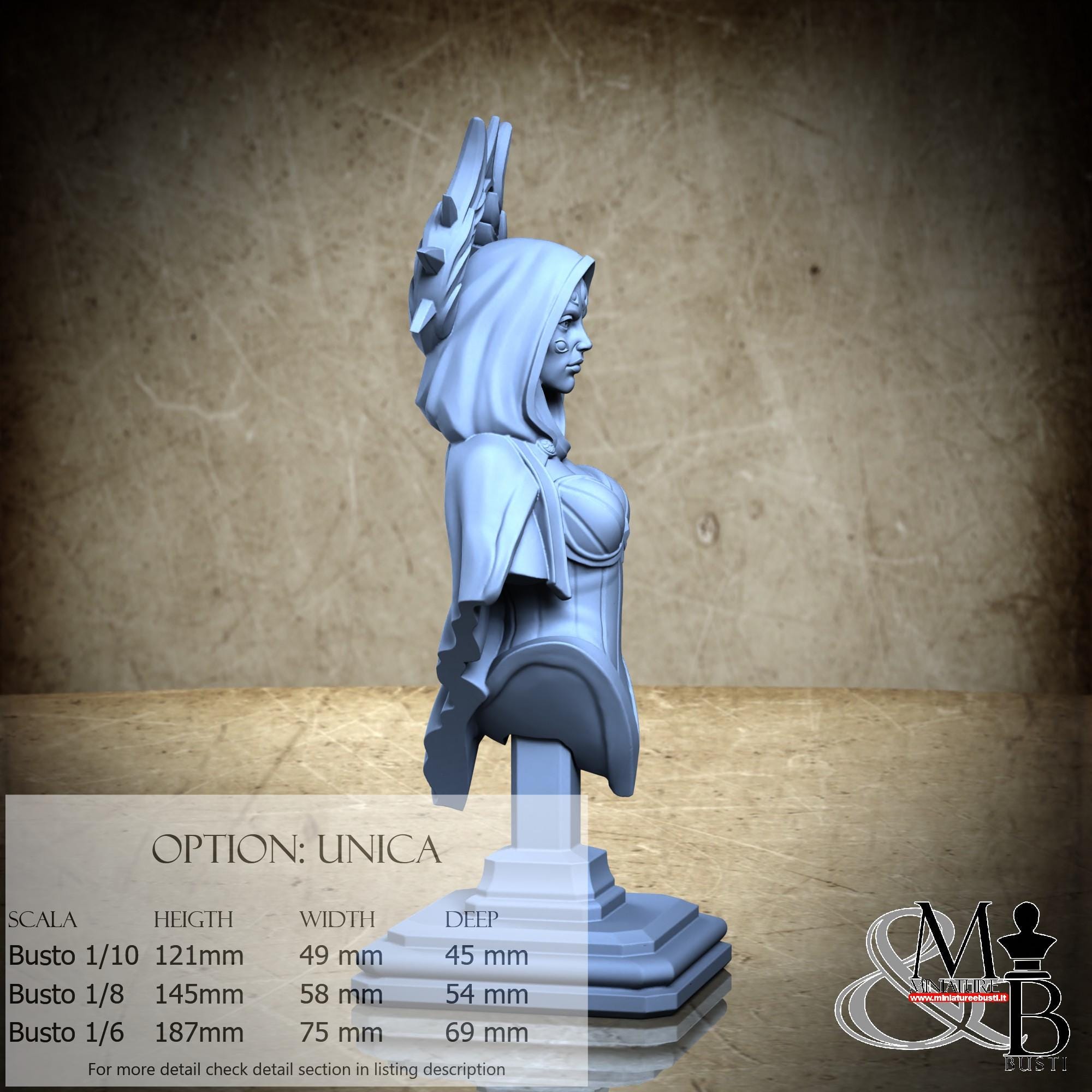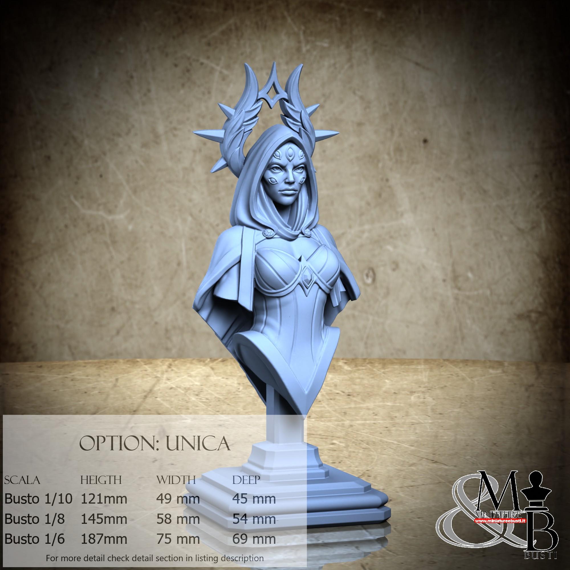 Bust Scale 1/10, cost €. 35.00 (Height: 121 mm, Width: 49 mm, Depth: 45 mm), composed of the following components: