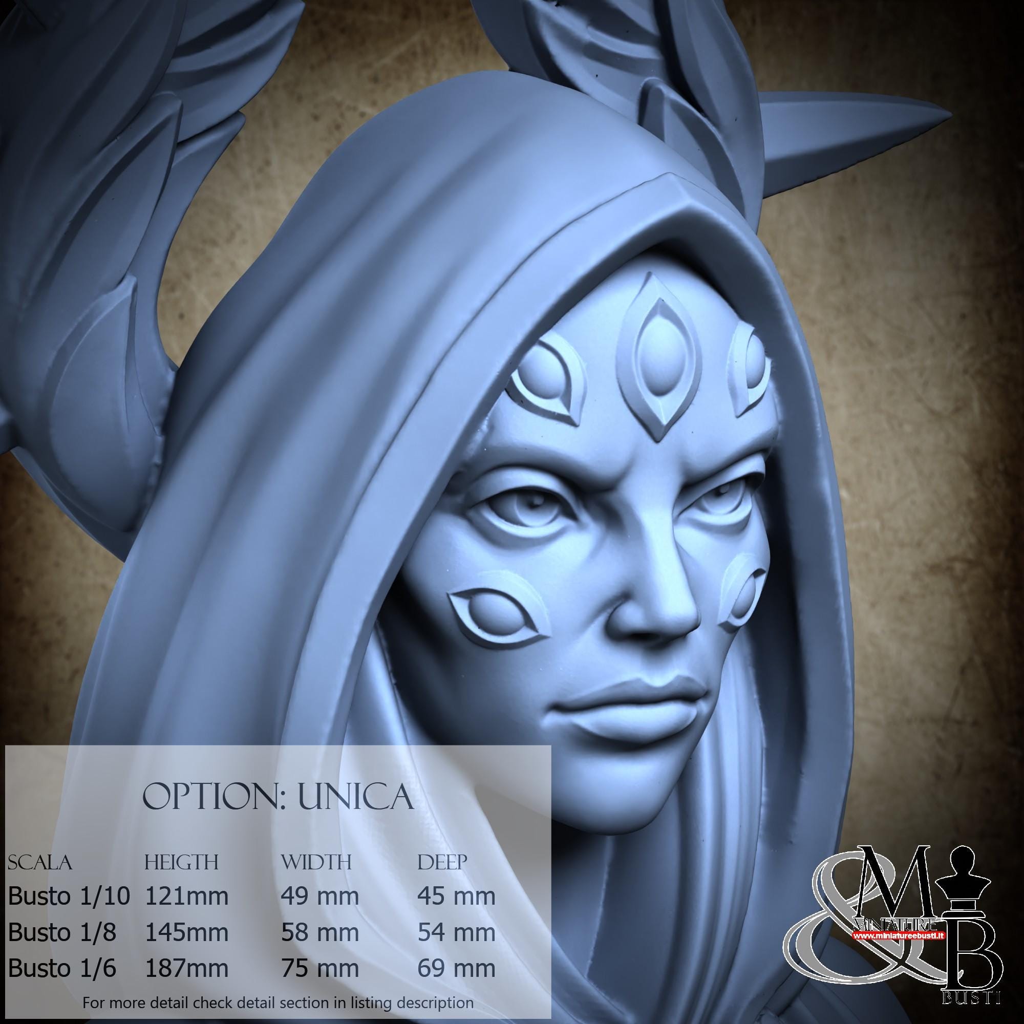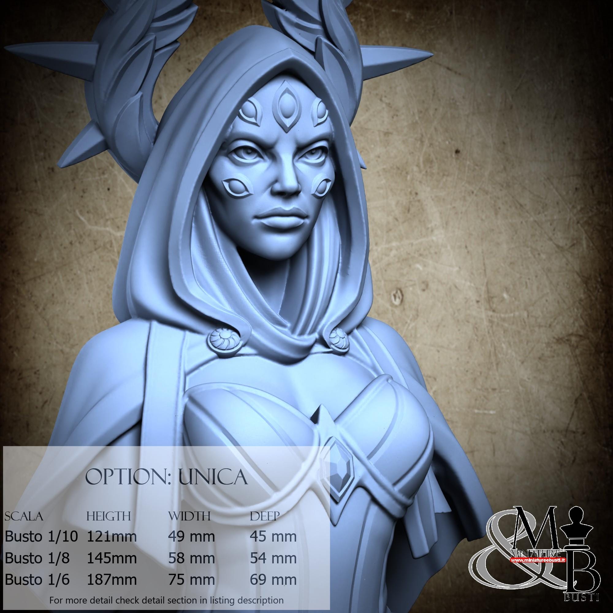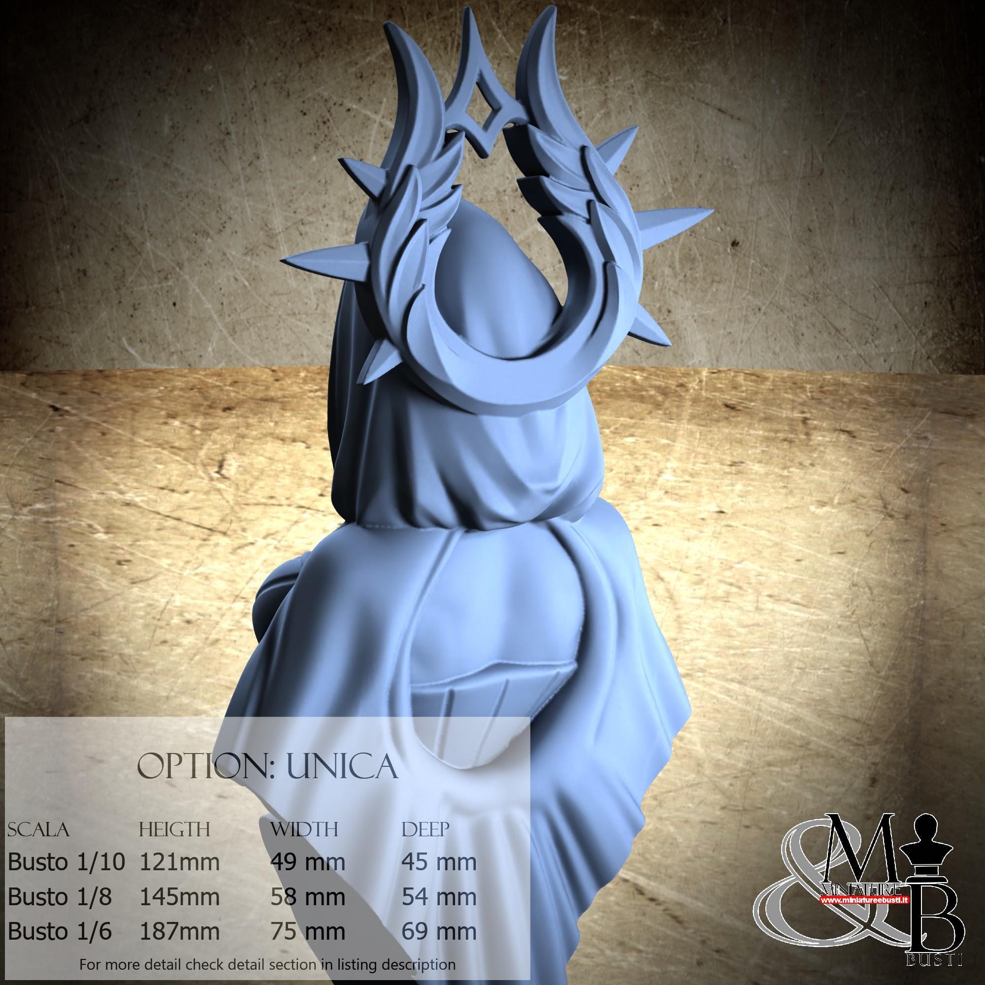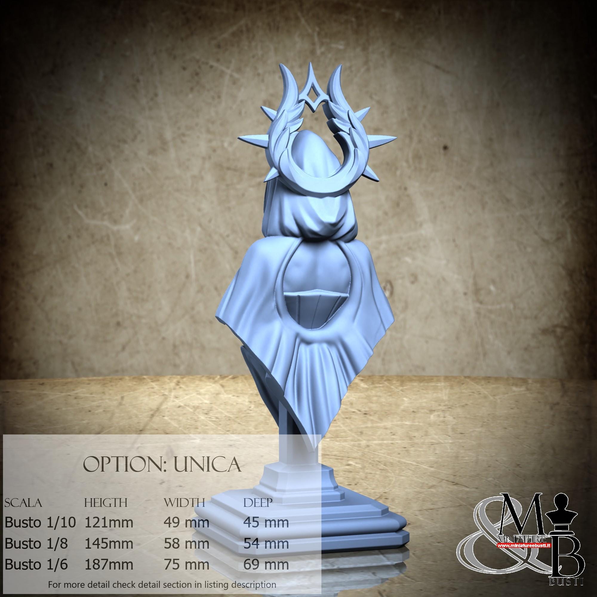 Bust Scale 1/10, cost €. 35.00 (Height: 121 mm, Width: 49 mm, Depth: 45 mm), composed of the following components: