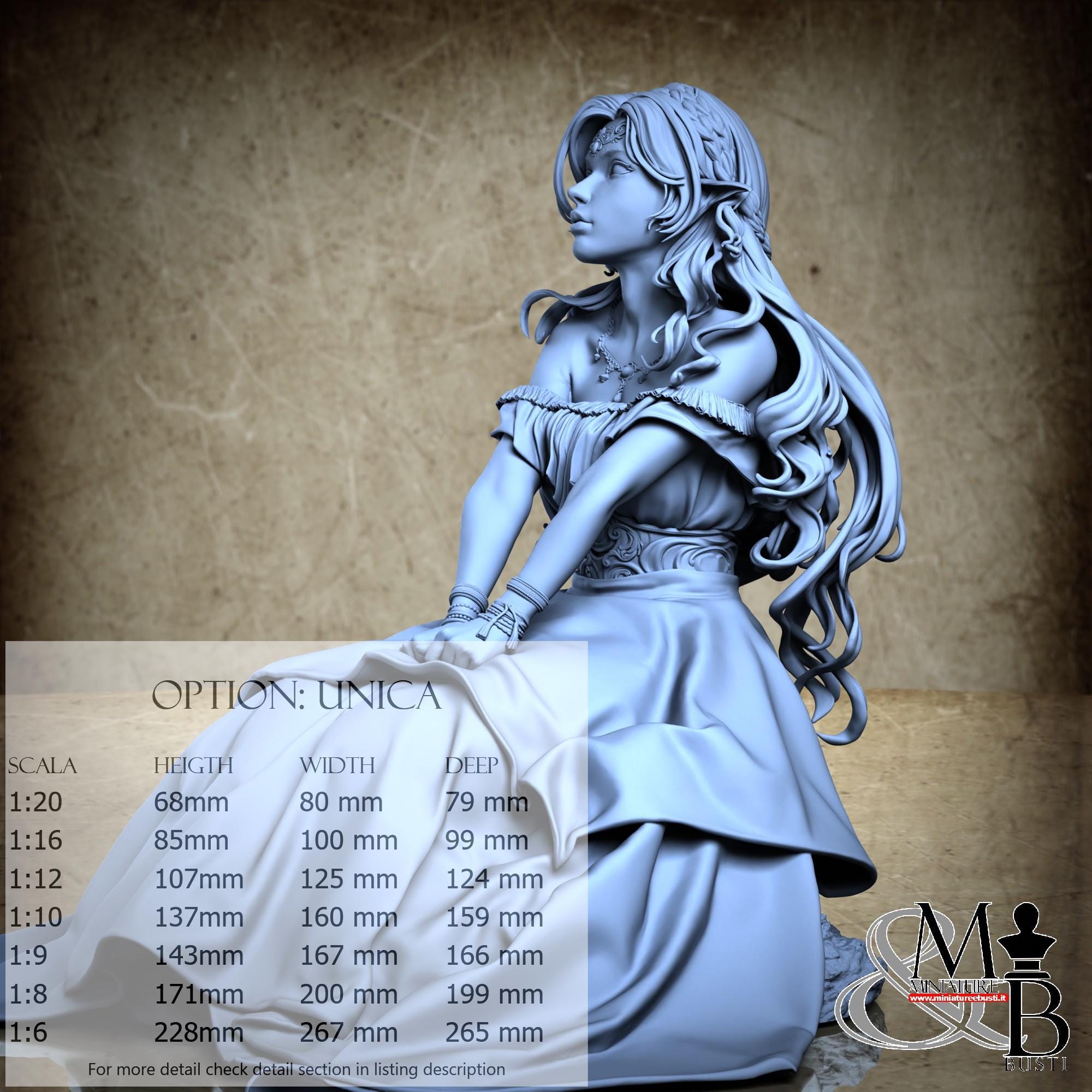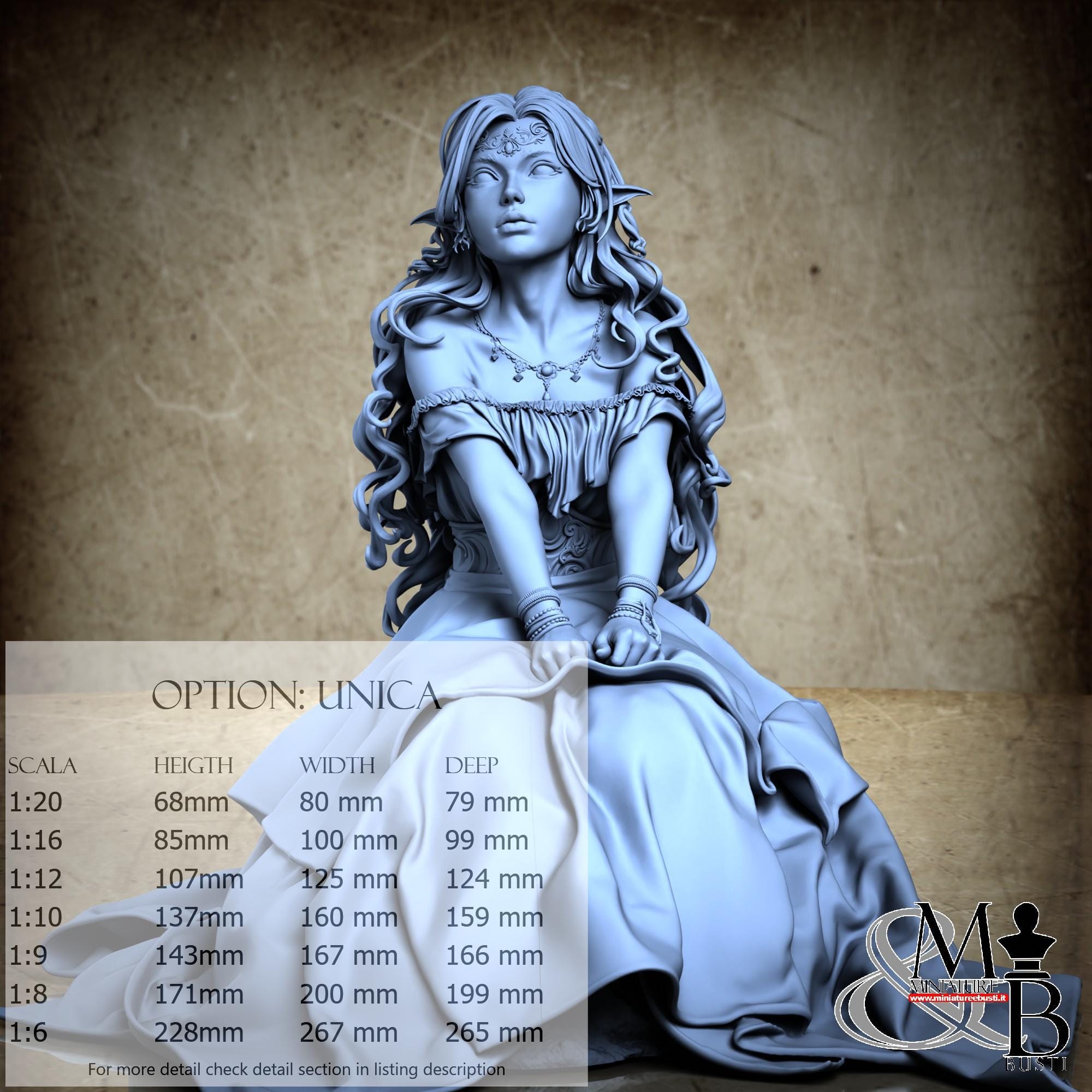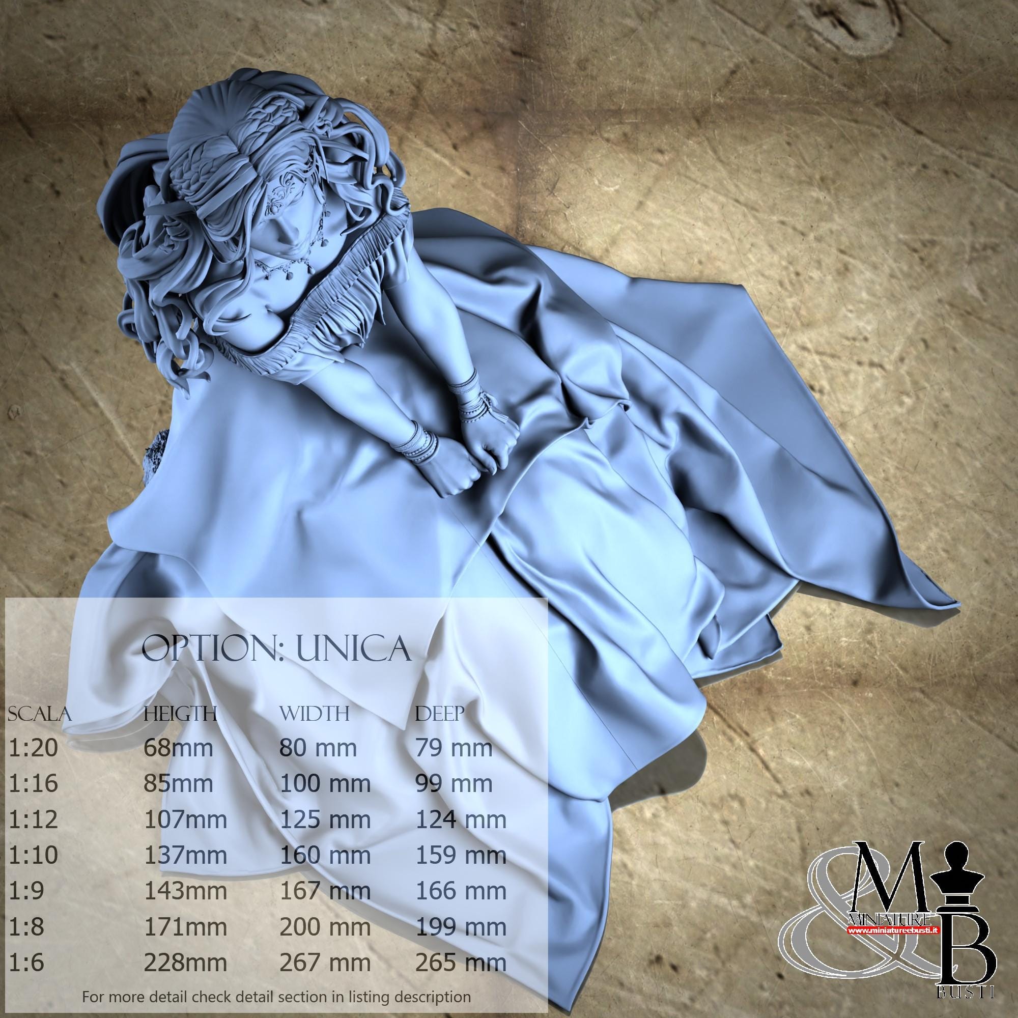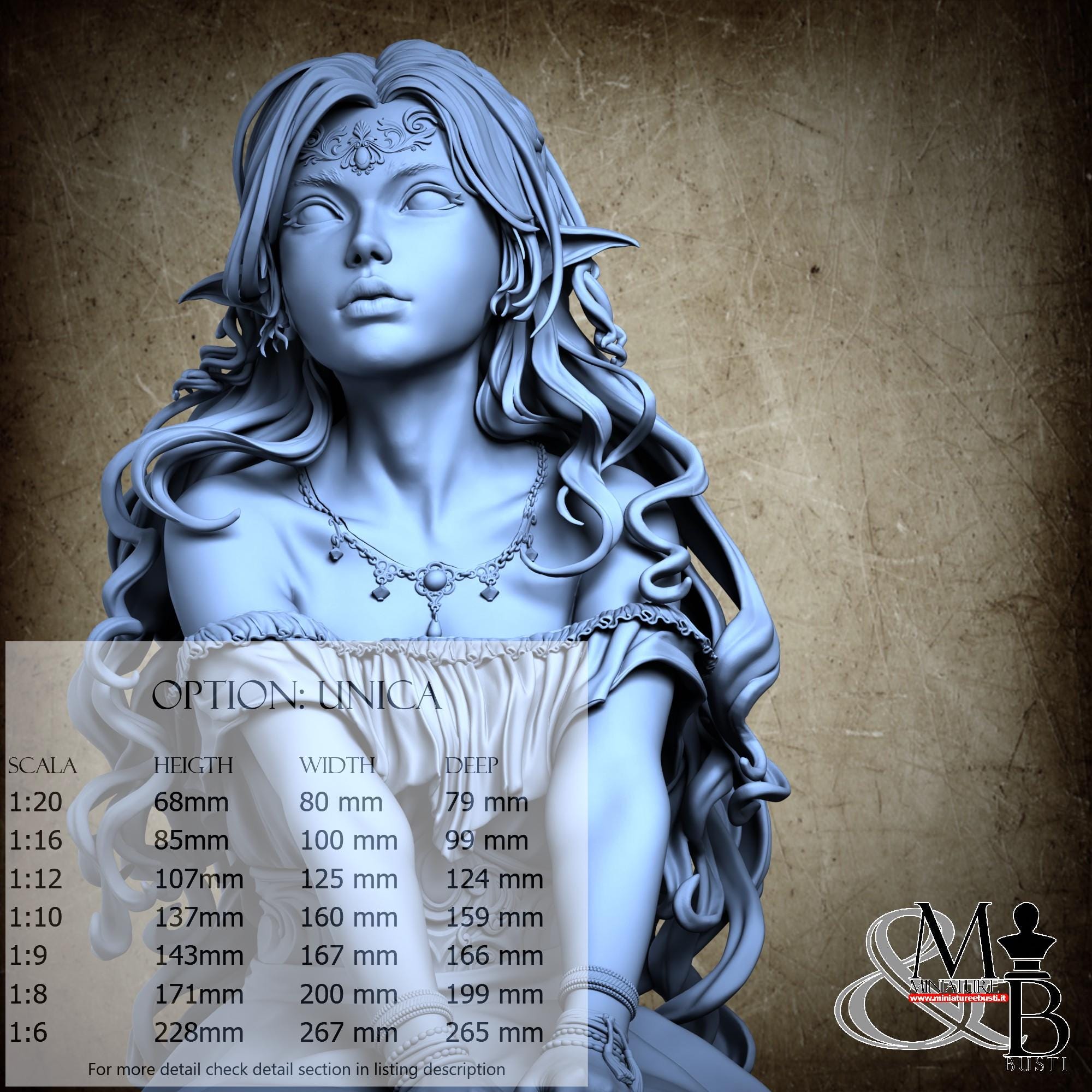 Colla, colori, stucco, e supporti per busti non sono inclusi nel prezzo.