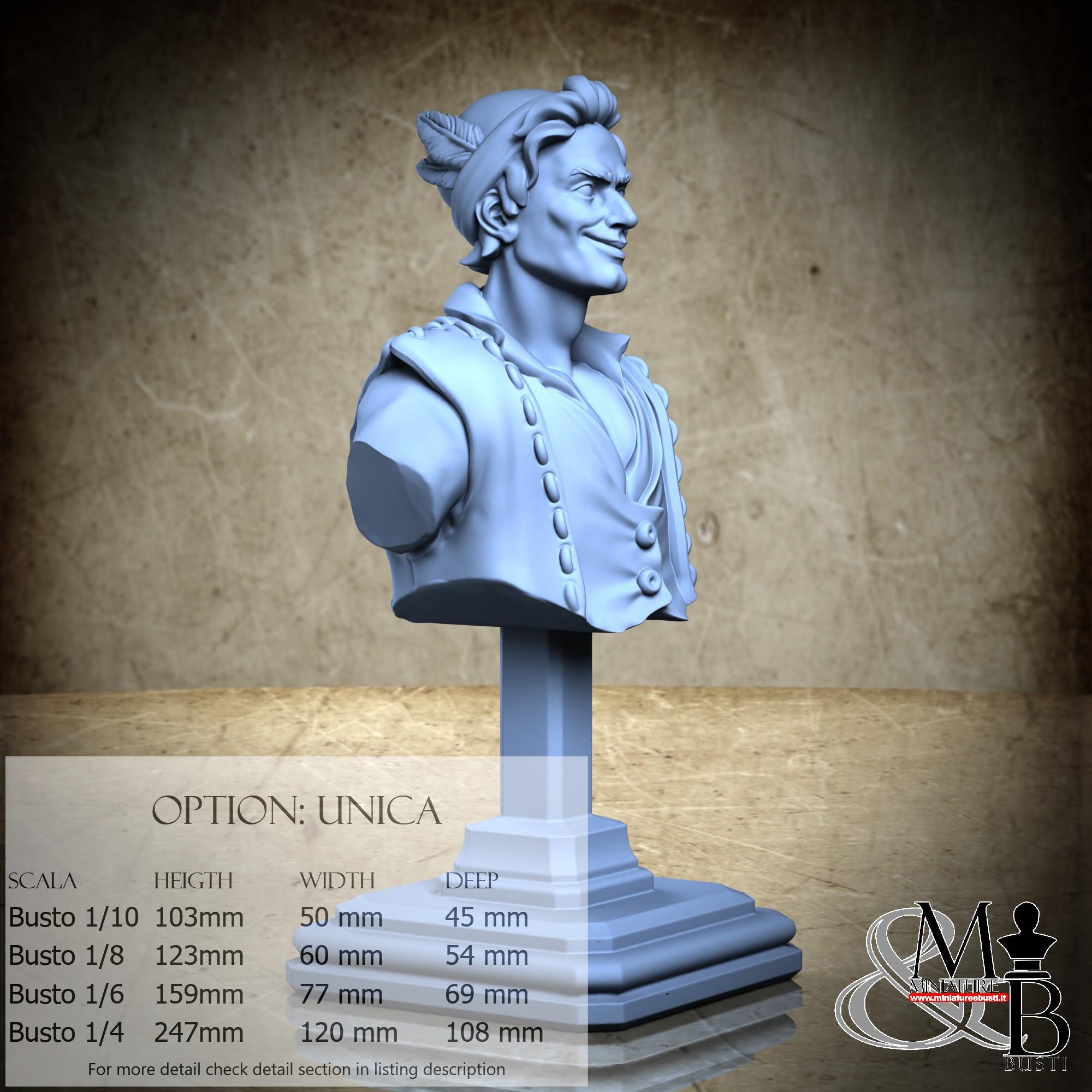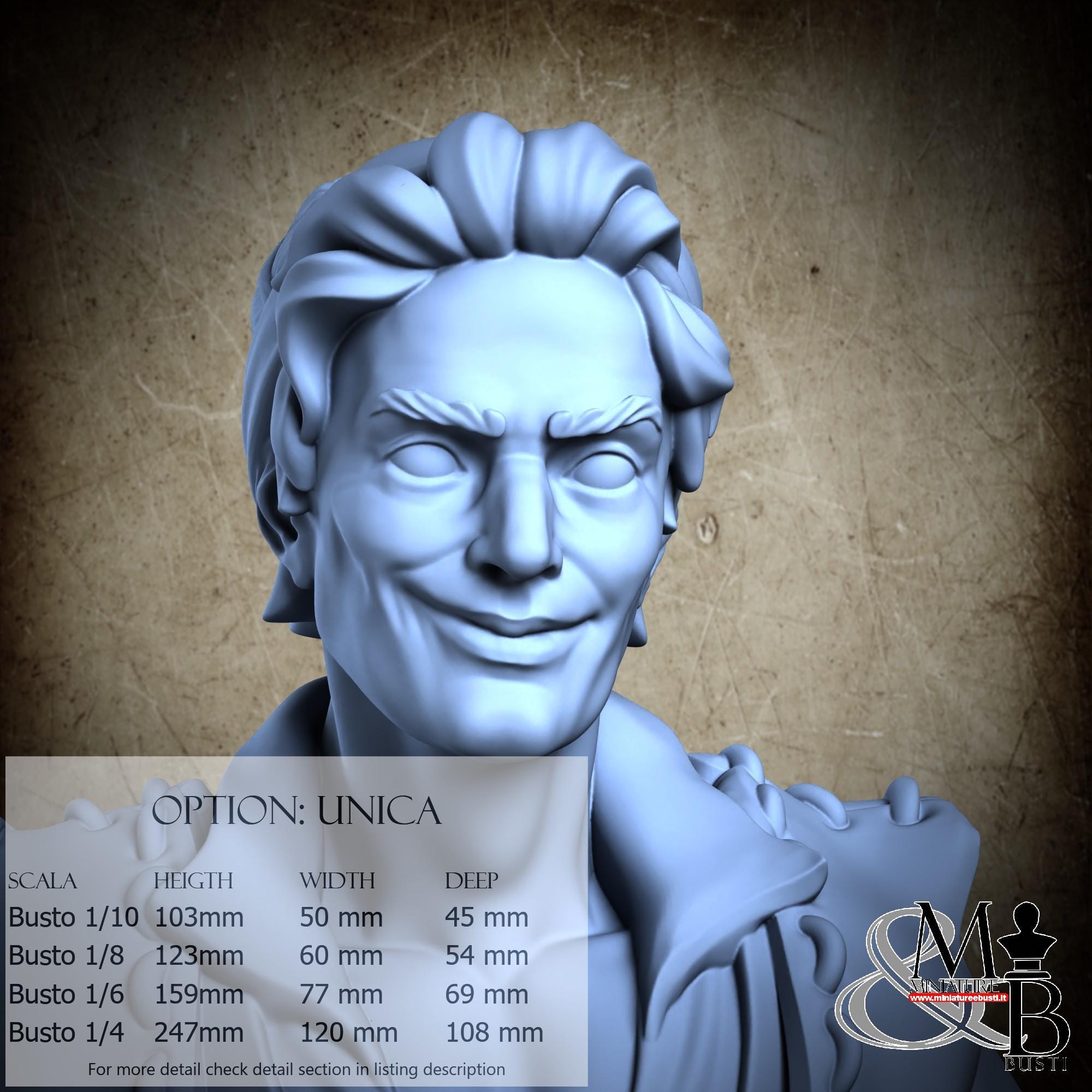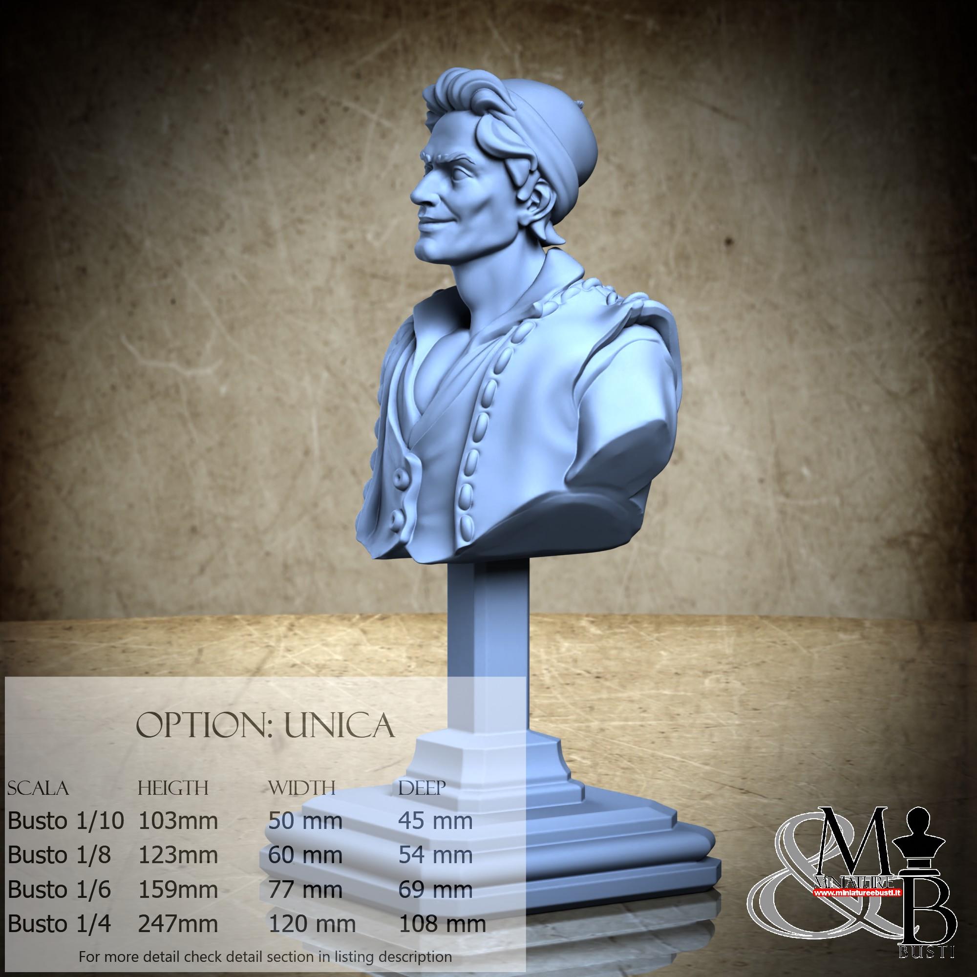 Bust Scale 1/10, cost €. 35.00 (Height: 103 mm, Width: 50 mm, Depth: 45 mm), composed of the following components:
