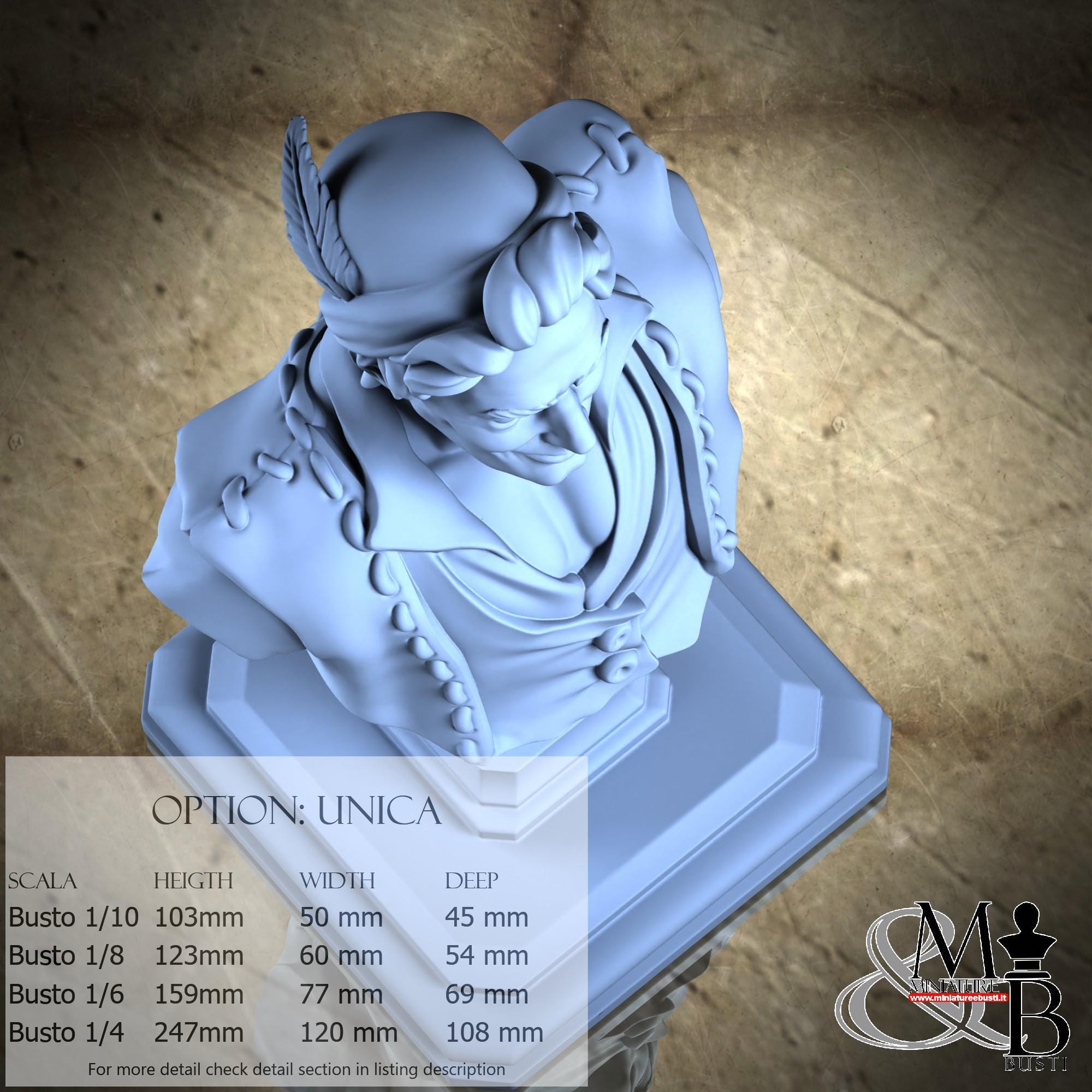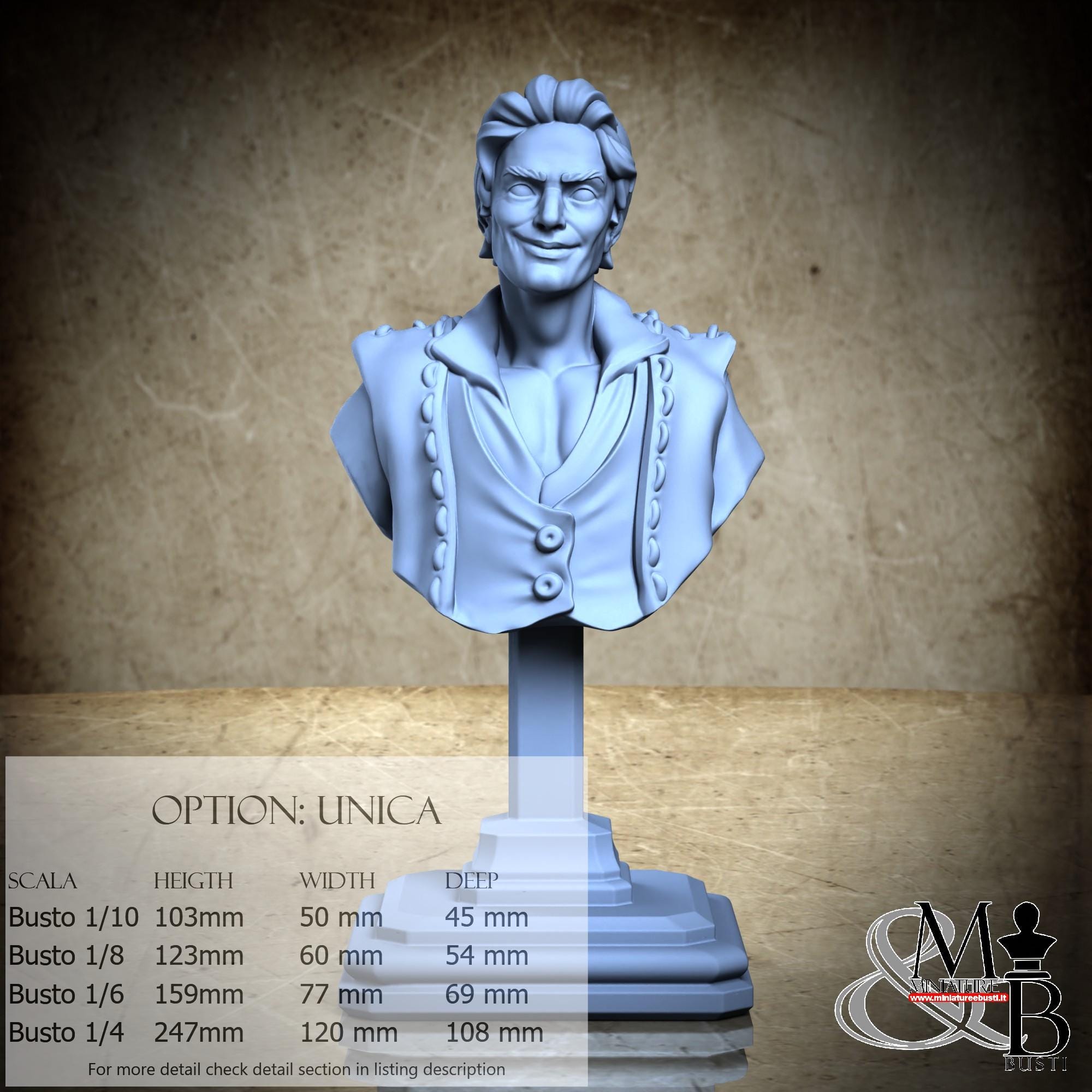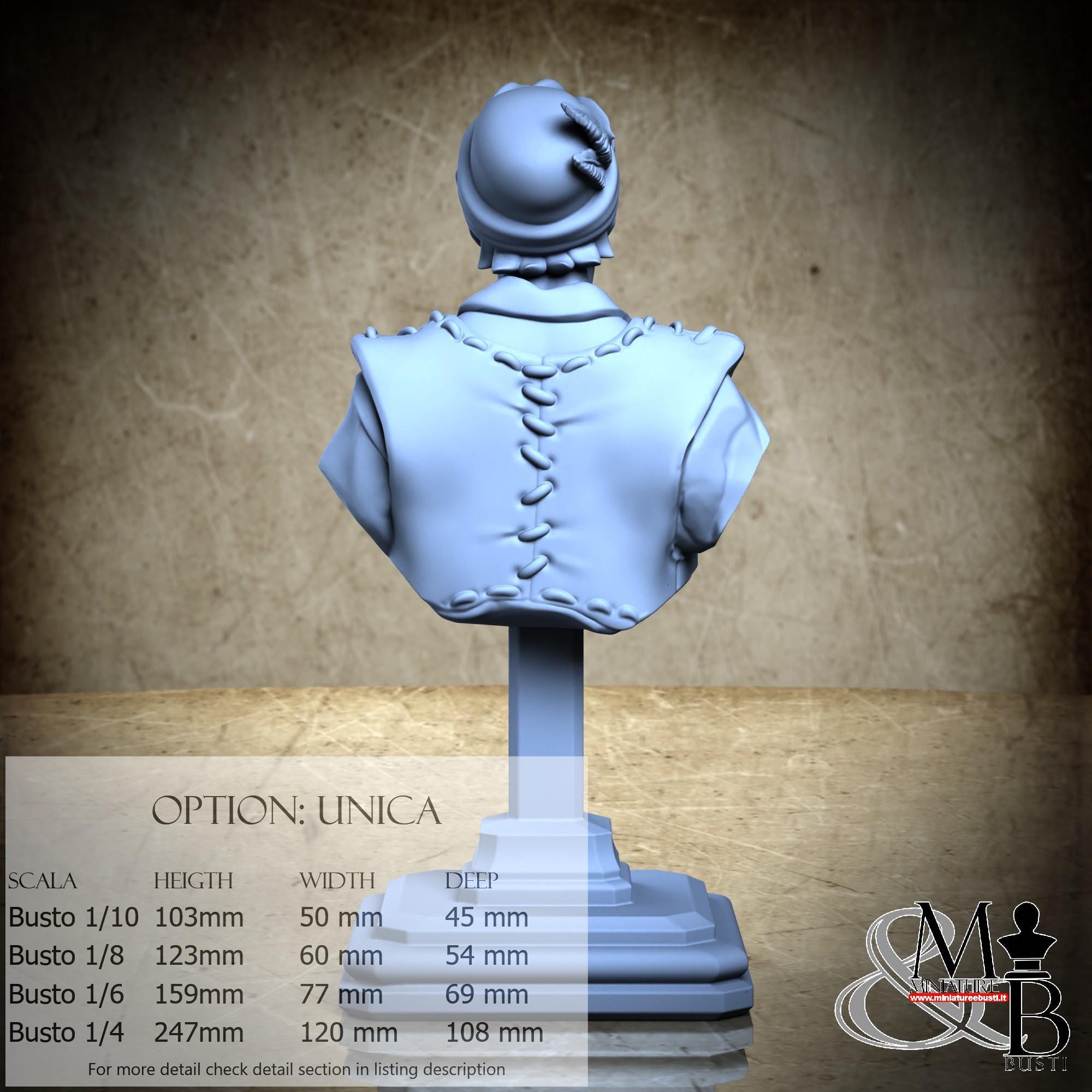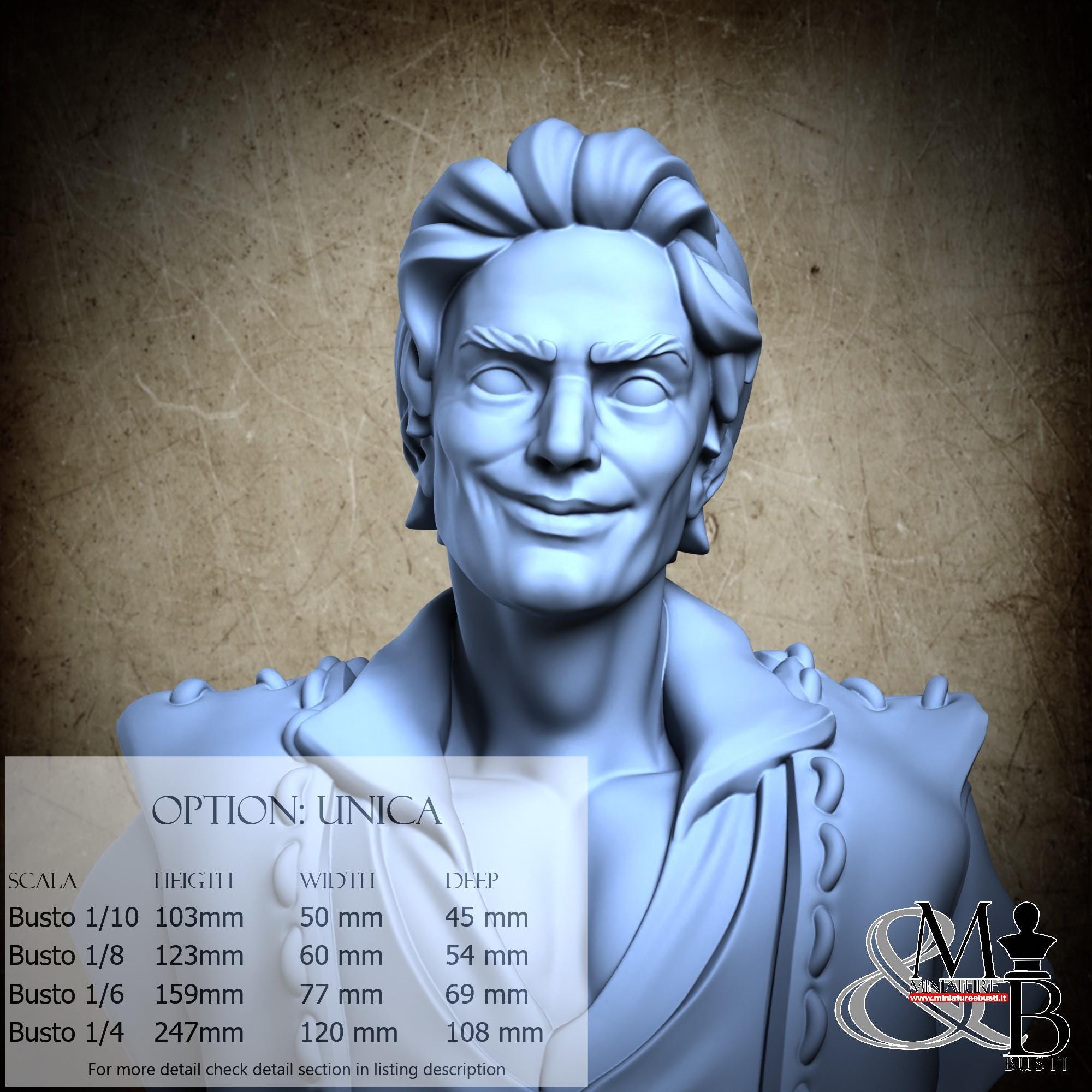 Bust Scale 1/10, cost €. 35.00 (Height: 103 mm, Width: 50 mm, Depth: 45 mm), composed of the following components: