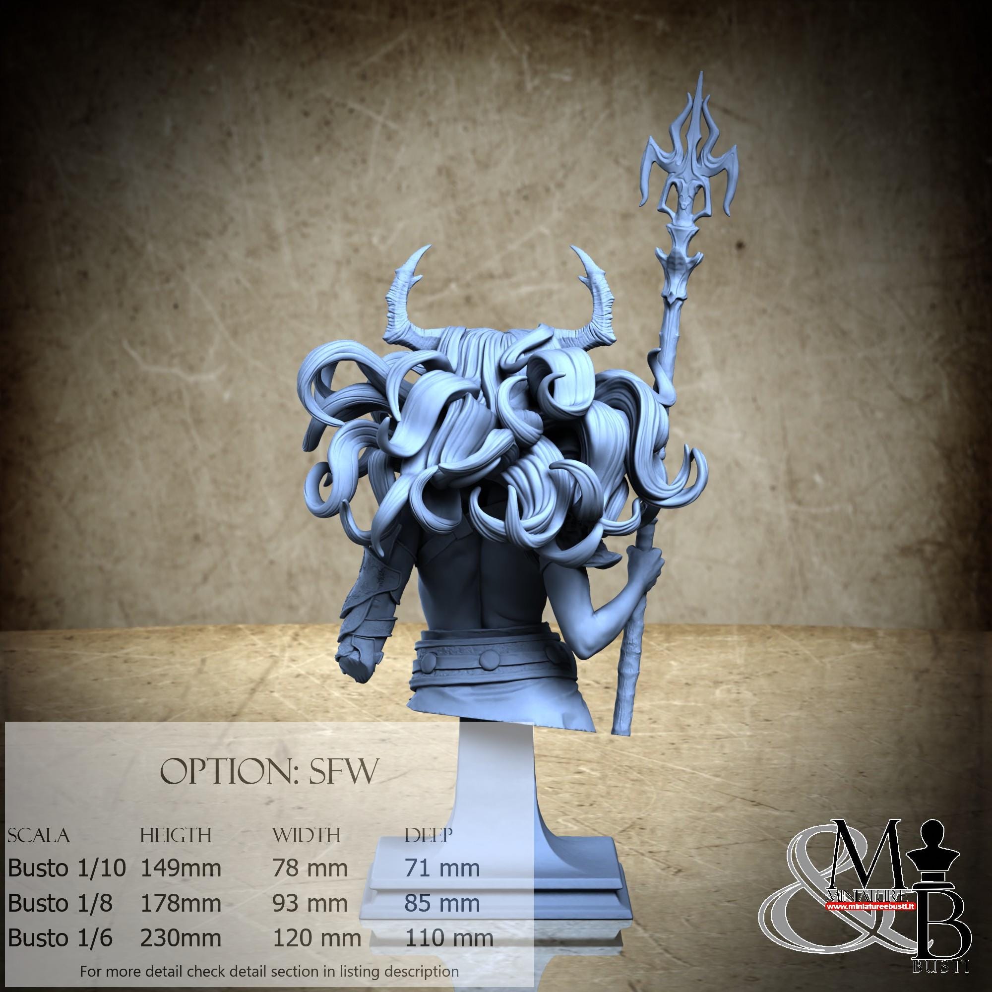 Bust Scale 1/10, cost €. 35.00 (Height: 149 mm, Width: 78 mm, Depth: 71 mm), composed of the following components: