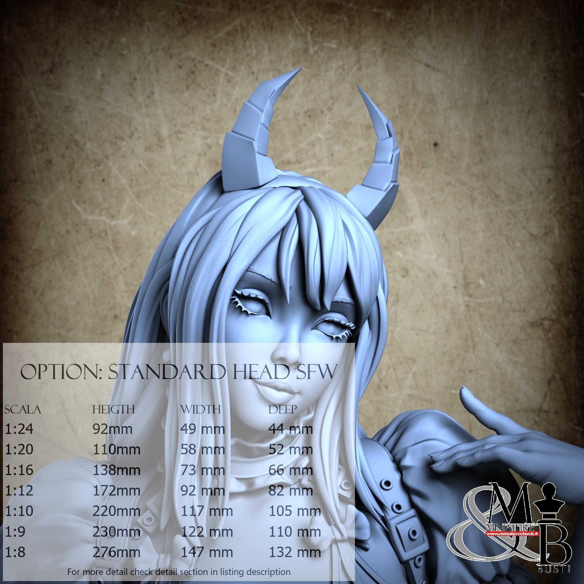 Variante Standard Head SFW, disponibile nelle seguenti scale e costi: