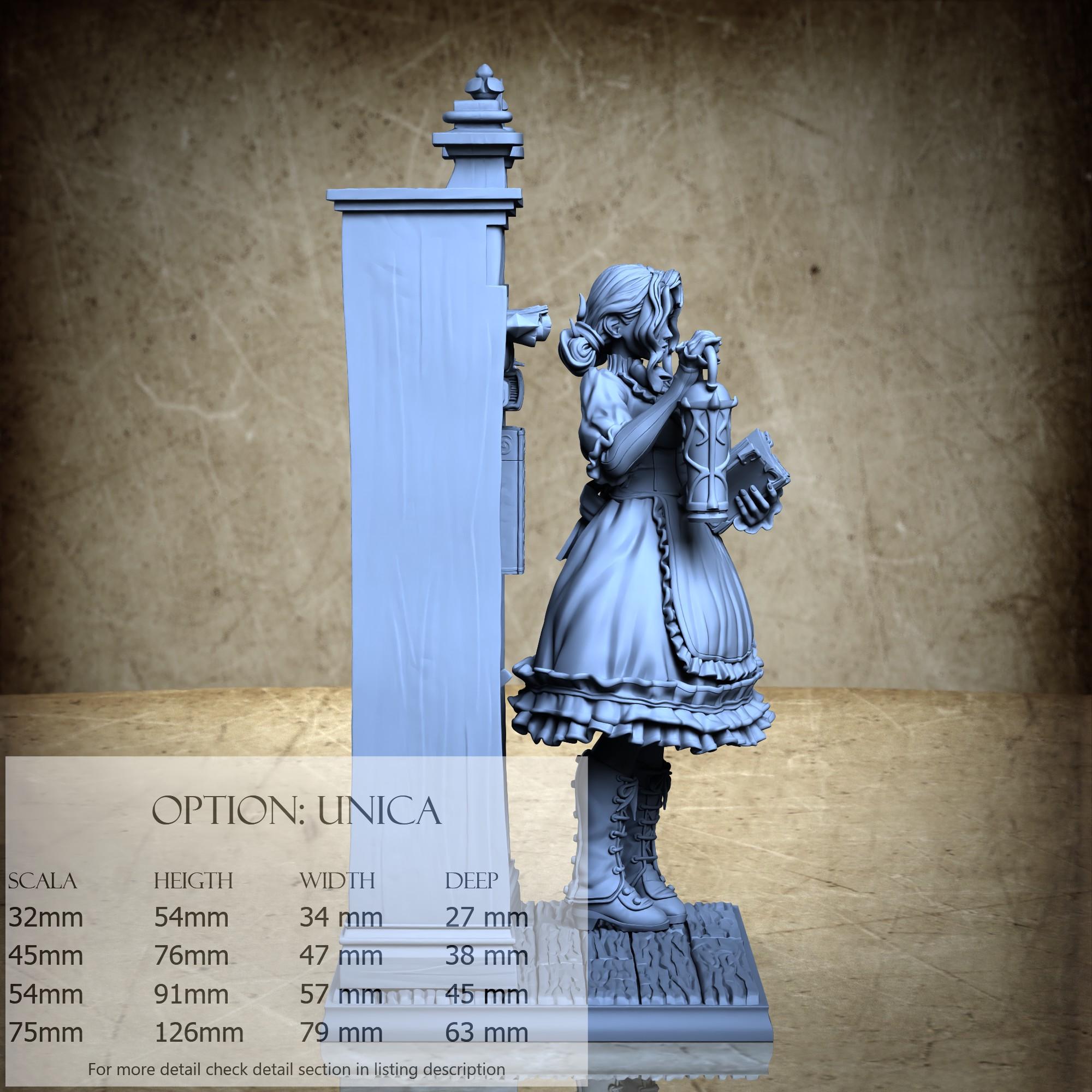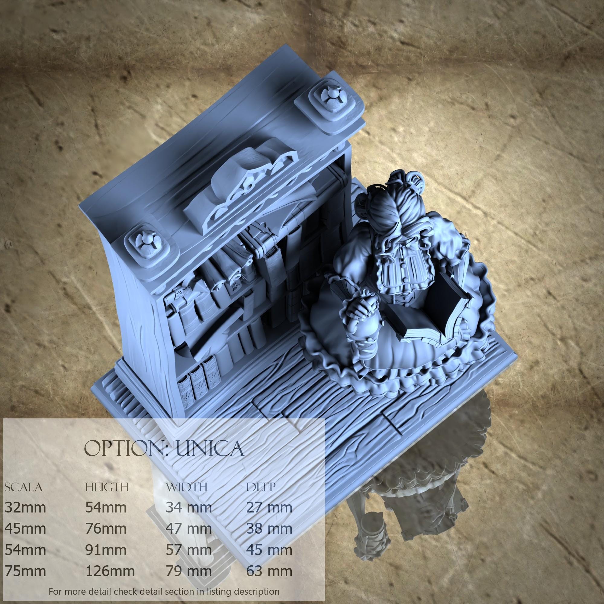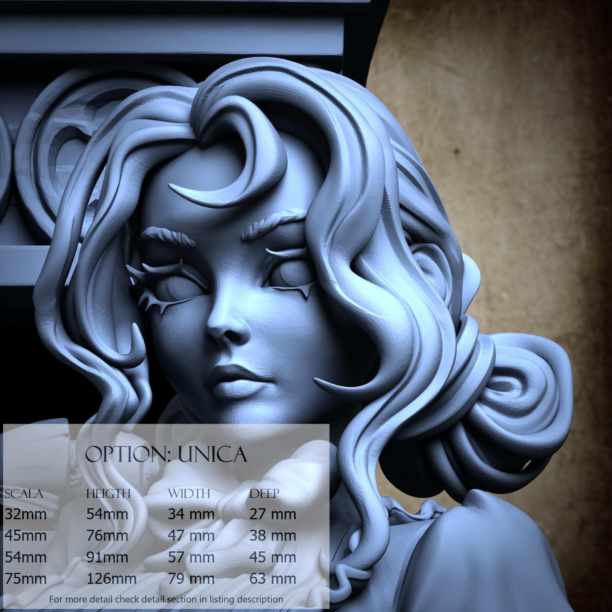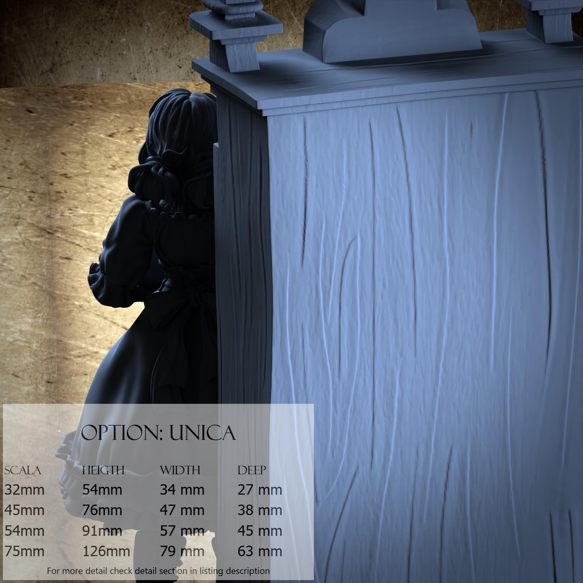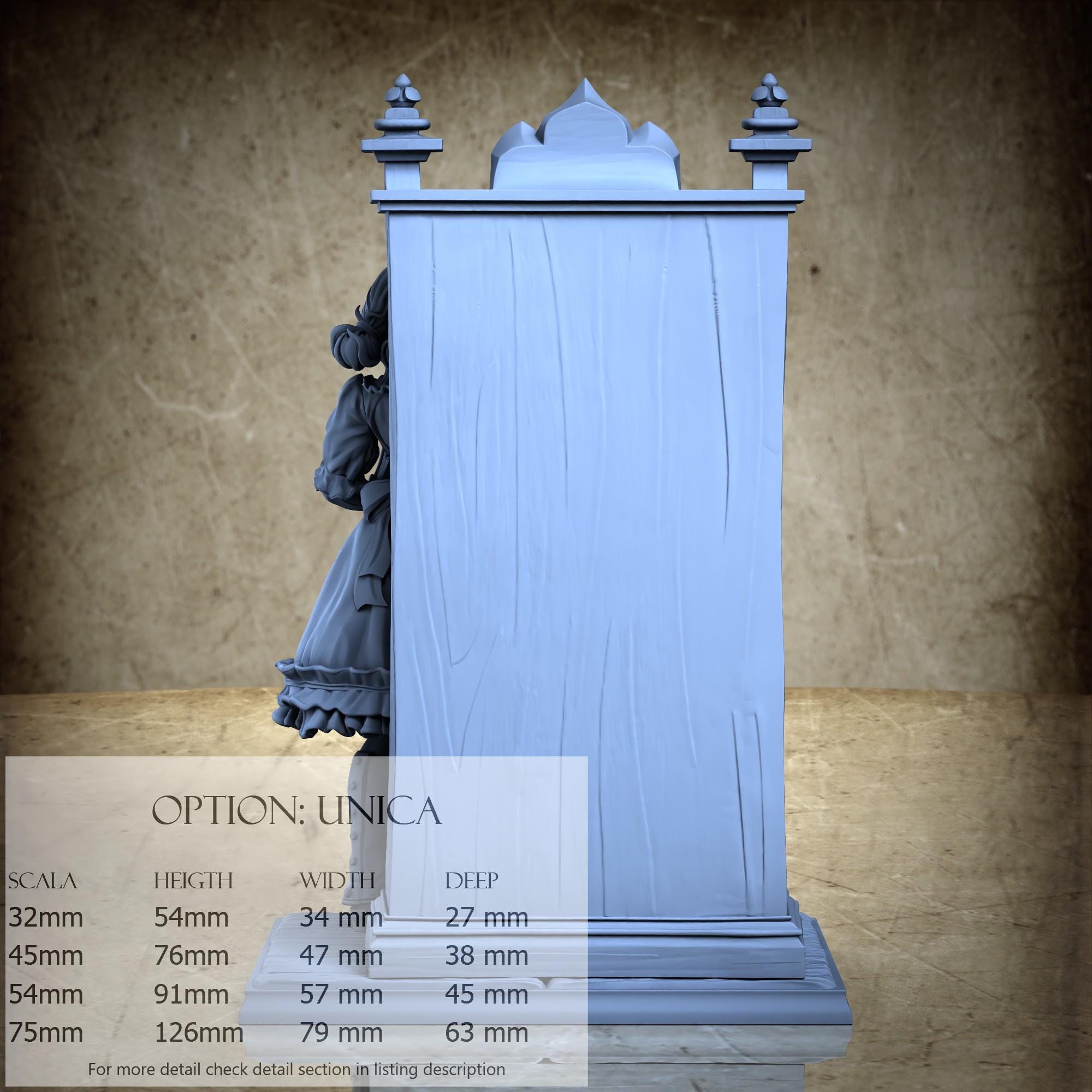 - Figure (1 piece) in Resin: Height: 40 mm, Width: 19 mm, Depth: 17 mm