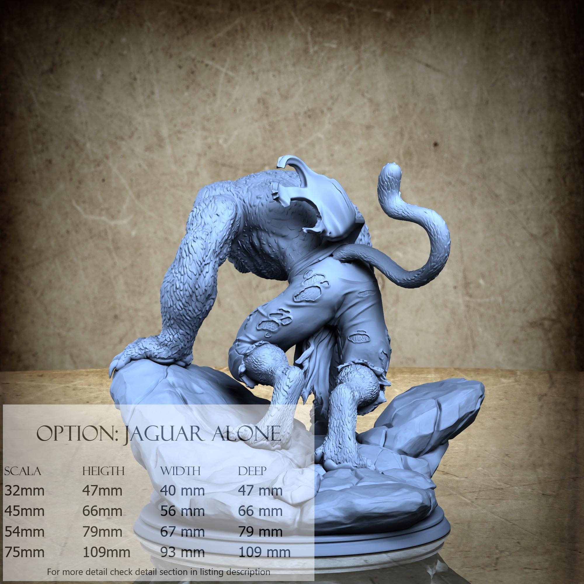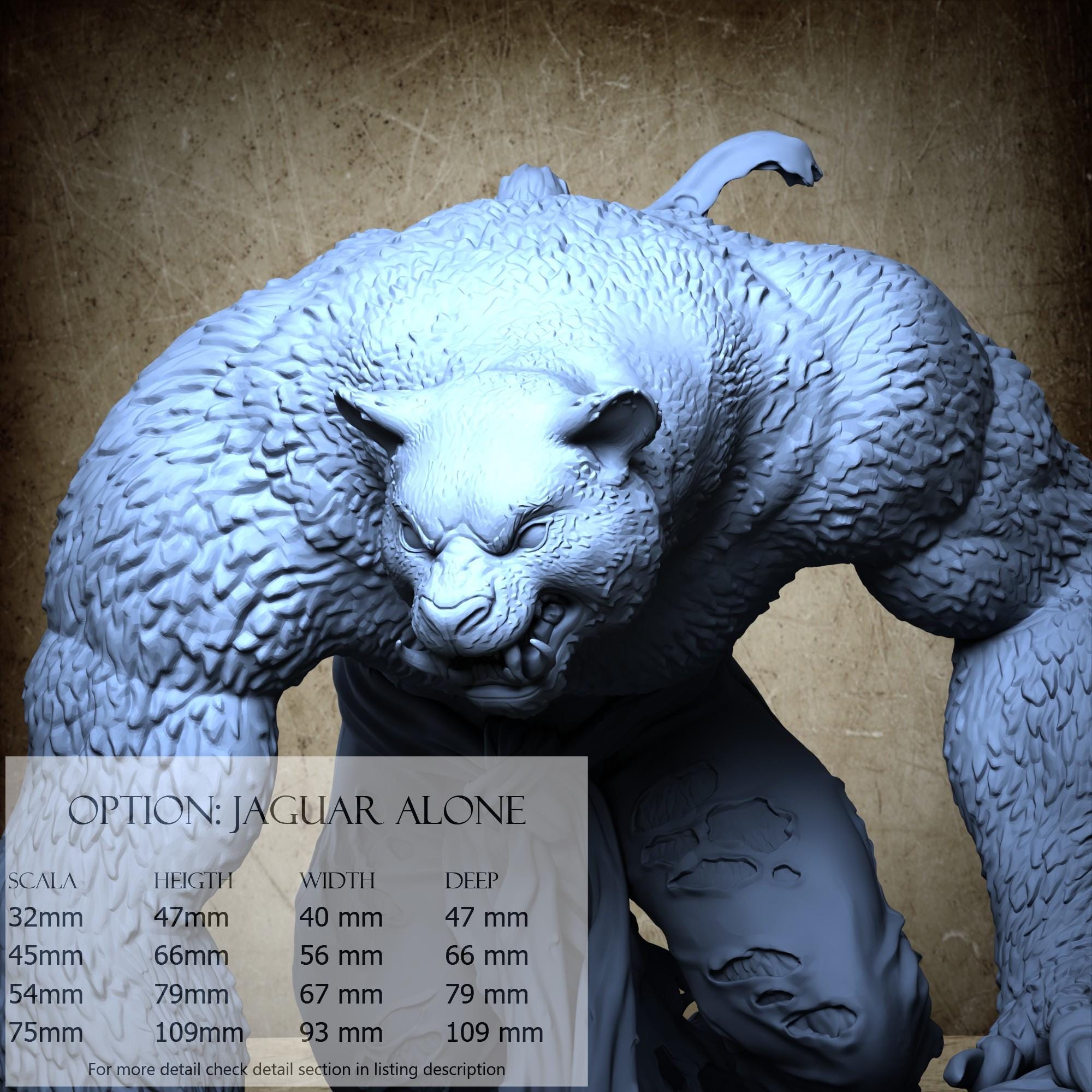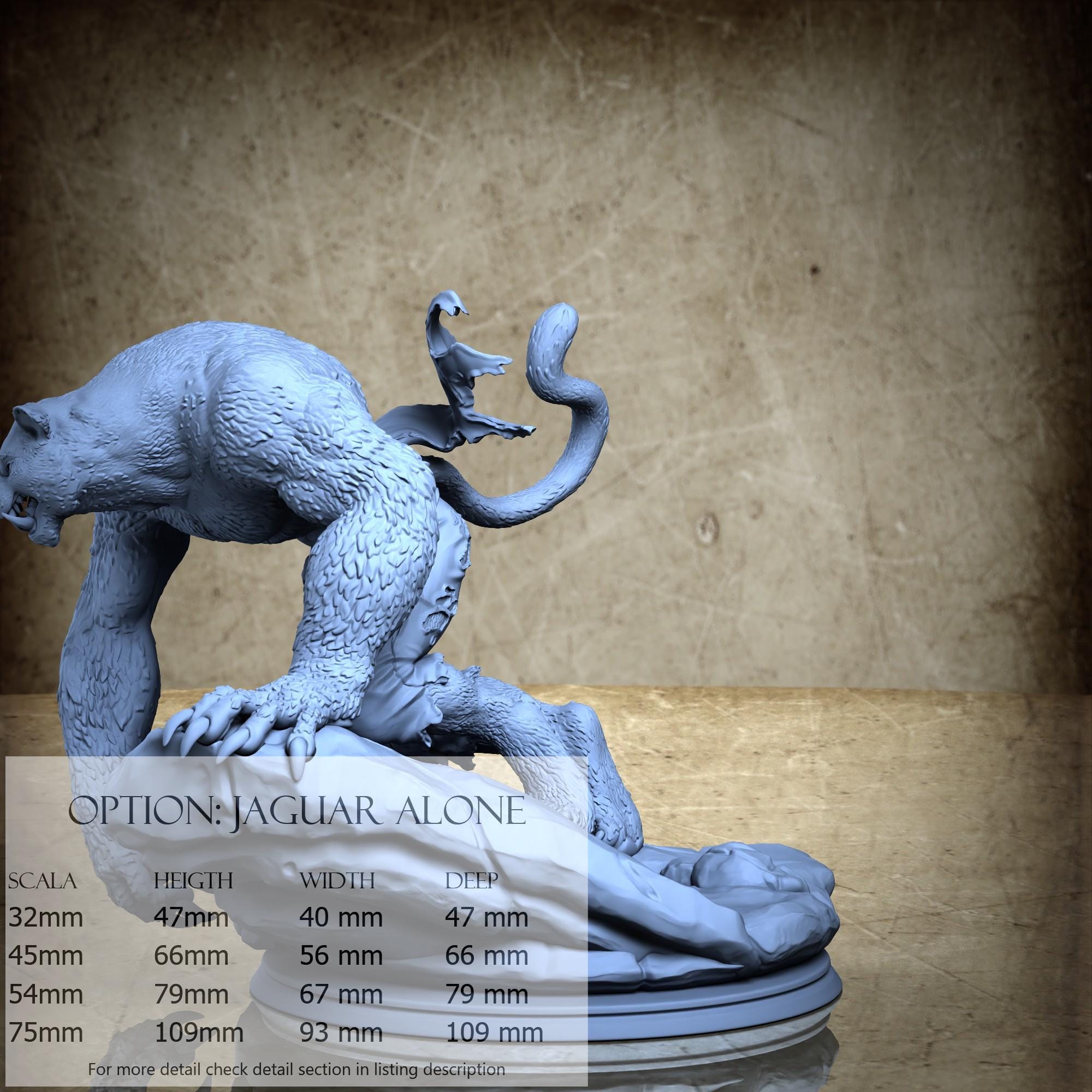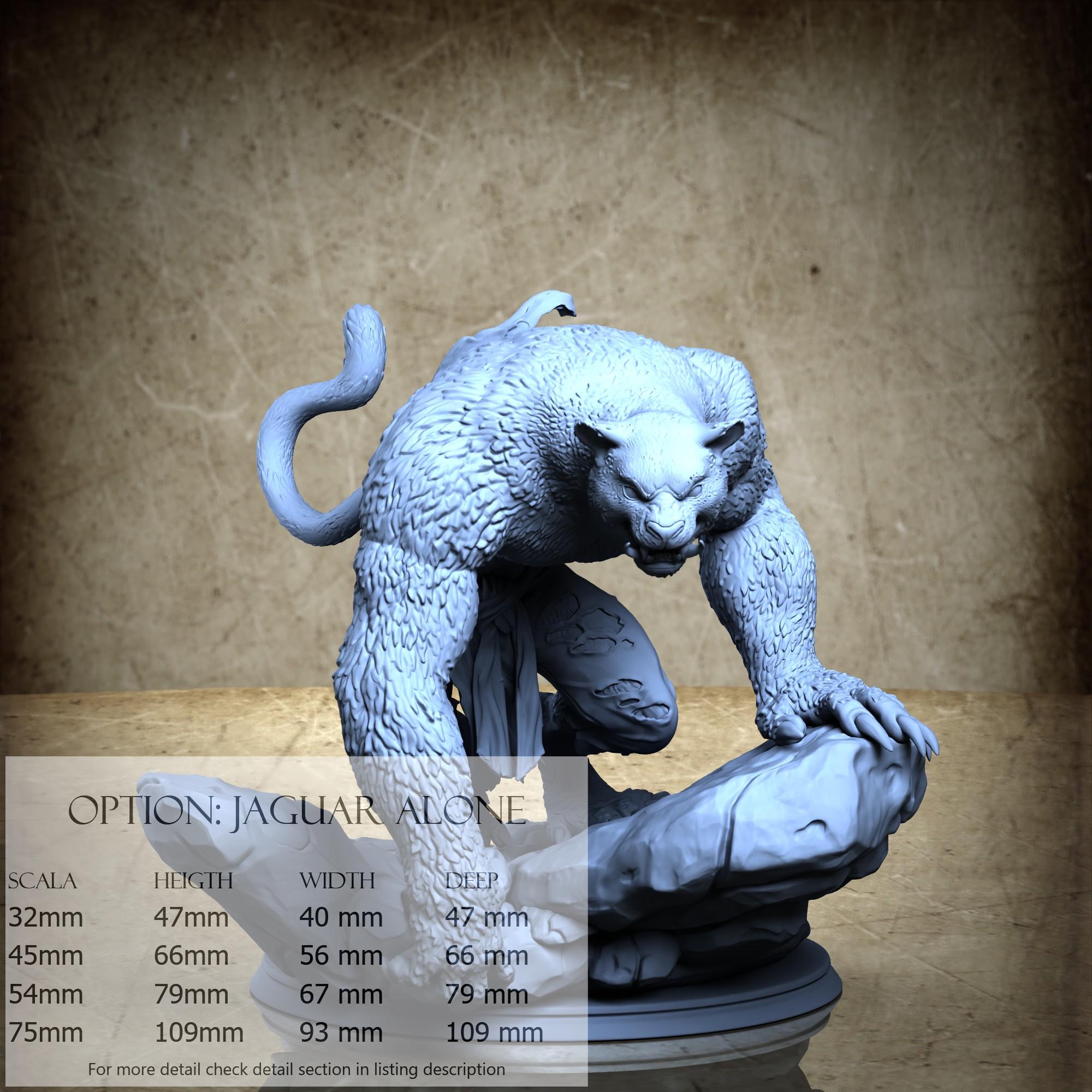 - Jaguar (2 pezzi) in Resina : Altezza: 35 mm, Larghezza: 36 mm, Profondità: 34 mm