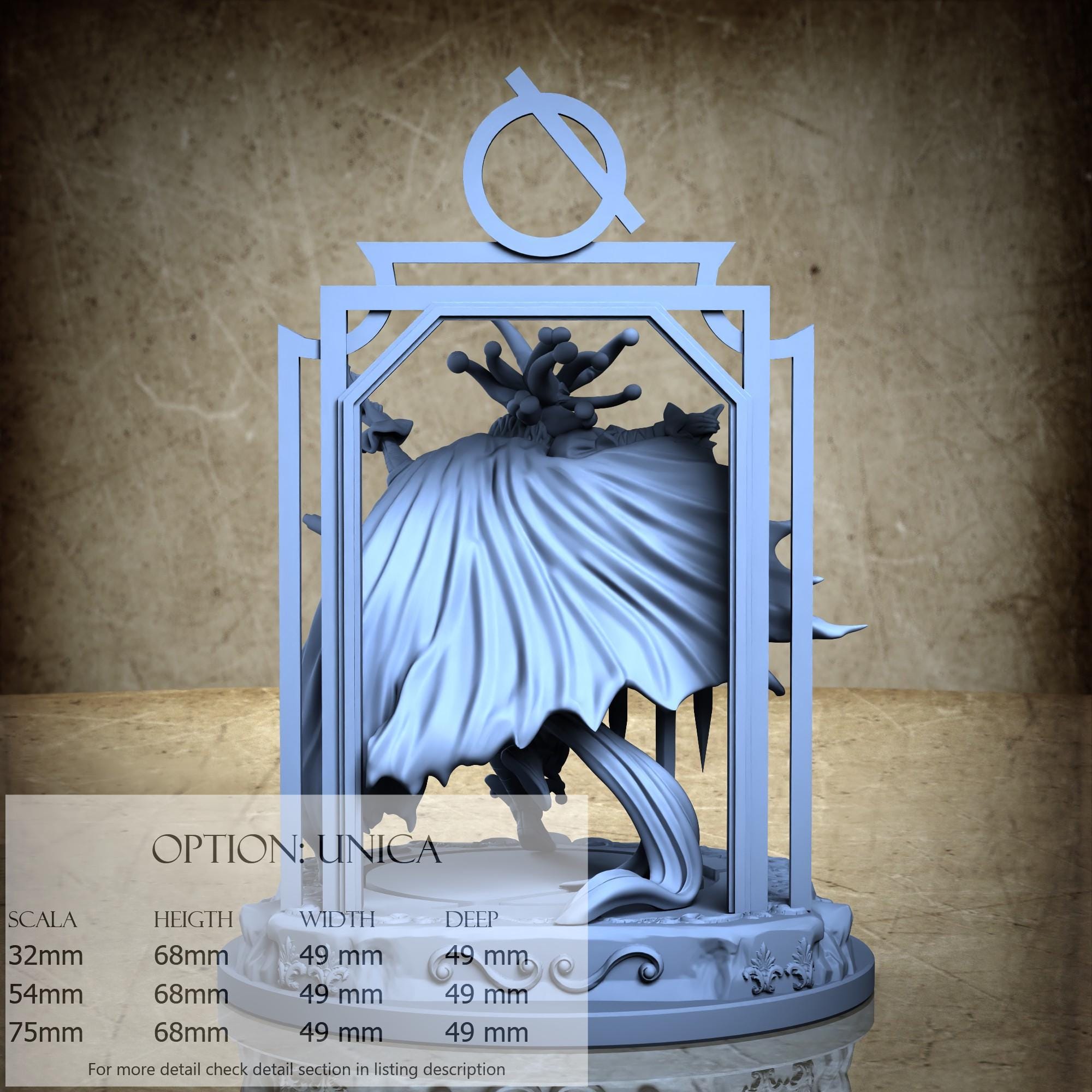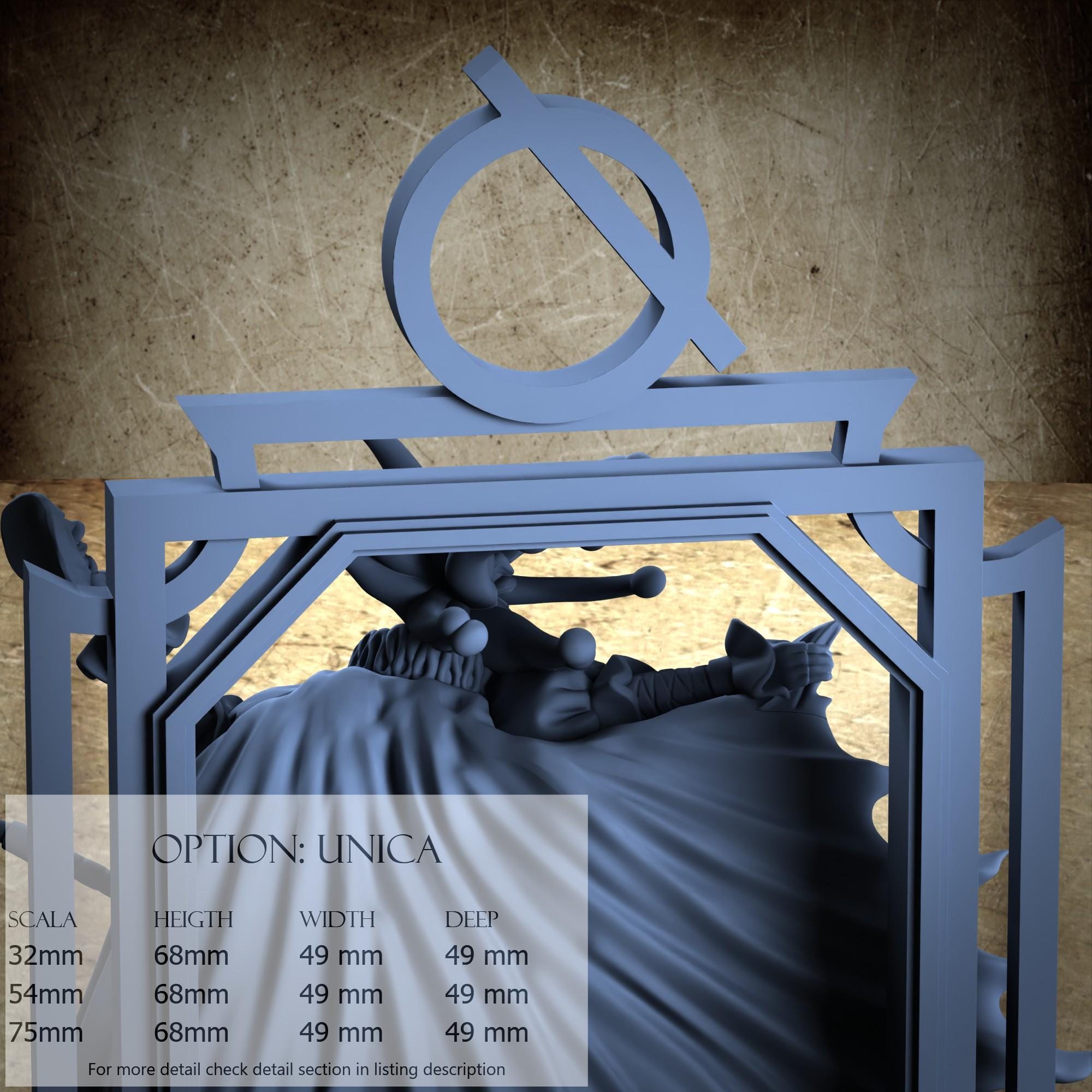 - Base and Door (3 pieces) in Resin: Height: 68 mm, Width: 49 mm, Depth: 49 mm