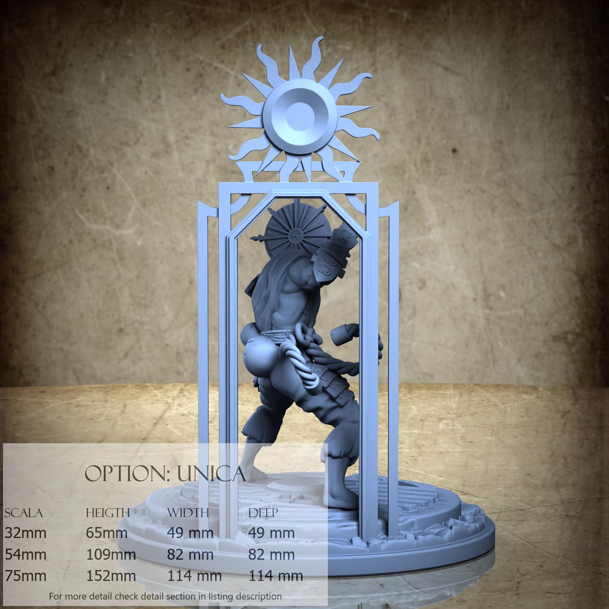 - Sun (1 piece) in Resin: Height: 93 mm, Width: 44 mm, Depth: 70 mm