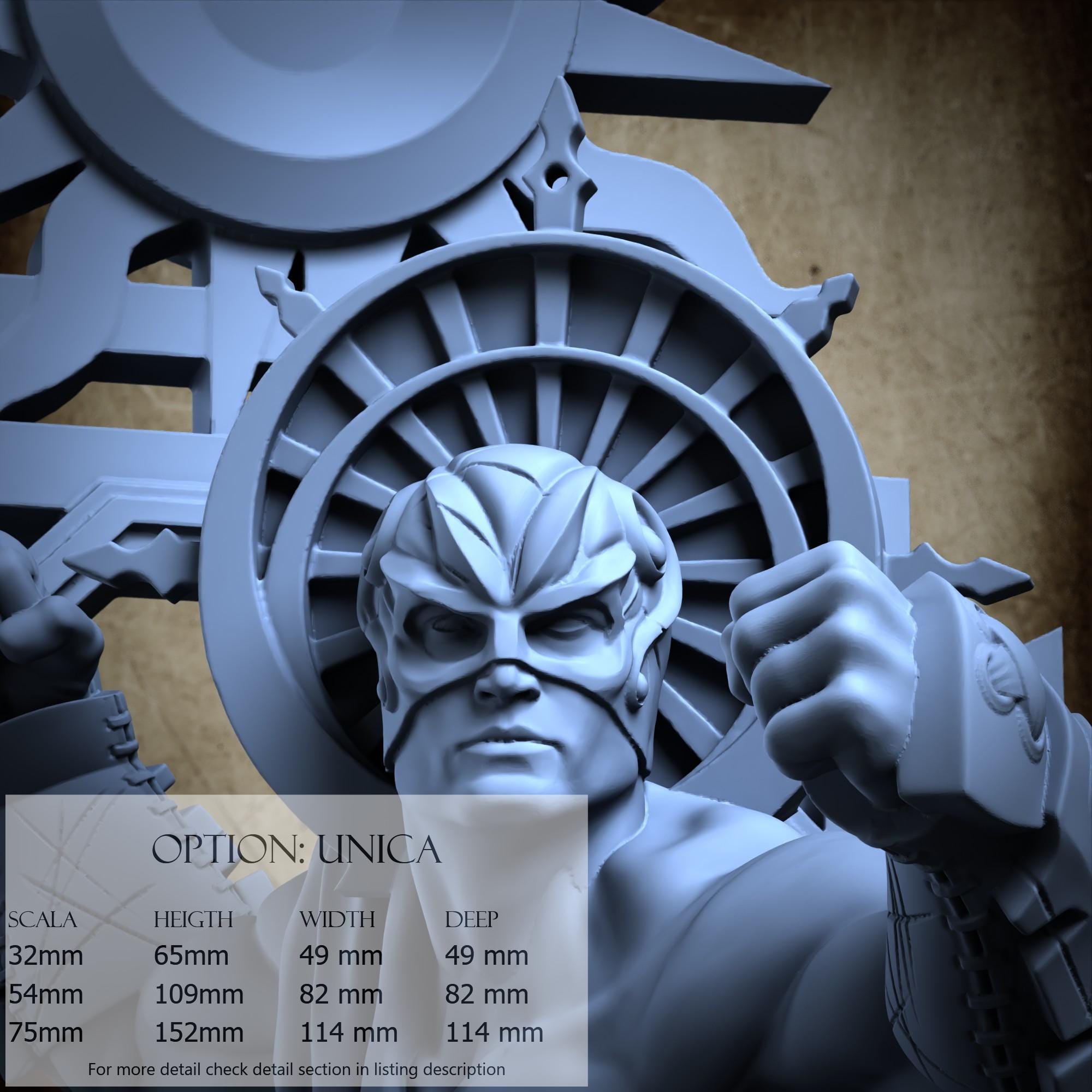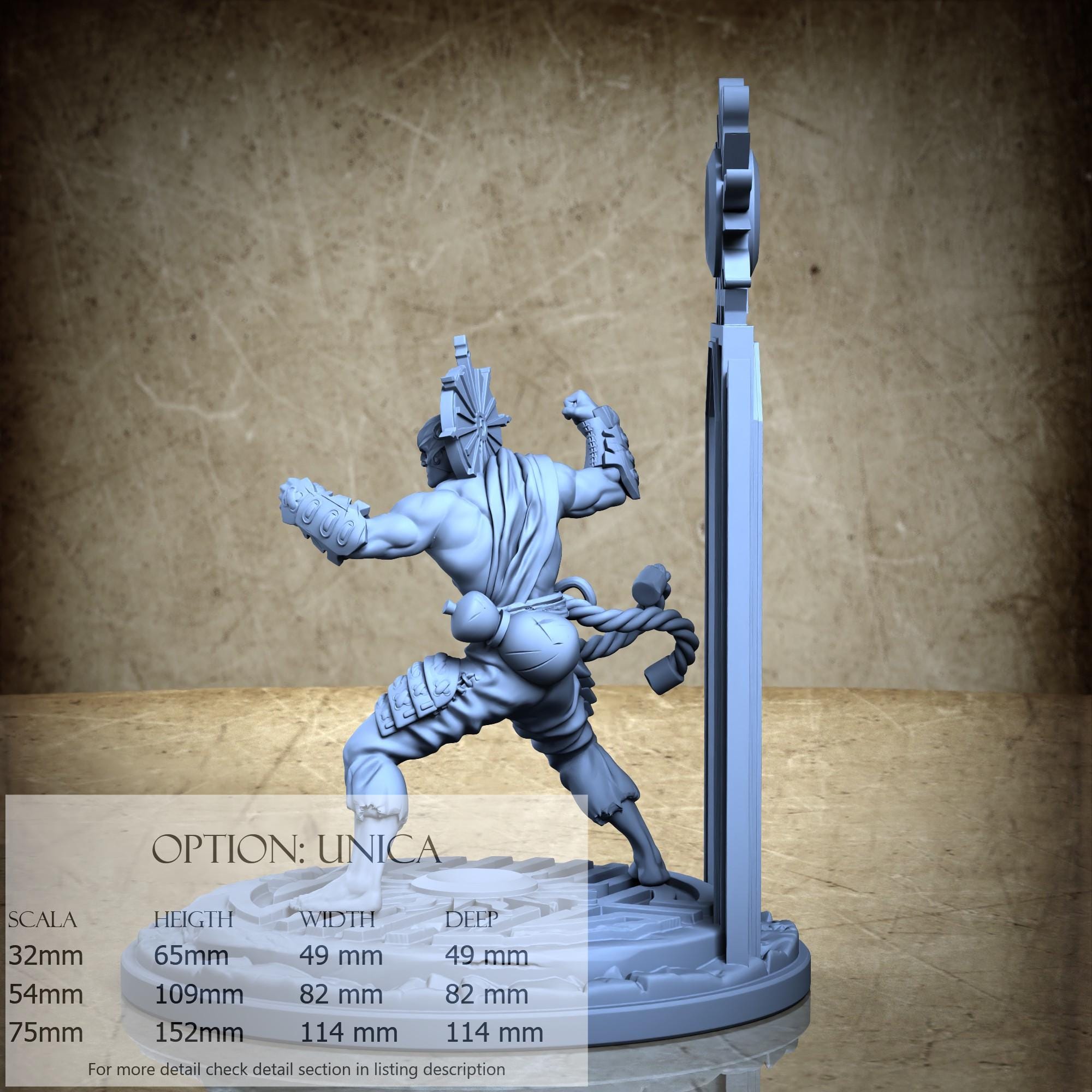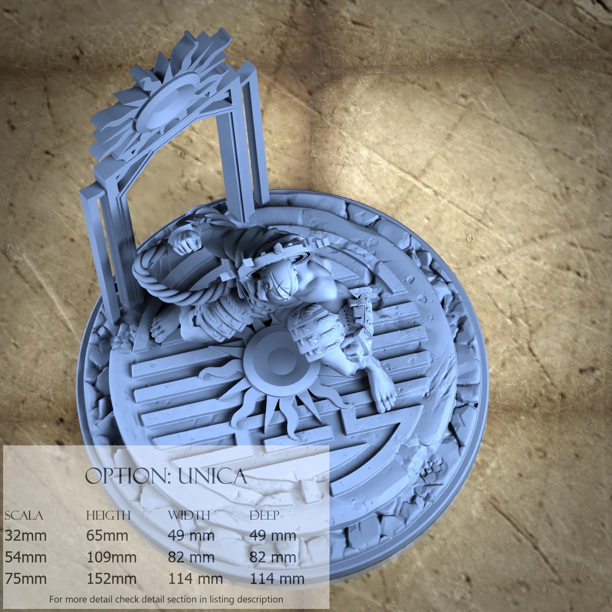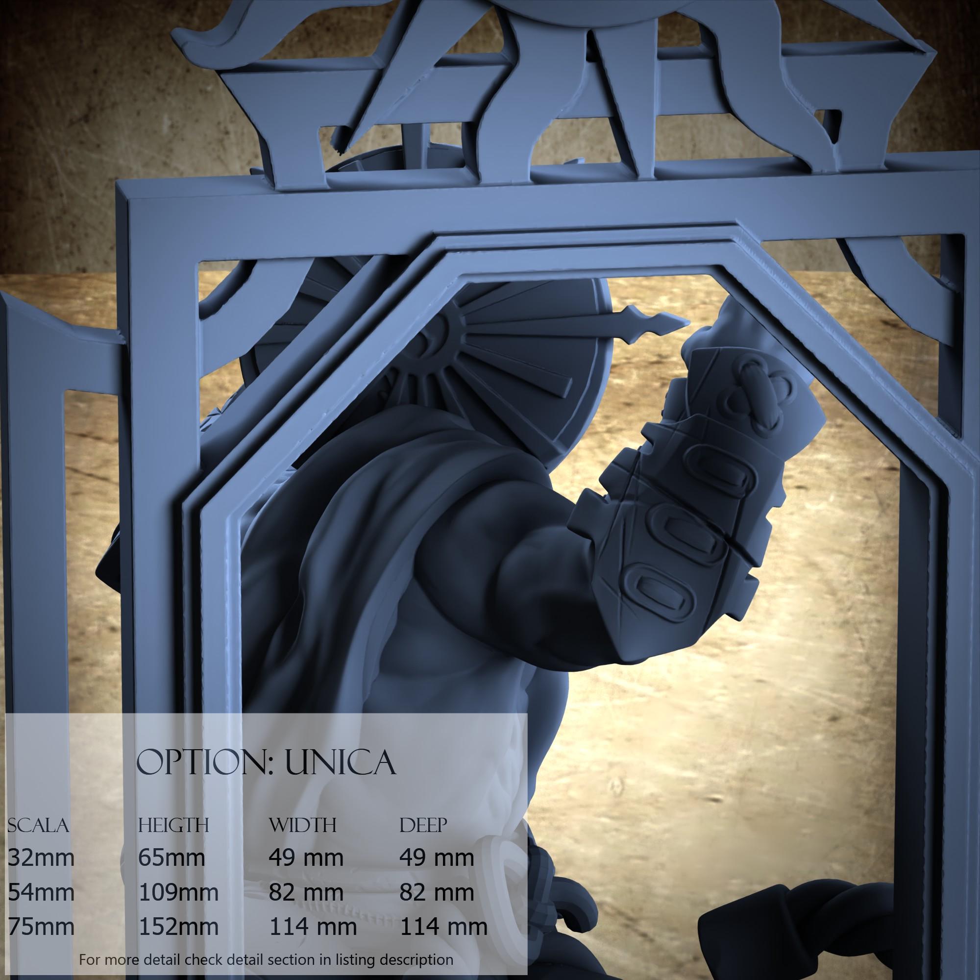 - Base (1 piece) in Resin: Height: 109 mm, Width: 82 mm, Depth: 82 mm